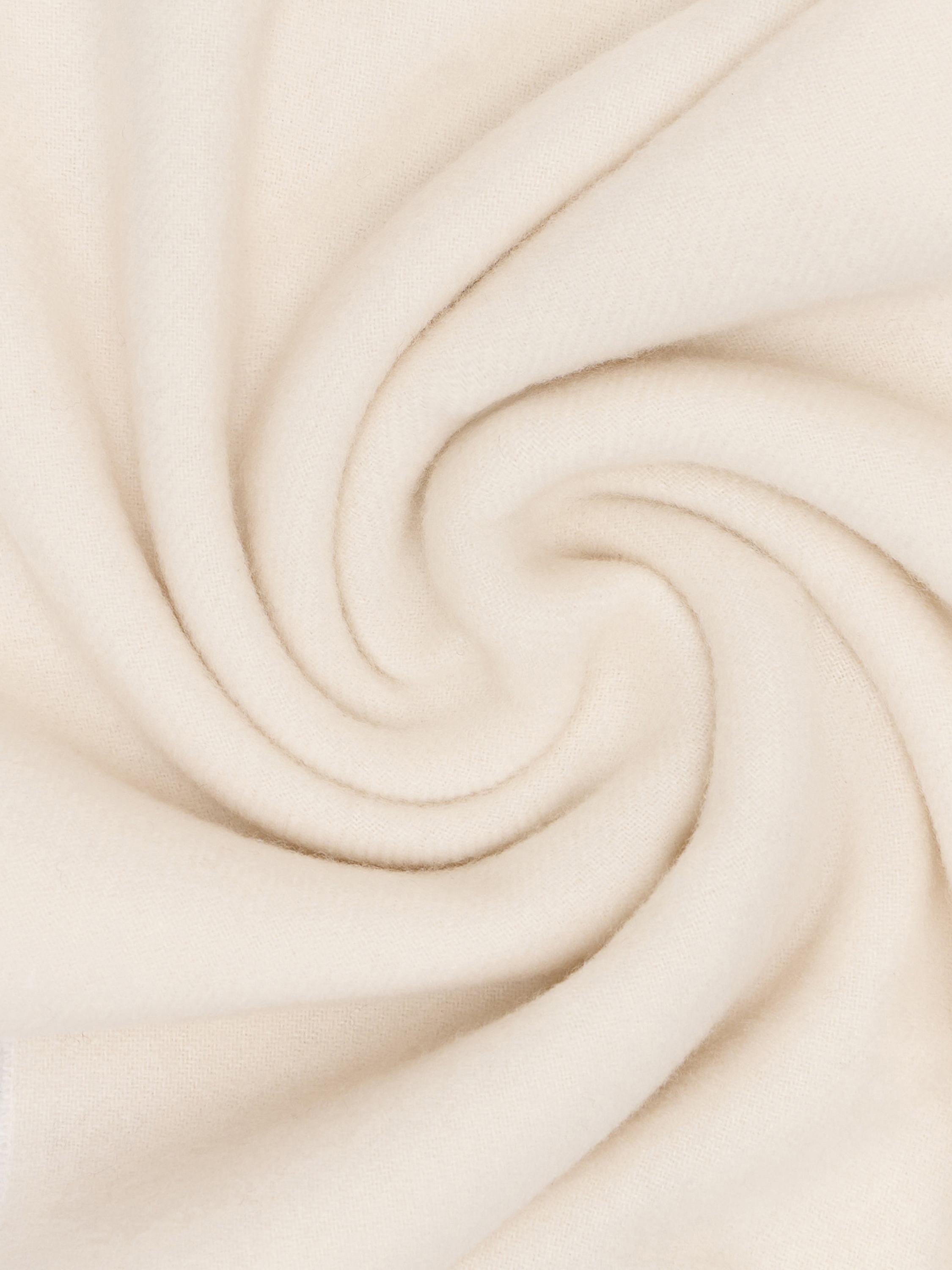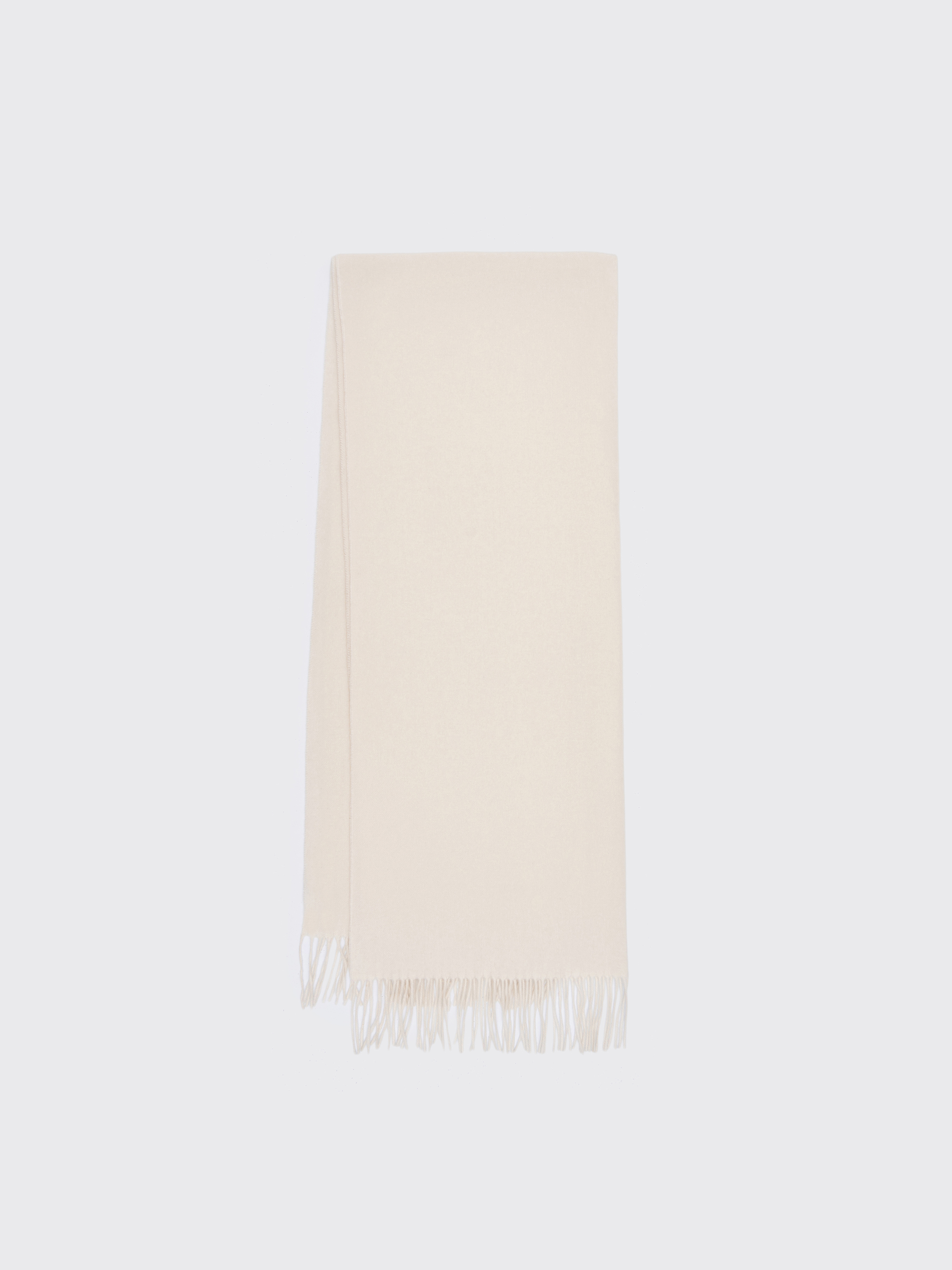 Шарф из 100% кашемира в оттенке слоновой кости. Полотно мягкое, теплое и тактильно комфортное, при этом легкое и пластичное. Лаконичный дизайн с аккуратной бахромой делает модель универсальной: ее можно носить с пальто, куртками и трикотажем, создавая сдержанные сезонные образы. Светлый тон подчеркивает элегантность и легко освежает даже темную палитру, а натуральный состав обеспечивает долговечность и комфорт при ежедневной носке. Такой аксессуар становится базовым элементом гардероба, который всегда уместен и в городе, и в путешествиях.