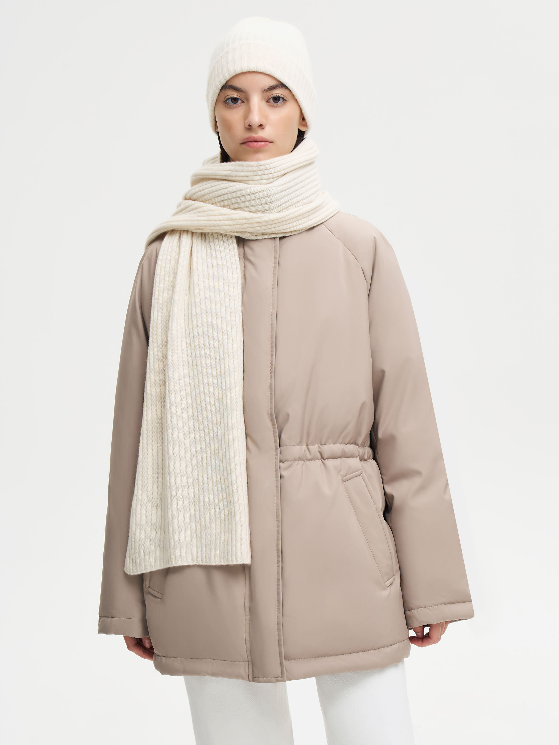 Шарф из кашемира с мягкой и пластичной вязкой. Материал отличается деликатным теплом, легкостью и тактильным комфортом, при этом хорошо сохраняет форму. Продолговатый крой позволяет варьировать способы ношения: обернуть вокруг шеи, завязать узлом или оставить свободно распущенным. Лаконичный дизайн делает шарф универсальным аксессуаром, который гармонично дополняет повседневные и более собранные образы с пальто, жакетами и трикотажем.