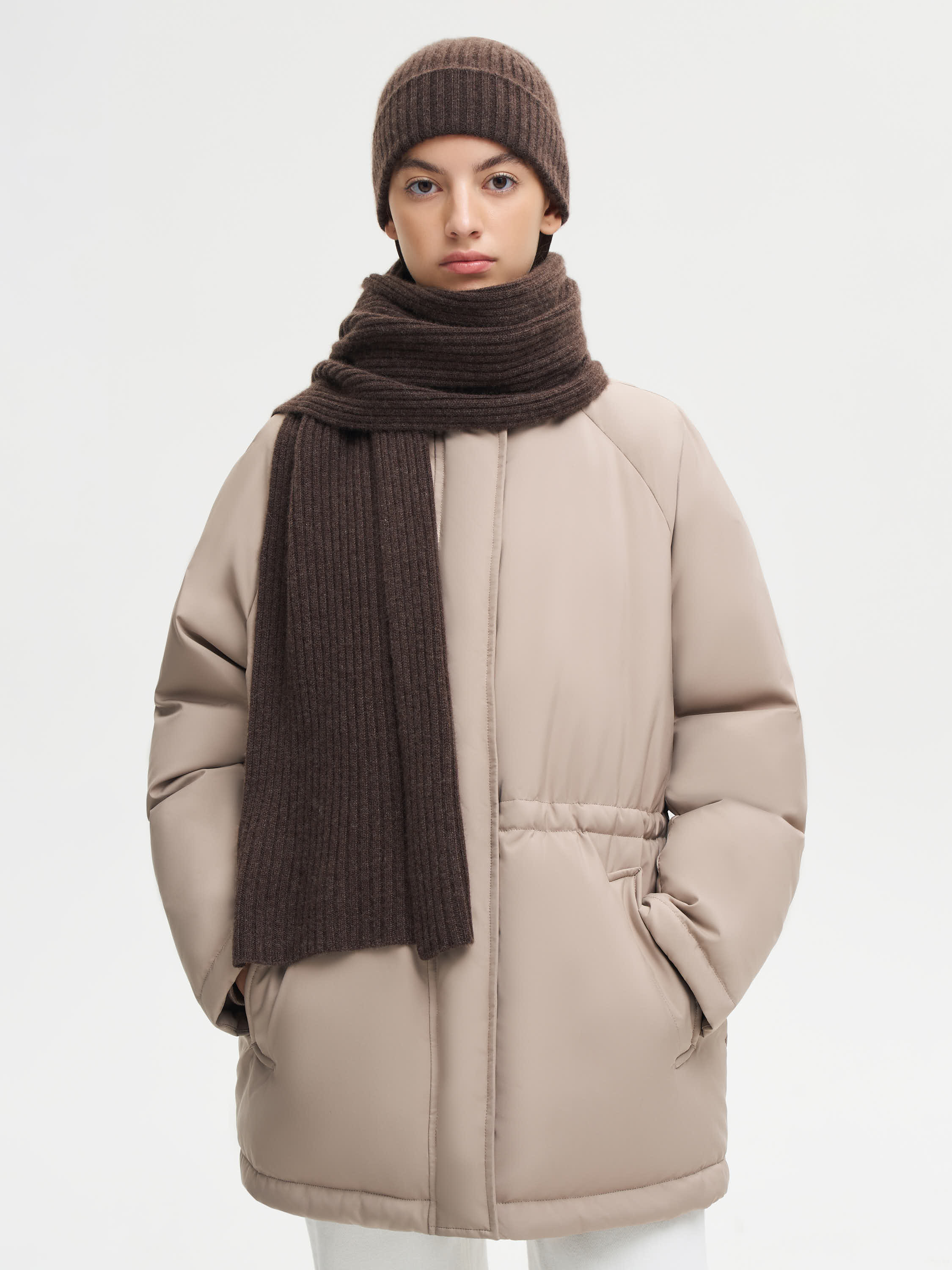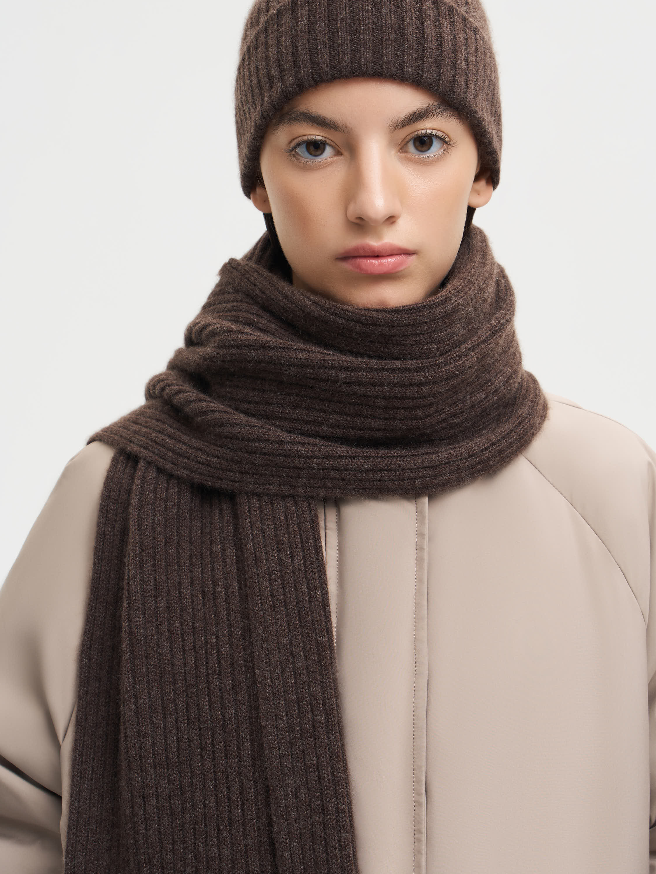 Шарф из кашемира с мягкой и пластичной вязкой. Материал отличается деликатным теплом, легкостью и тактильным комфортом, при этом хорошо сохраняет форму. Продолговатый крой позволяет варьировать способы ношения: обернуть вокруг шеи, завязать узлом или оставить свободно распущенным. Лаконичный дизайн делает шарф универсальным аксессуаром, который гармонично дополняет повседневные и более собранные образы с пальто, жакетами и трикотажем.