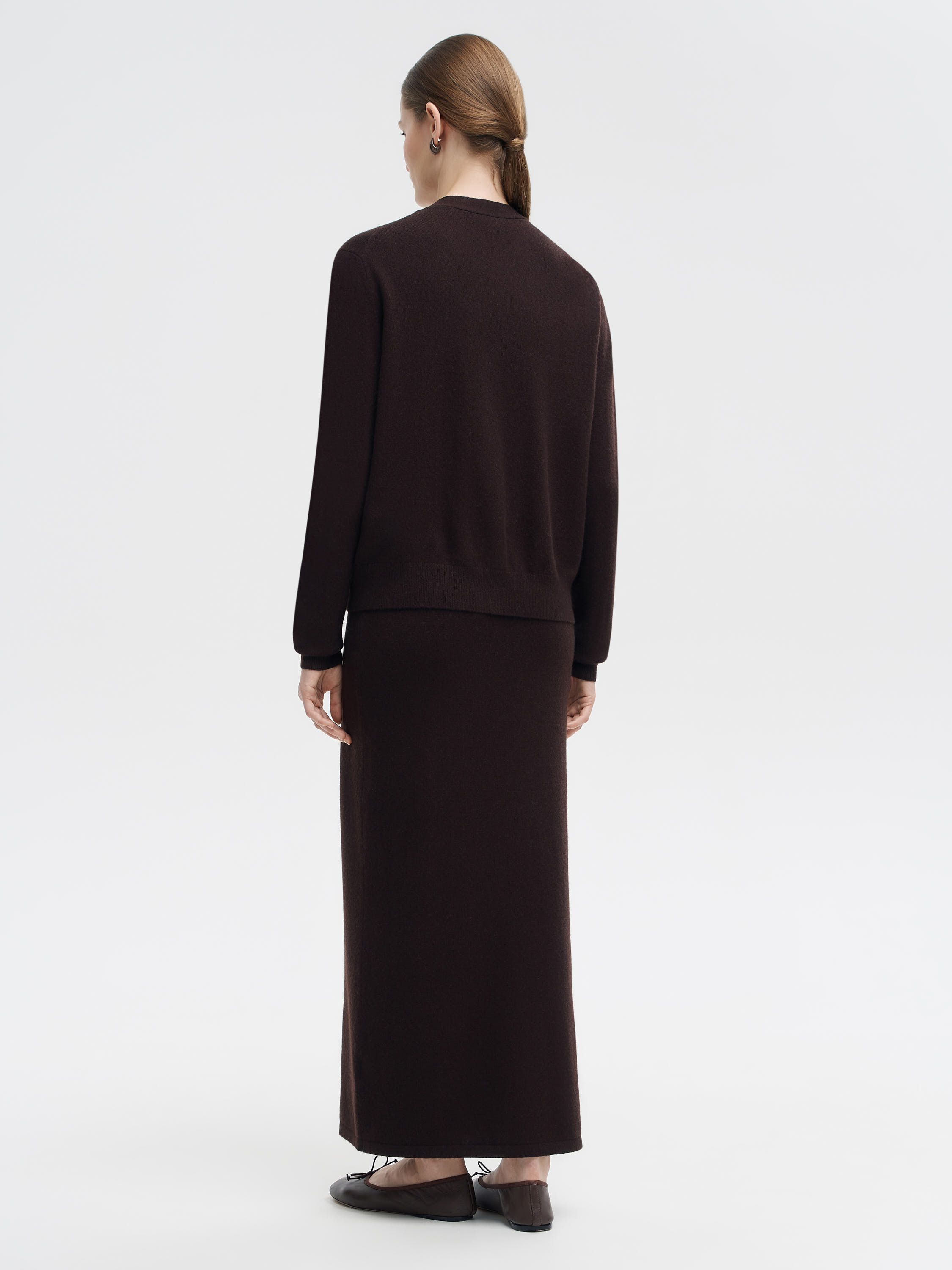 Кардиган из мягкой пряжи на основе шерсти мериноса с добавлением кашемира. Материал тонкий, эластичный, с приятной тактильностью и естественным теплом, что делает изделие комфортным в носке в прохладный сезон. Крой прямой, с V-образным вырезом и застежкой на ряд пуговиц. Длинные рукава дополнены плотными манжетами, низ — с эластичной резинкой, формирующей аккуратный силуэт. Универсальная модель, которую можно носить как самостоятельный элемент с юбками или брюками, так и в многослойных комплектах — поверх топов, рубашек или платьев.