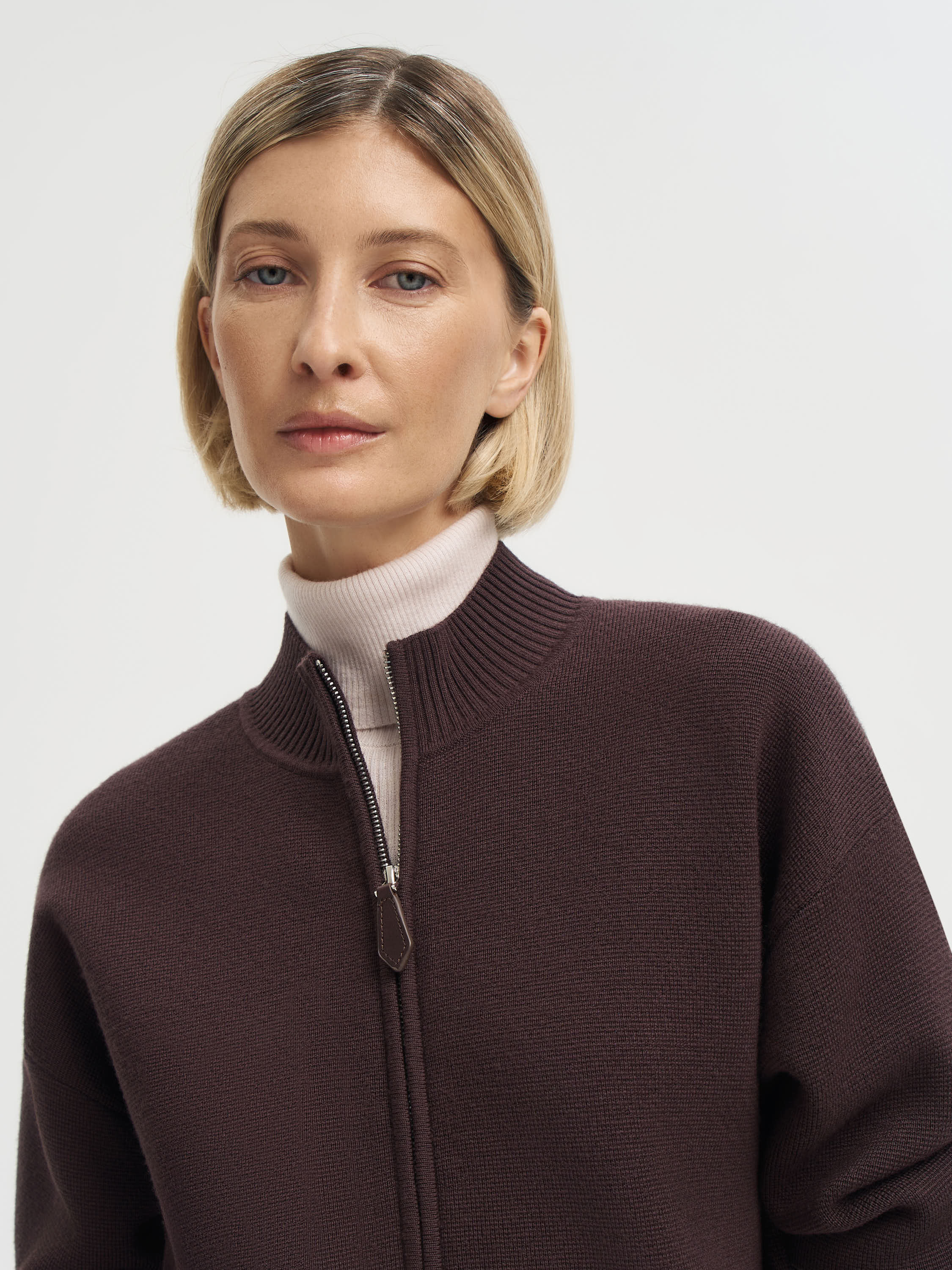 Кардиган из 100% шерсти мериноса — базовая вещь с акцентом на фактуру и детали. Плотное трикотажное полотно хорошо держит форму, оставаясь мягким и эластичным. Молния по центру делает модель функциональной, а двусторонний замок позволяет регулировать посадку и создавать разные пропорции в образе. Укороченный силуэт и широкая резинка по низу подчеркивают современный характер вещи, которая одинаково уместна и в деловом, и в повседневном гардеробе. Такой кардиган можно носить поверх рубашки, тонкой водолазки или платья, добавляя образу тепла и текстуры.