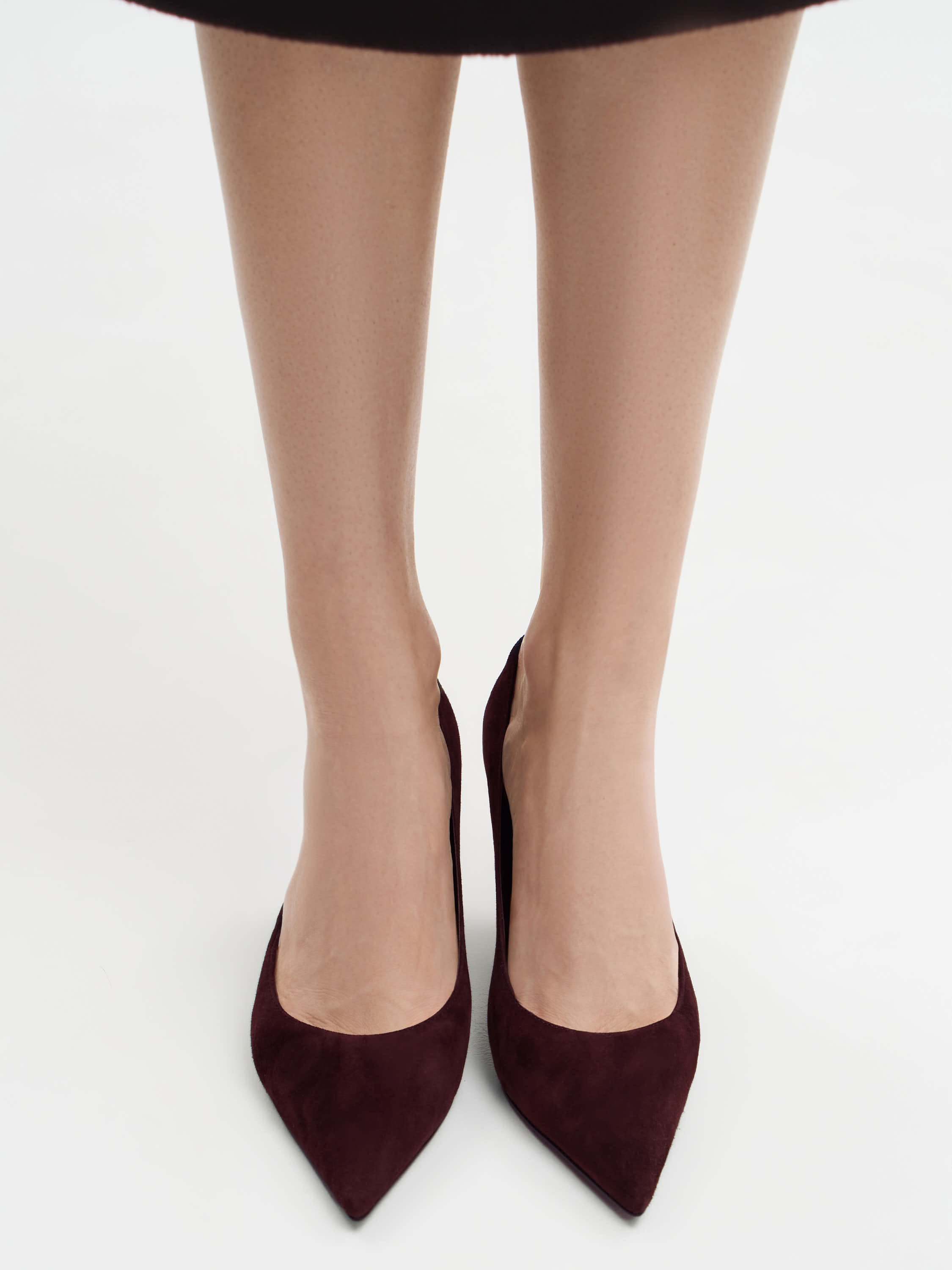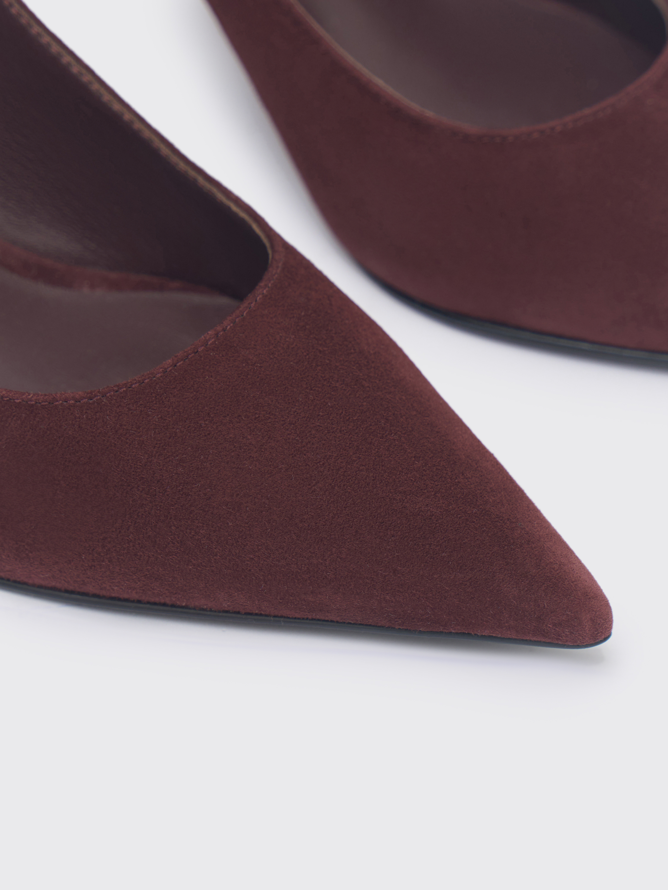 Лодочки из замши переосмысляют классику, сохраняя её универсальность и добавляя мягкость за счет благородной фактуры. Сдержанный силуэт с заостренным мысом и тонким каблуком делает модель актуальной вне времени. В благородном оттенке лодочки поддерживают естественную палитру сезона и гармонично сочетаются с трикотажем, шерстью и замшей. В благородном, насыщенном, они становятся выразительным акцентом и добавляют глубины образу — как в повседневных комплектах, так и в вечерних.