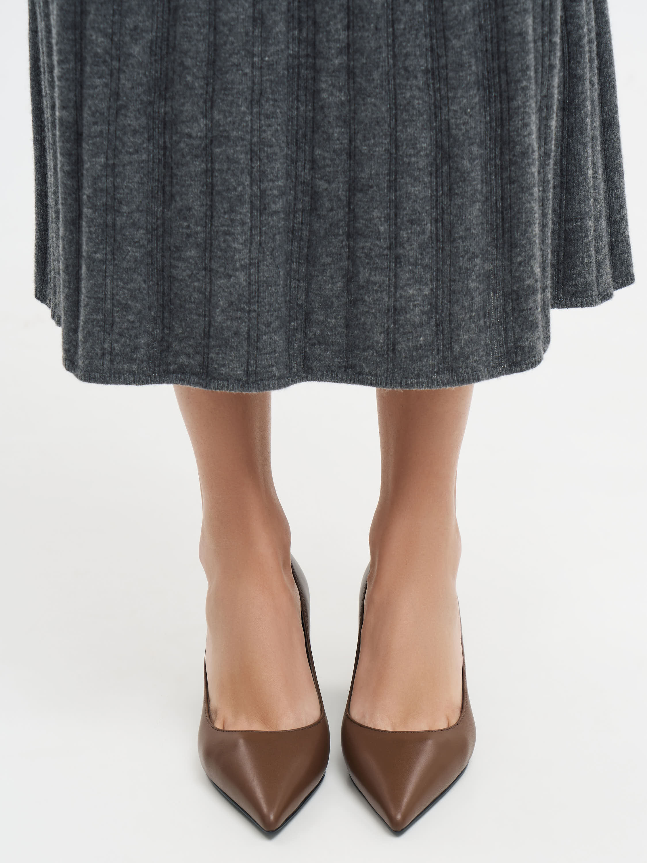 Лодочки из натуральной кожи — та самая классика, которая актуальна всегда. Чистая линия силуэта, лаконичный мыс и изящный каблук создают универсальную основу для любого образа — от делового костюма до вечернего платья. Натуральная кожа мягко подстраивается под ногу, сохраняя комфорт при носке, а сдержанный черный оттенок делает модель максимально гибкой для комбинаций. Эти туфли работают как тихий акцент, который собирает ансамбль, но не перетягивает внимание.