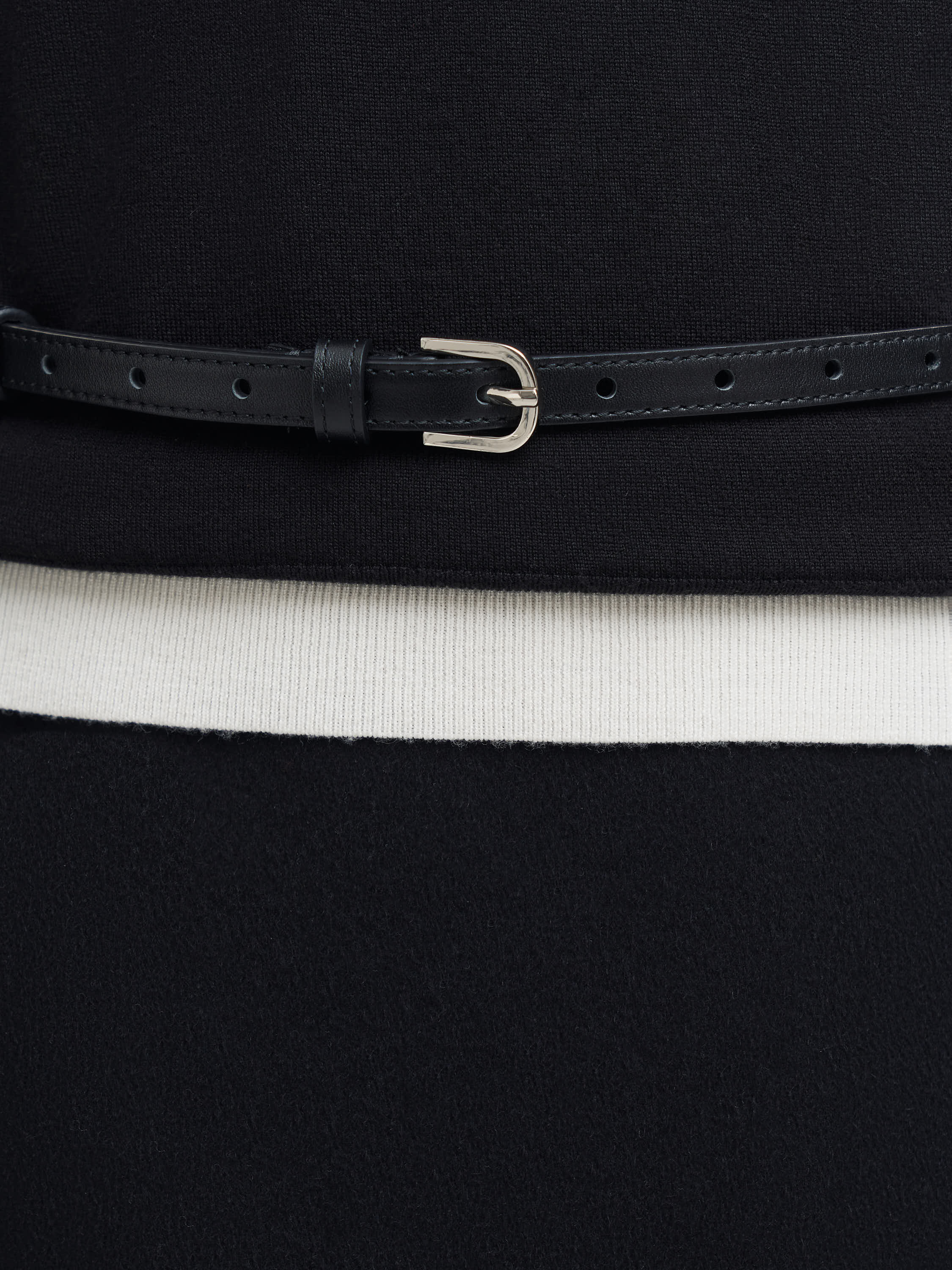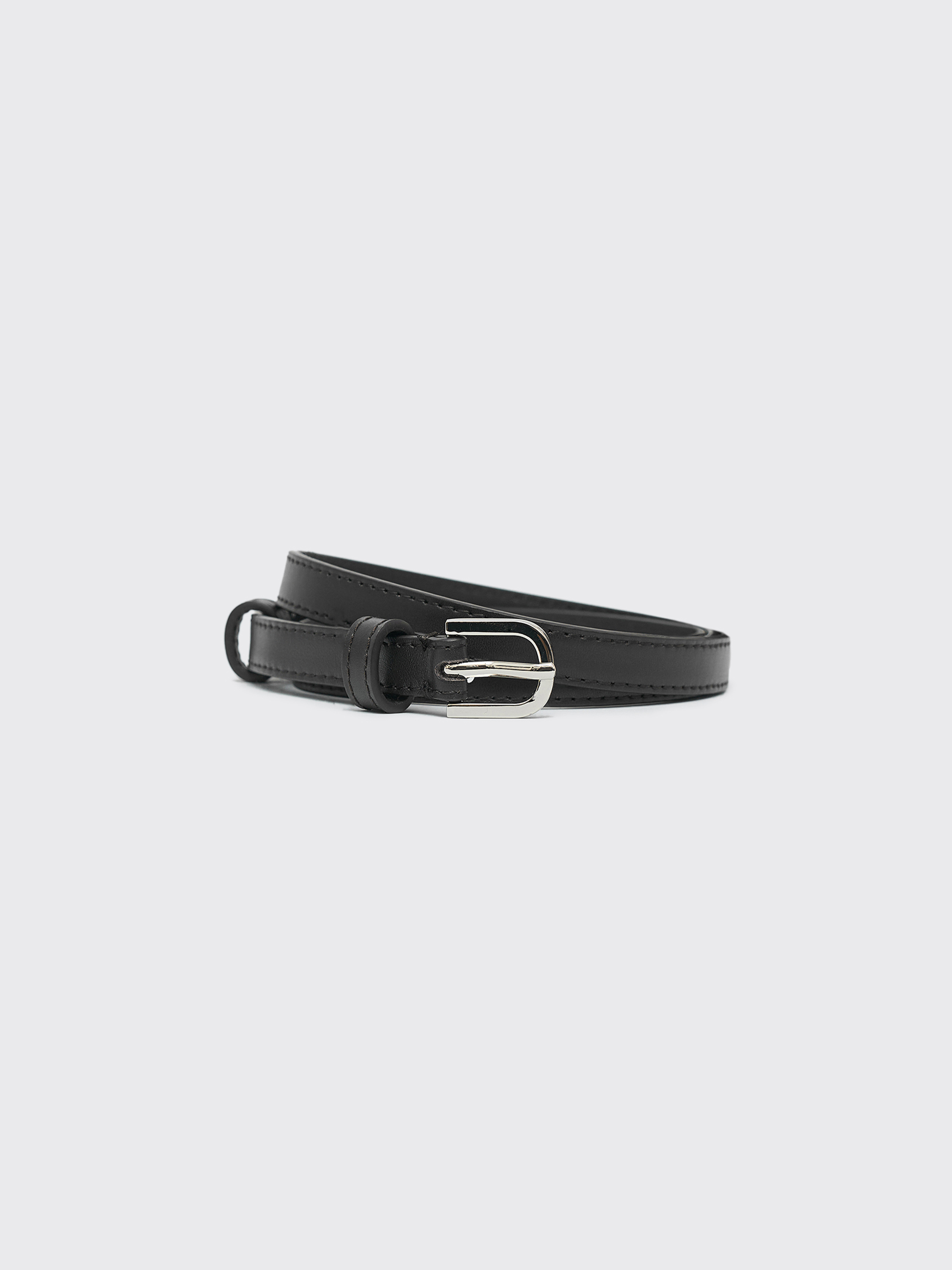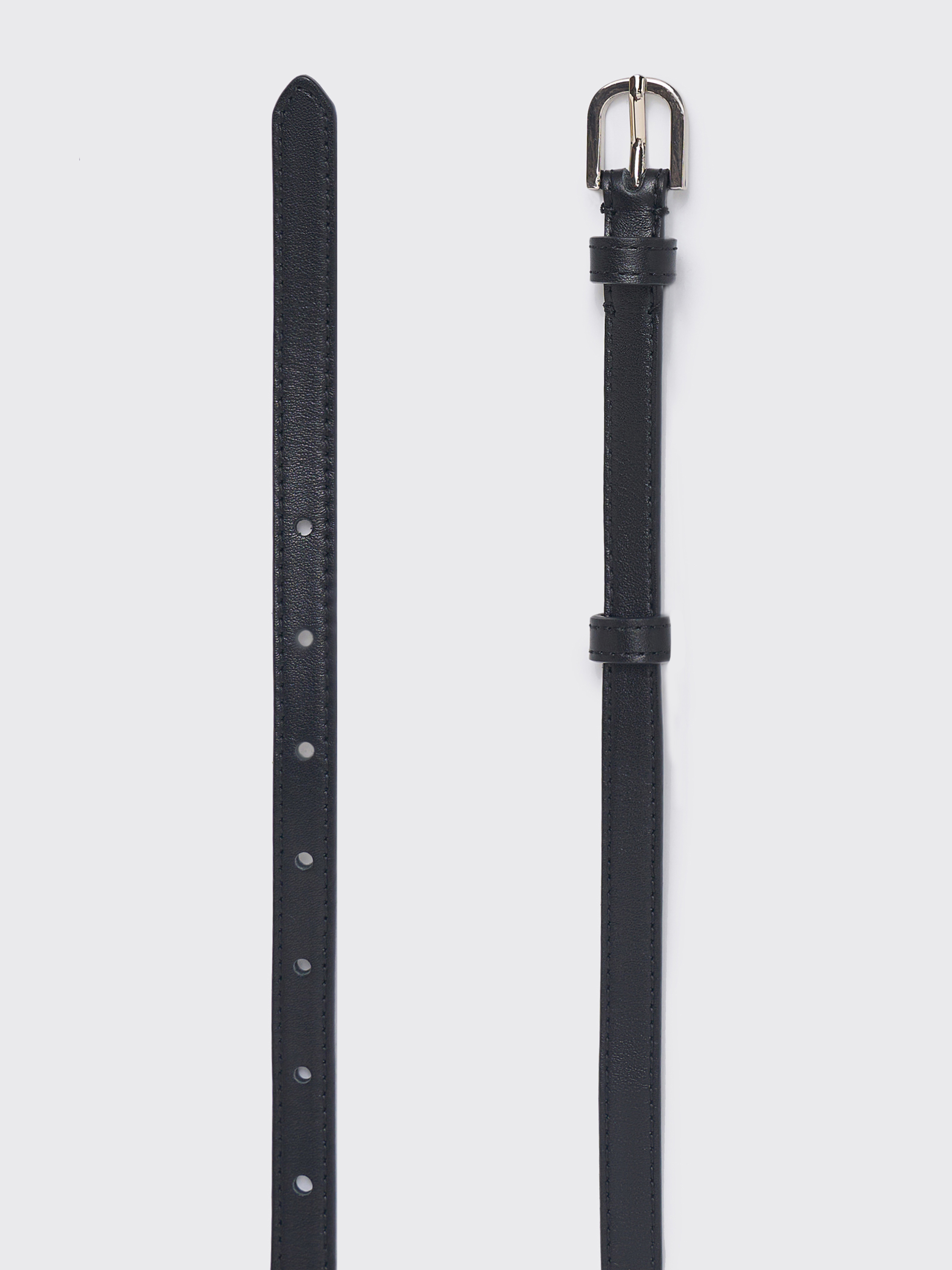 Узкий ремень из гладкой натуральной кожи с легким матовым блеском. Лаконичная пряжка из металла придает модели аккуратный и элегантный вид. Универсальная ширина позволяет носить ремень с платьями, брюками и юбками, подчеркивая линию талии. Аксессуар, который добавляет завершенность образу и вписывается в любой гардероб.