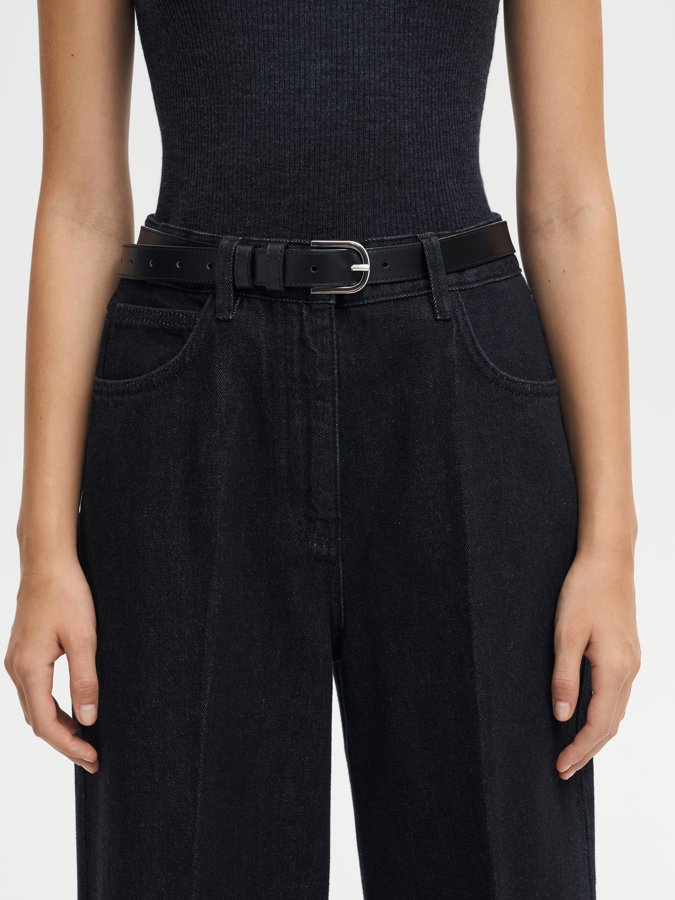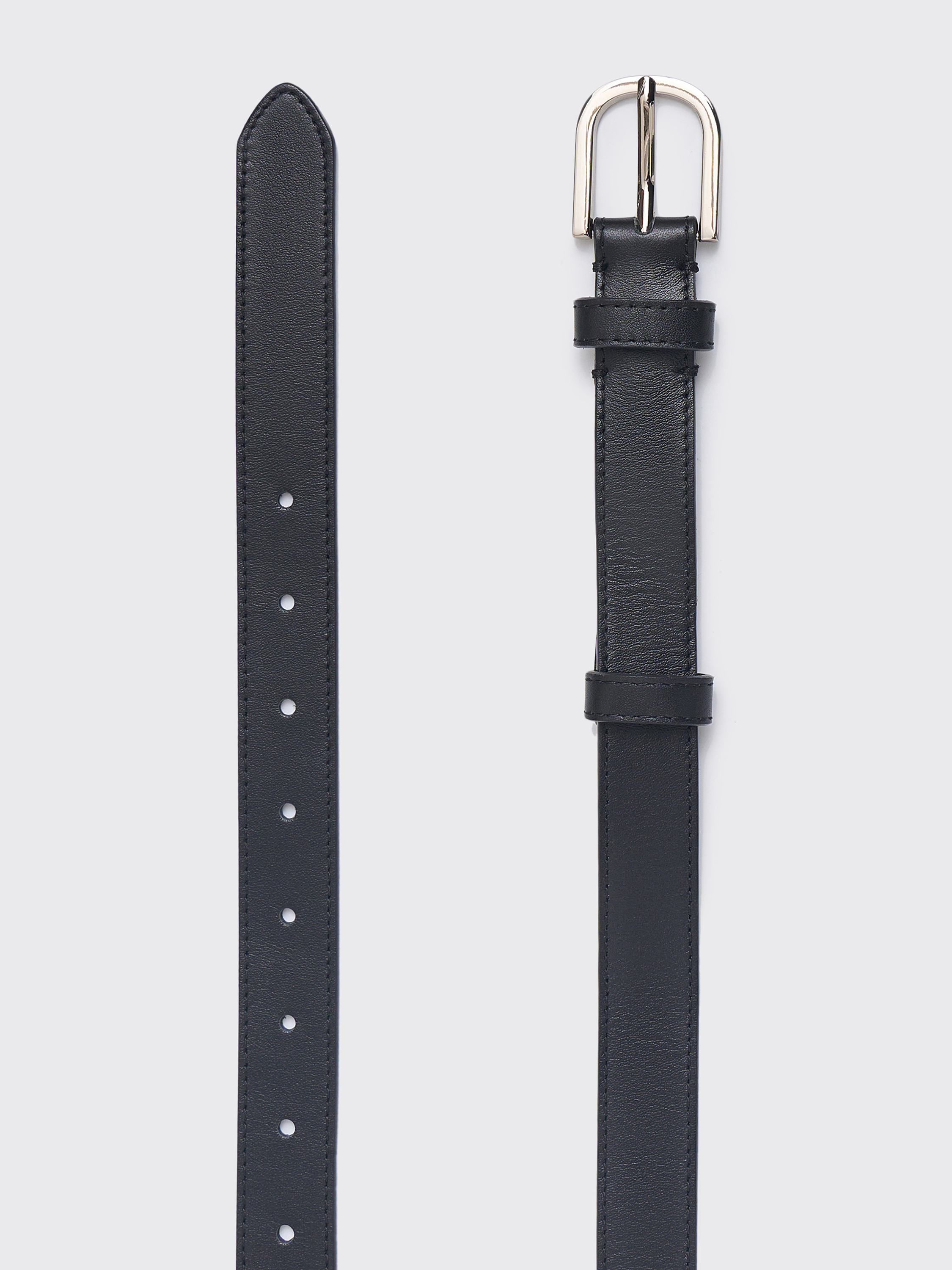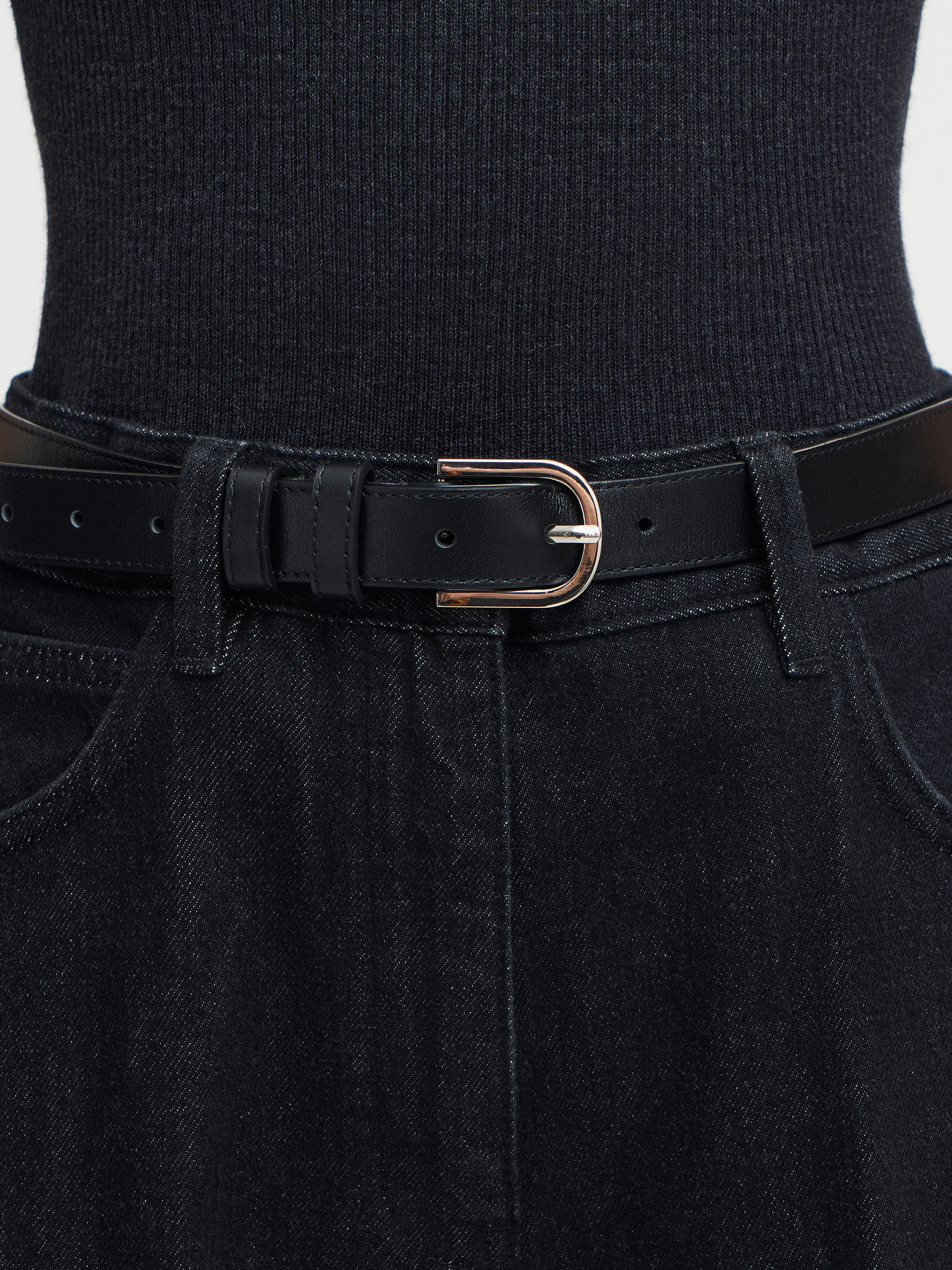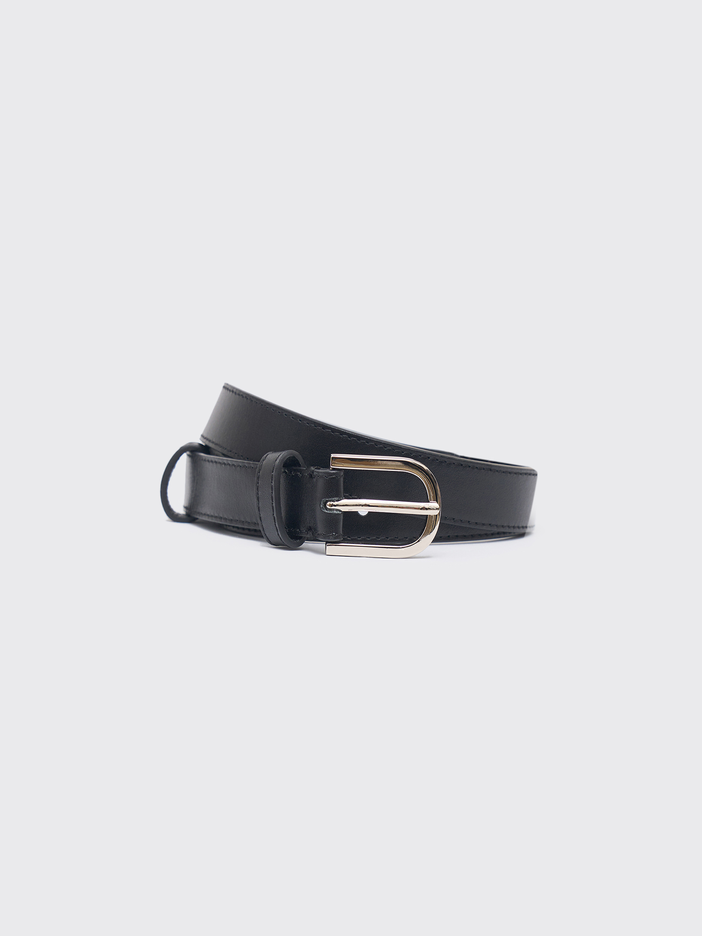 Кожаный ремень с классической пряжкой лаконичного дизайна. Выполнен из гладкой матовой кожи с аккуратной прострочкой по краю. Средняя ширина позволяет носить модель с брюками, джинсами или платьями, создавая четкий акцент на линии талии. Металлическая пряжка с легким блеском подчеркивает сдержанный характер аксессуара, а универсальный цвет делает его базовым элементом гардероба на каждый день.