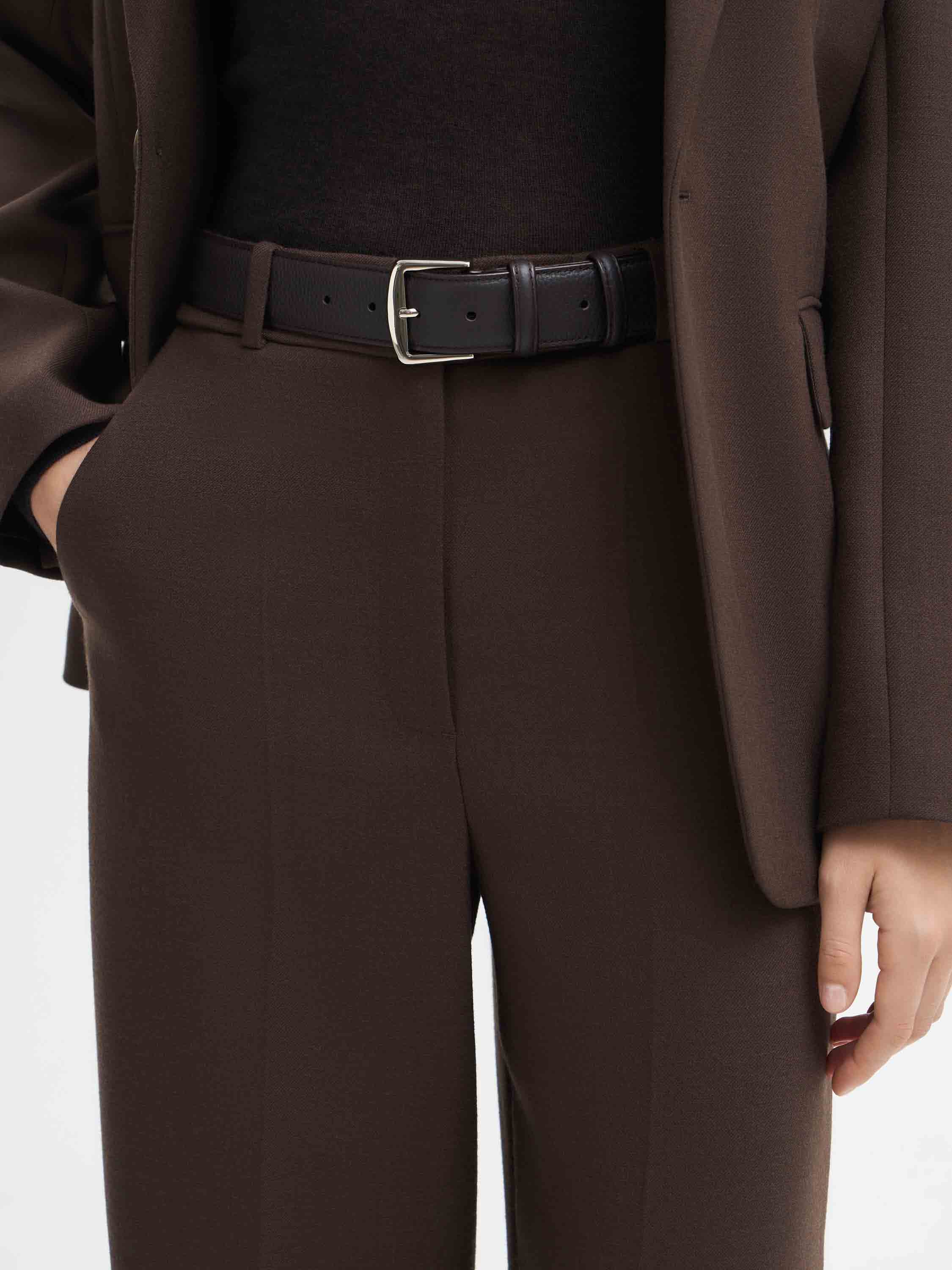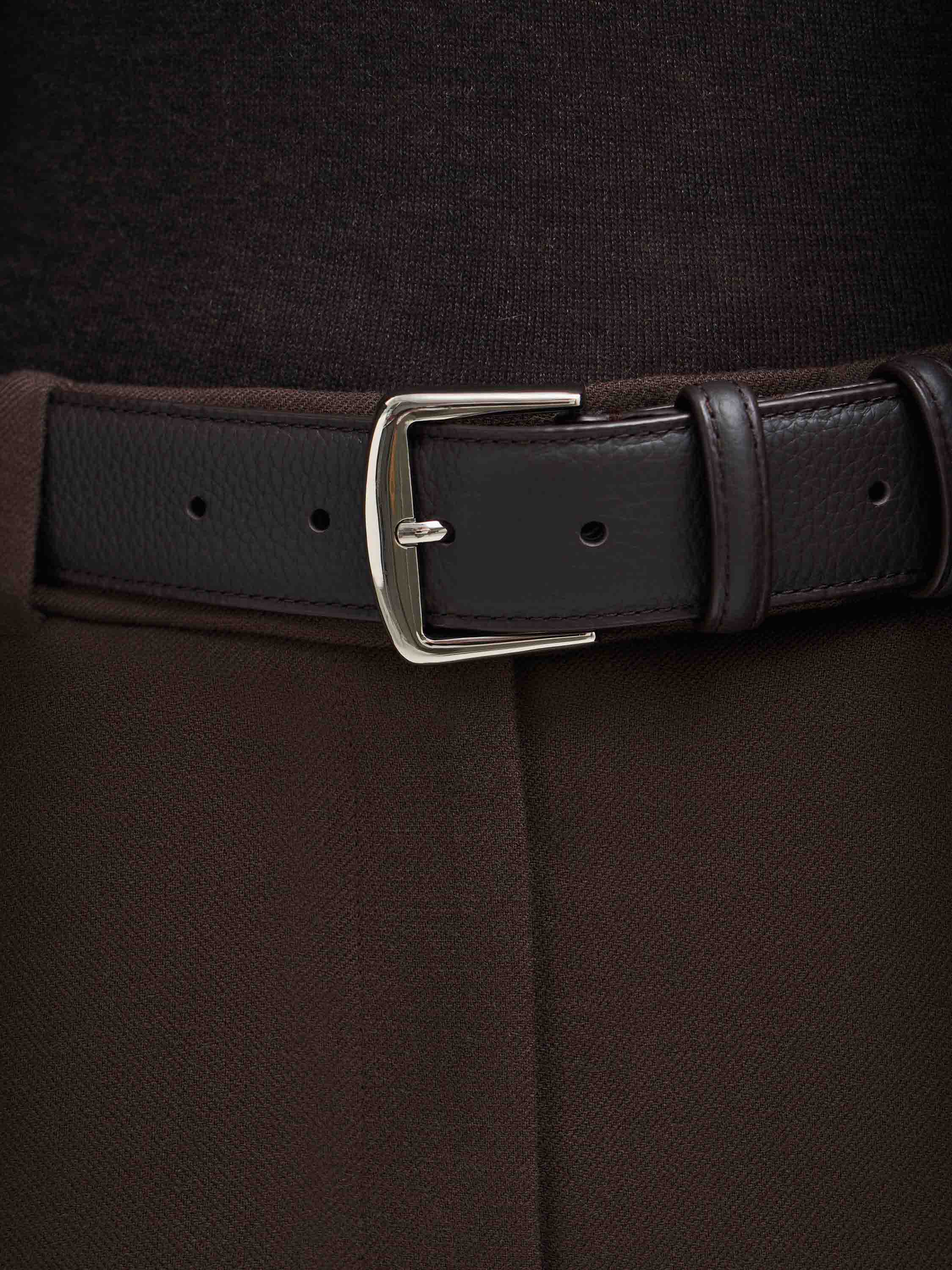 Ремень из натуральной кожи с лаконичной пряжкой в металле — универсальный аксессуар, который легко вписывается как в повседневный образ, так и в более строгий. Плотная фактура кожи держит форму и сохраняет аккуратный вид, а классический дизайн делает его незаменимым элементом базового гардероба.