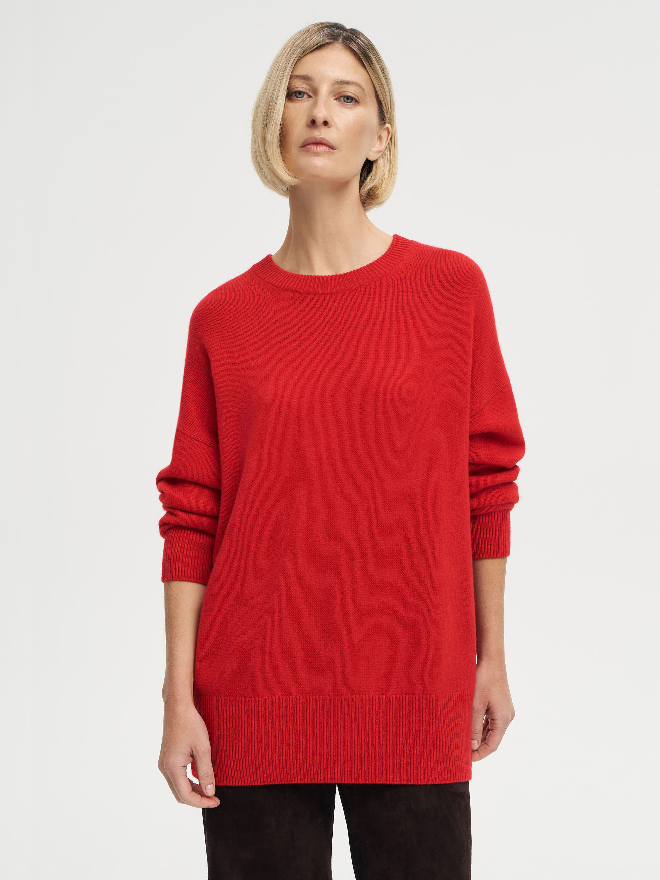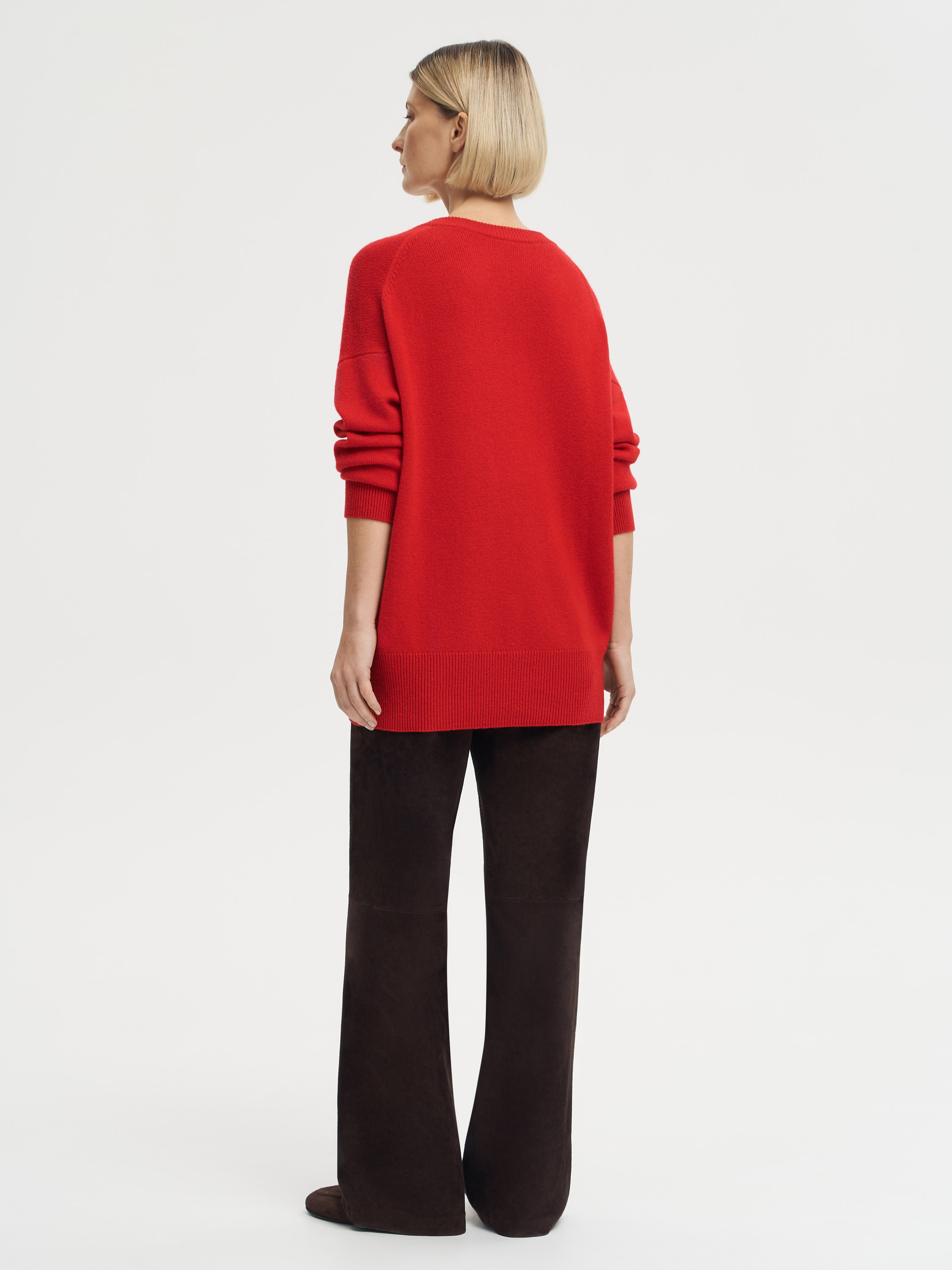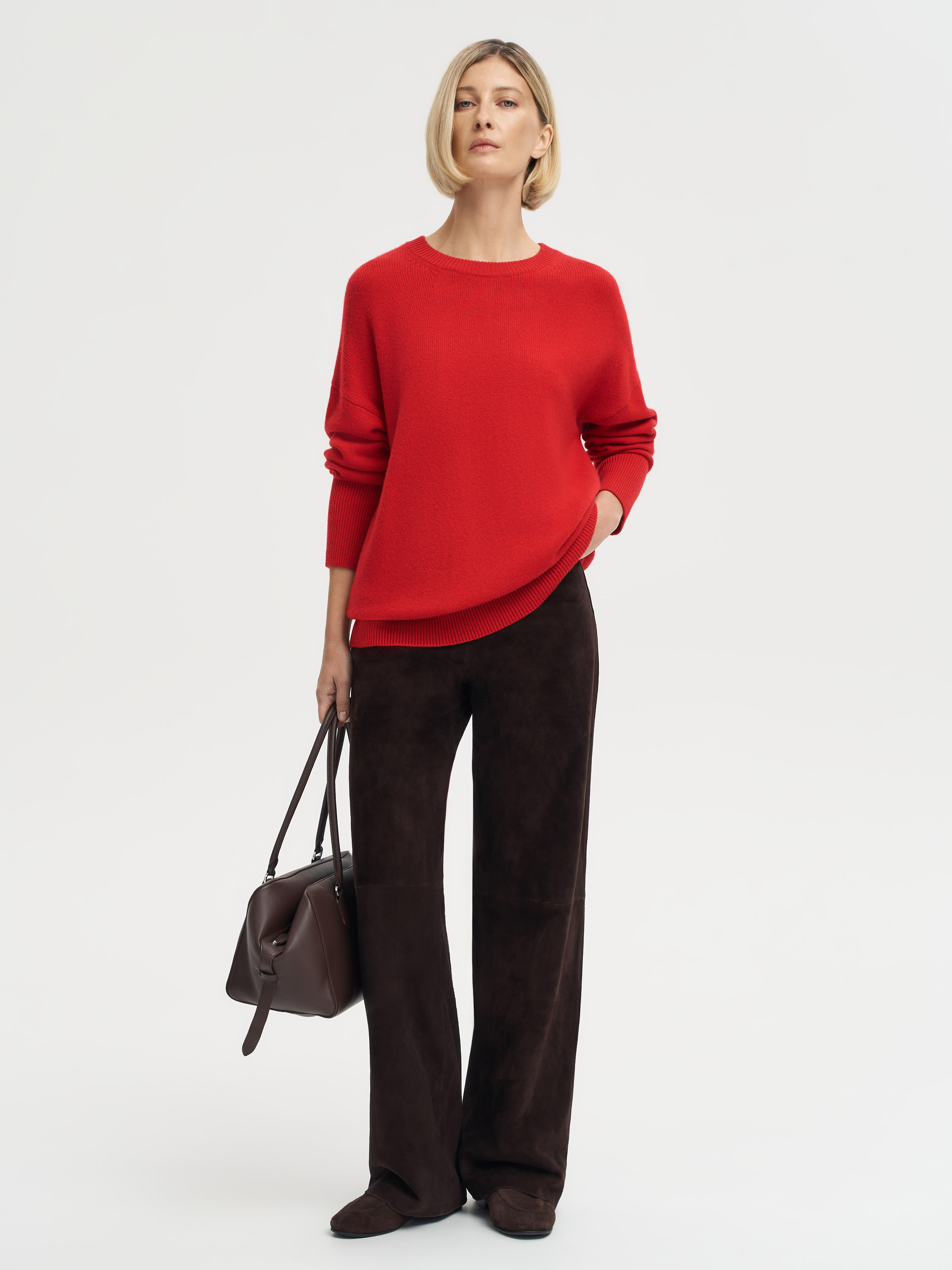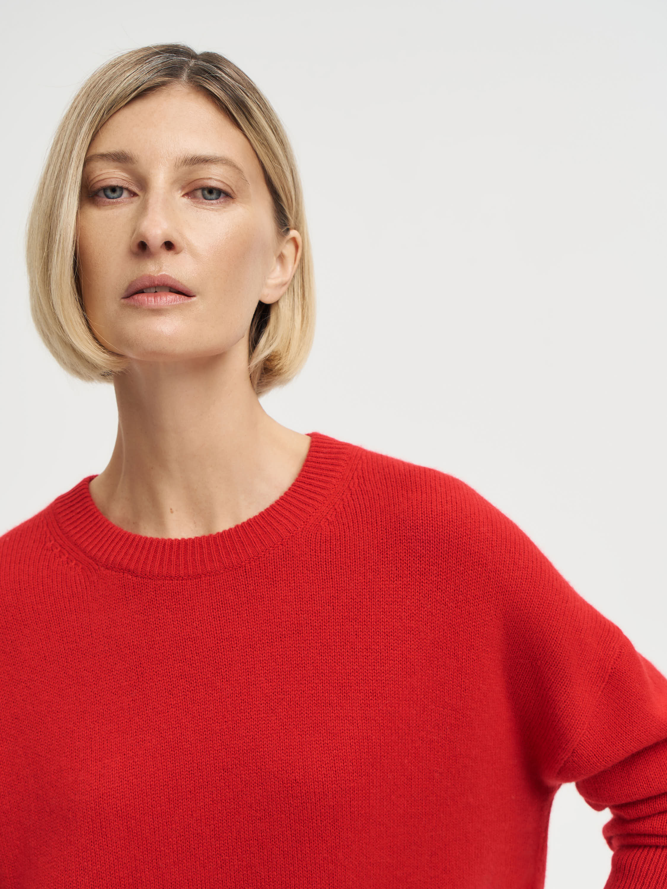 Джемпер из шерсти с кашемиром выполнен в лаконичном, современном крое с мягкой линией плеча и широкими манжетами. Натуральная пряжа делает изделие особенно комфортным: оно сохраняет тепло, дышит и приятно ощущается на коже. Плотное, но пластичное полотно хорошо держит форму и подходит для многослойных сочетаний. Универсальный силуэт легко вписывается в разные образы — от расслабленного дневного до более собранного вечернего. Это базовая вещь, которая добавляет в гардероб мягкость, выразительность и структуру.