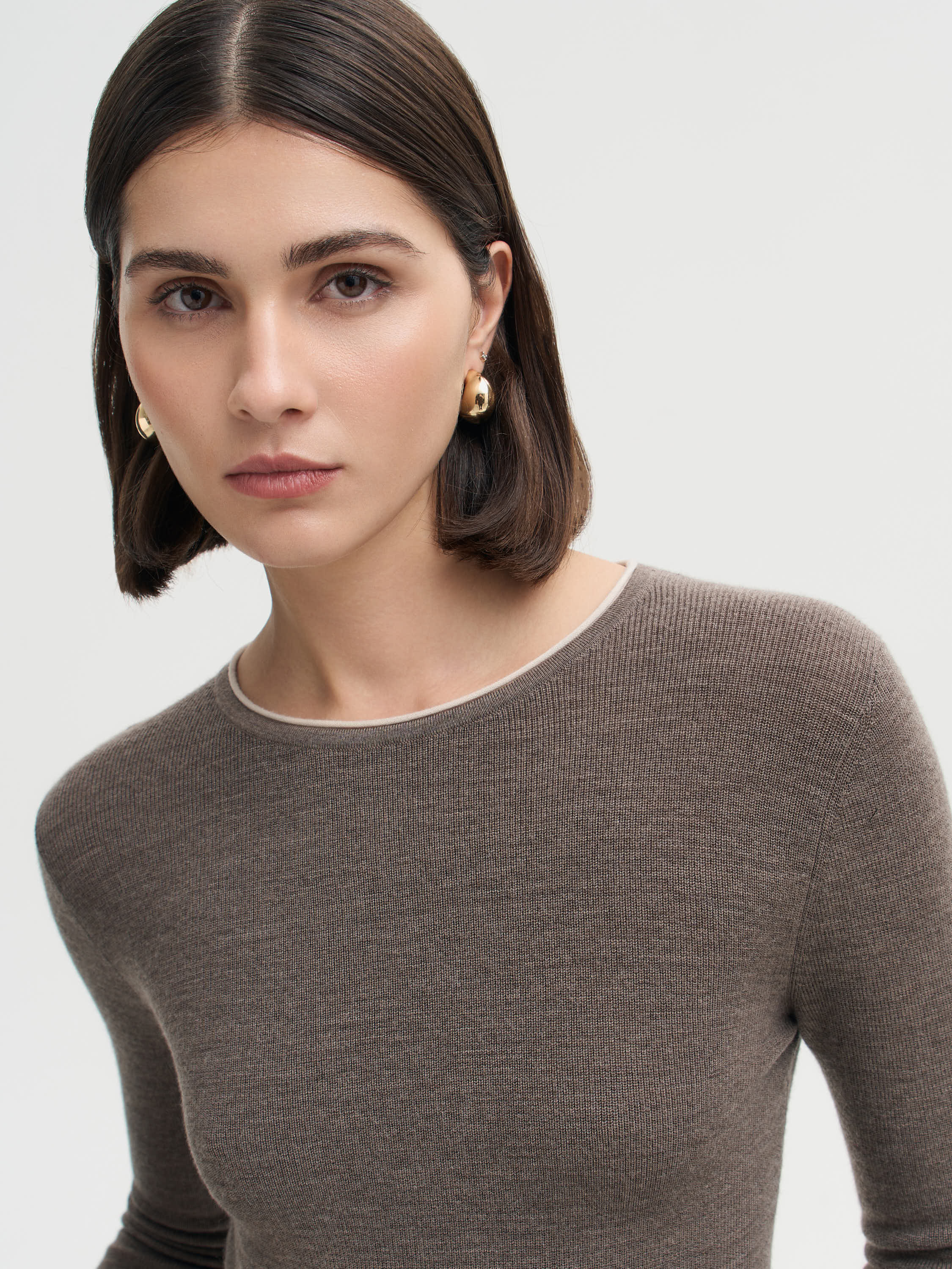 Джемпер выполнен из 100% шерсти мериноса, которая отличается мягкостью, воздухопроницаемостью и устойчивостью к износу. Тонкий трикотаж приятен к телу и сохраняет аккуратный внешний вид в течение дня. Крой прямой, с округлым вырезом и длинными рукавами. Горловина оформлена тонким кантом в контрастном оттенке, подчеркивающим минималистичный характер модели. Джемпер универсален: вписывается в базовые образы с джинсами или брюками и легко дополняет костюмные комплекты.