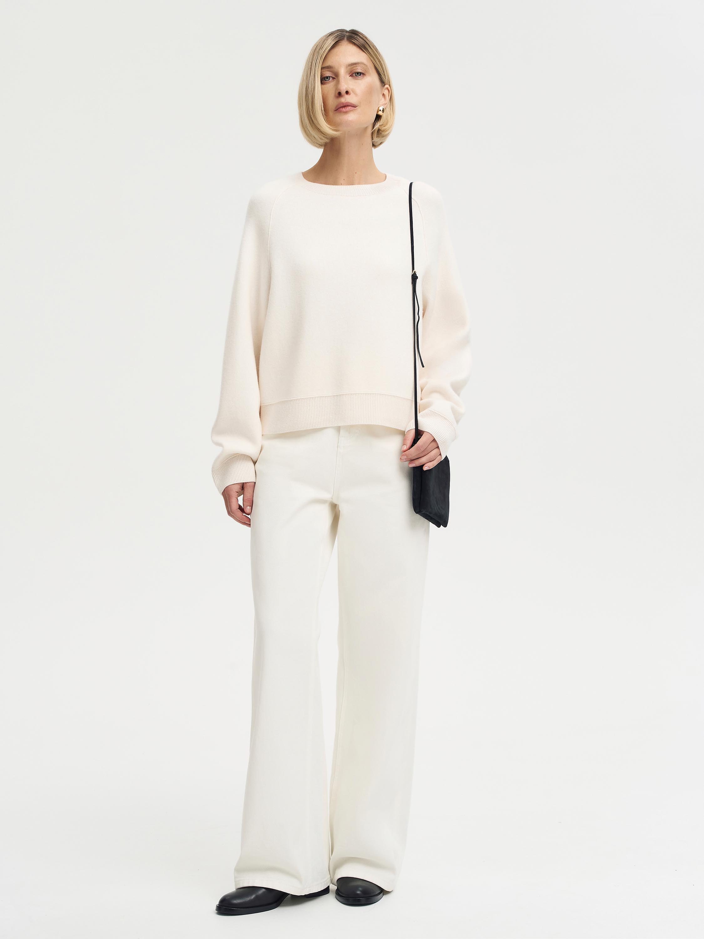 Джемпер из шерсти мериноса и кашемира — мягкий, пластичный и комфортный вариант на каждый день. Натуральная пряжа делает изделие особенно приятным к телу, сохраняя тепло и форму. Лаконичный силуэт с круглым вырезом и аккуратной резинкой по краям создает чистую, сбалансированную линию. Благодаря универсальному дизайну джемпер легко становится частью многослойных образов: он гармонично сочетается с брюками, юбками, жакетами и пальто, оставаясь основой сезонного гардероба.