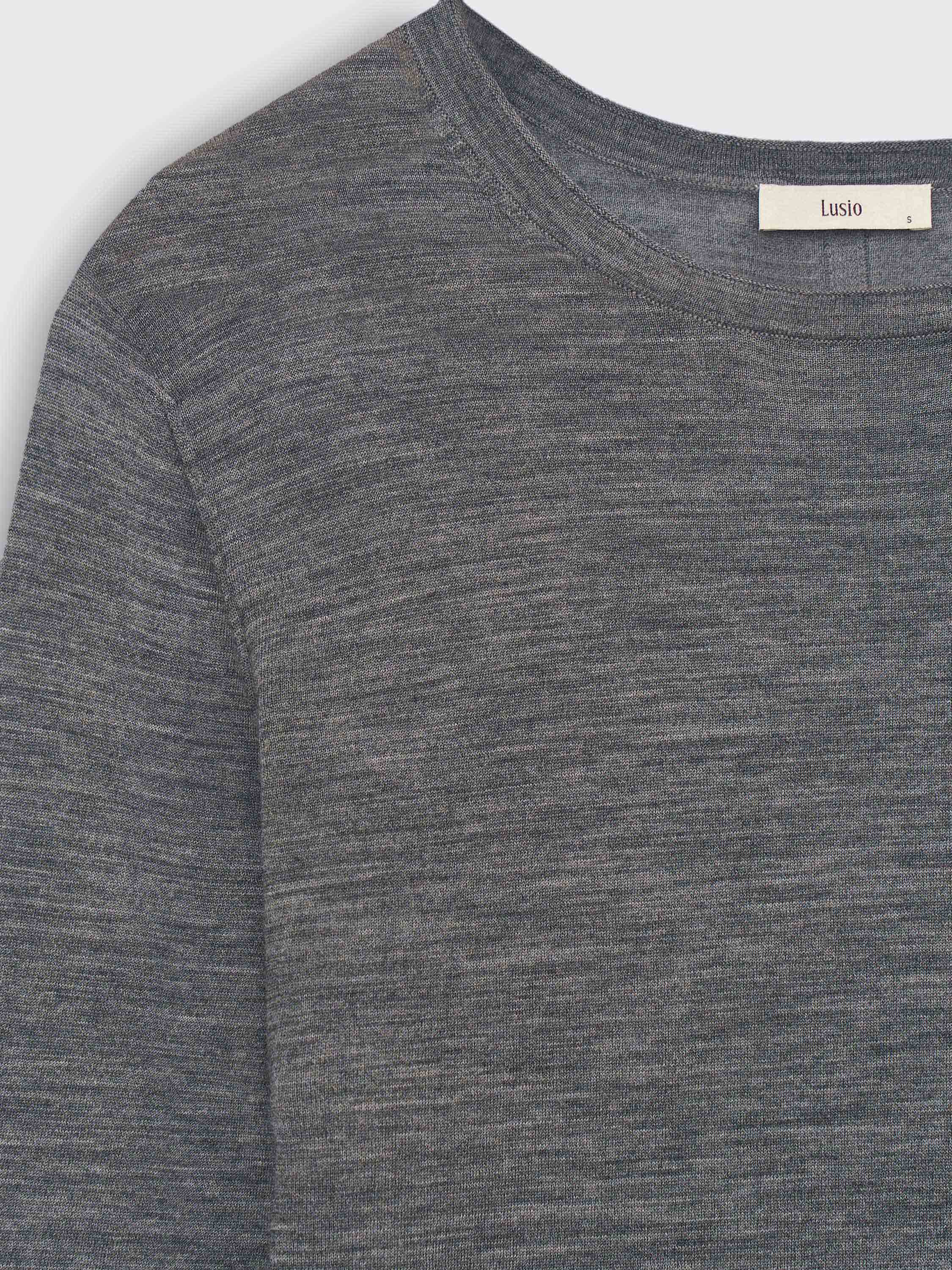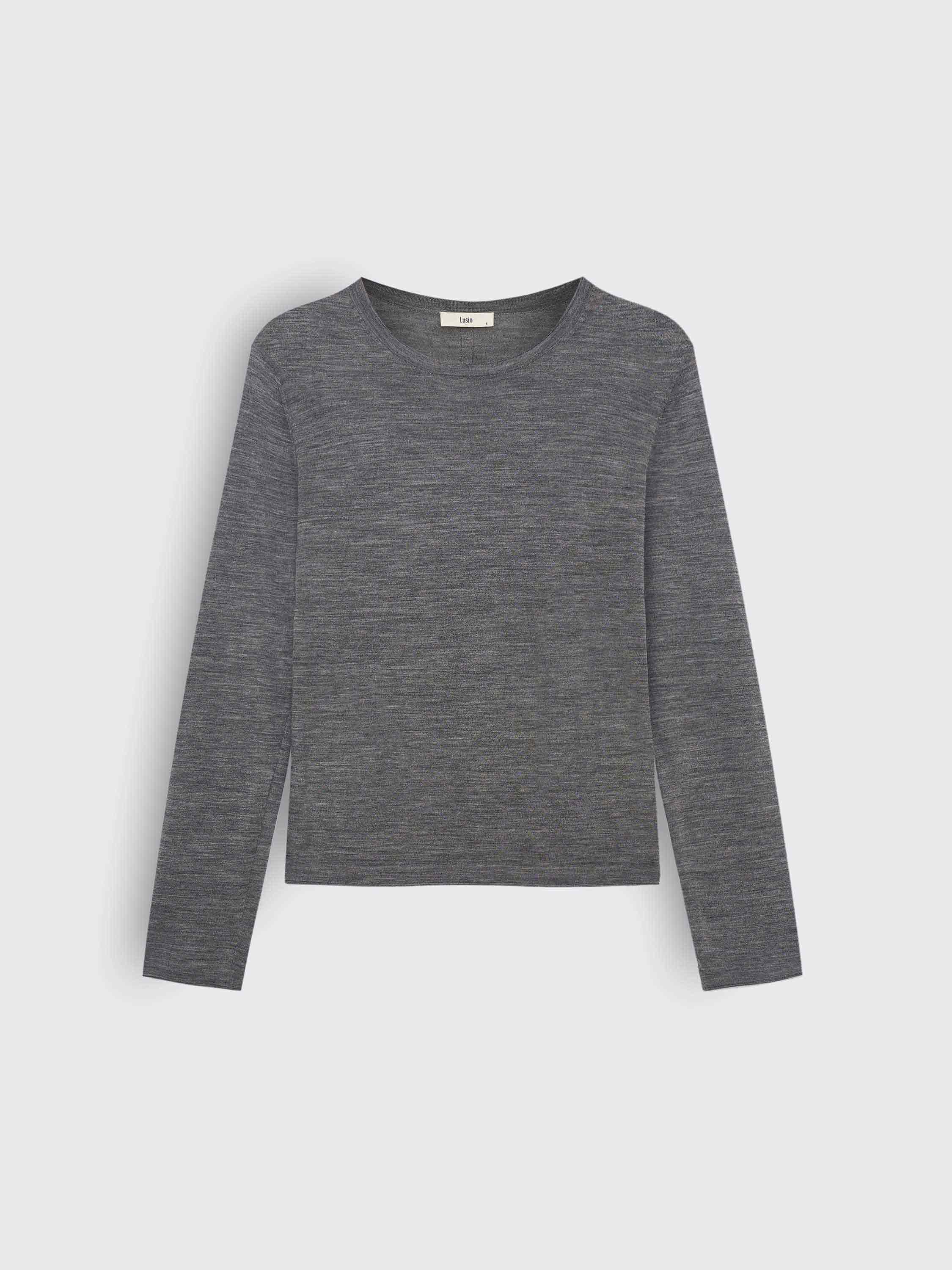 Джемпер из 100% мериносовой шерсти выполнен из тонкого, гладкого трикотажа, который приятно ощущается на коже и сохраняет тепло, оставаясь легким и тактильно приятным. Материал пластичный и дышащий, благодаря чему вещь комфортна в течение всего дня. Чистый крой с длинным рукавом и округлым вырезом формирует лаконичный силуэт без лишних деталей. Модель легко вписывается в разные сценарии — от строгих комбинаций с жакетами и классическими брюками до расслабленных образов с денимом
