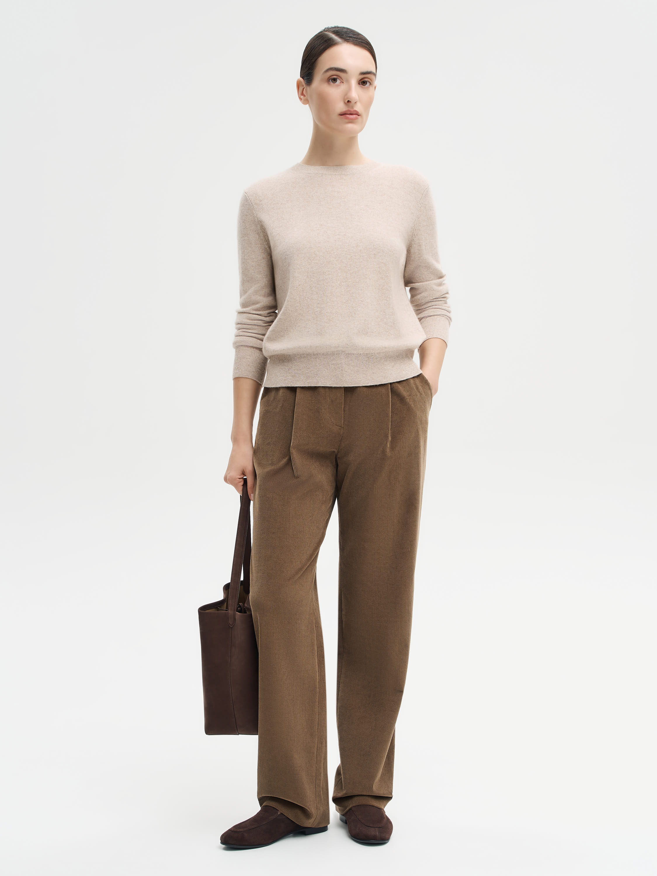 Джемпер выполнен из мягкого и теплого трикотажа с добавлением кашемира и тонкой шерсти мериноса, благодаря чему он приятен к телу и сохраняет тепло без лишнего объема. Классический круглый вырез и лаконичный крой делают модель универсальной — она легко вписывается как в повседневные, так и в более собранные образы. Плотная резинка по линии горловины, манжет и низа обеспечивает аккуратную посадку. Представлен в двух светлых оттенках — нежный кремовый и теплый бежевый — которые подчеркивают деликатность фактуры и сочетаются с любой базовой палитрой.