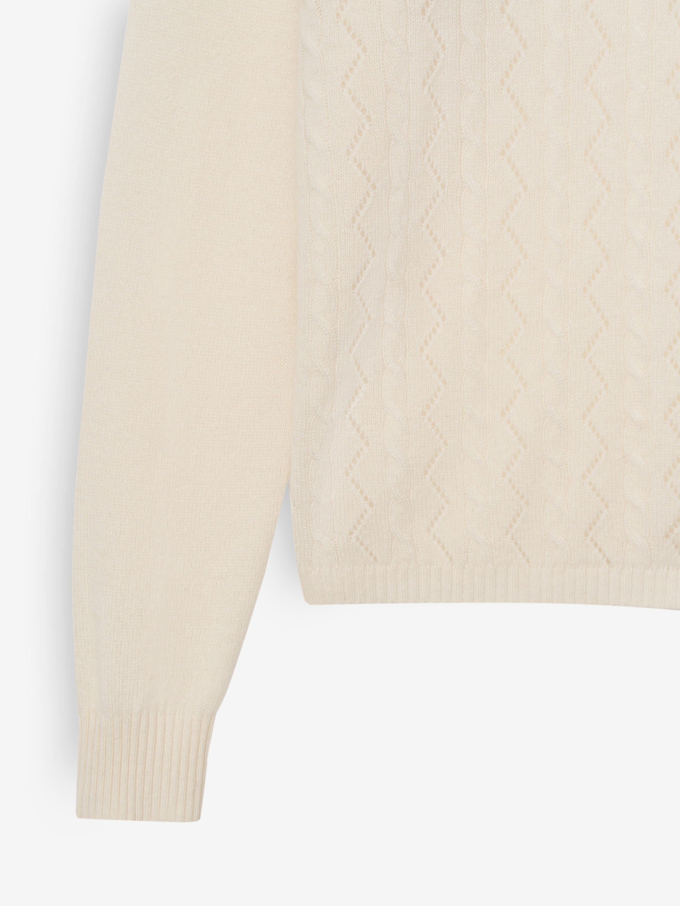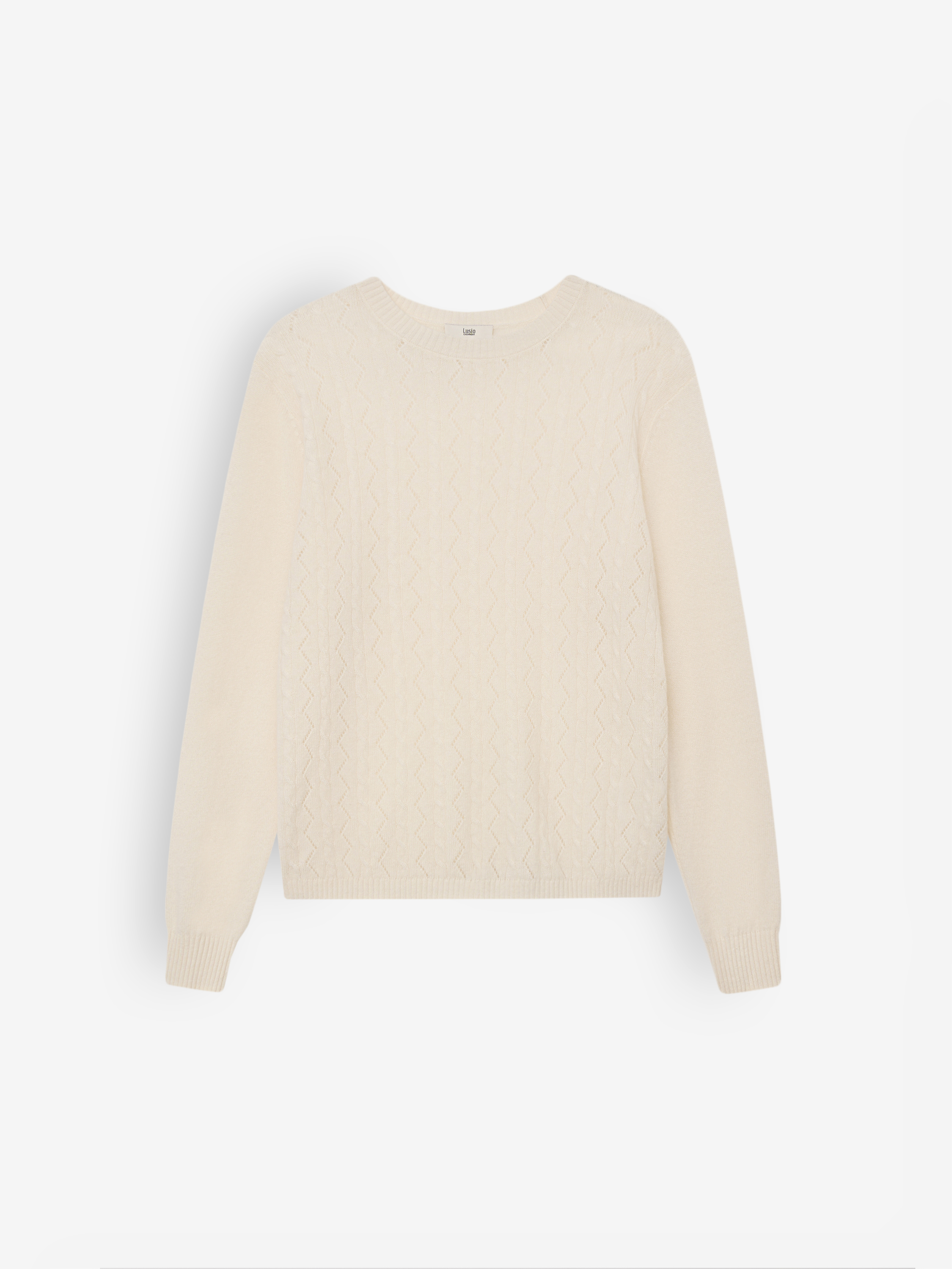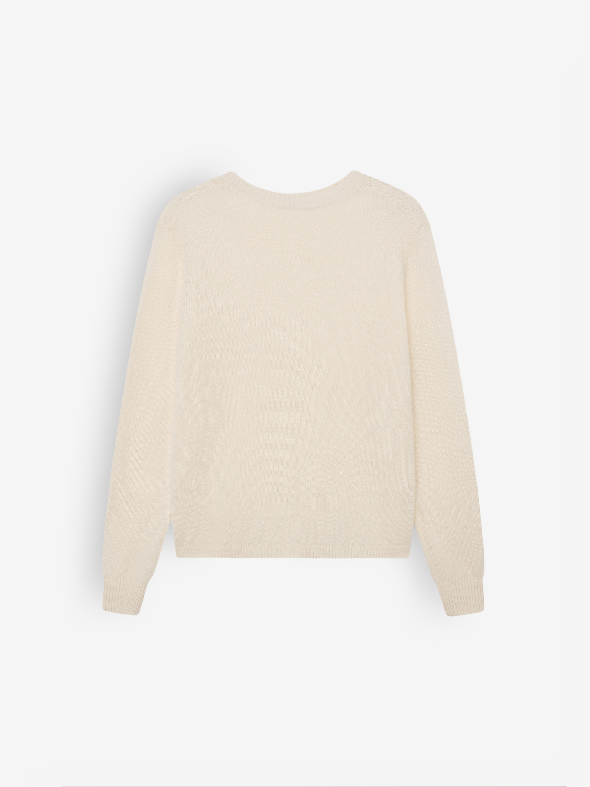 Джемпер из 100% кашемира с деликатным рельефом, который добавляет визуальный объем и подчеркивает мягкость трикотажа. Форма выдержана в прямой линии: посадка остается свободной, но не расплывчатой, сохраняя собранный силуэт. Горловина и манжеты выполнены плотной резинкой, создавая чистый переход и удерживая форму в носке. Кашемир создает ровную, гладкую поверхность и тактильно приятную плотность, благодаря чему джемпер актуален и как самостоятельный элемент, и как мягкий базовый слой под жакеты и пальто. Модель уравновешивает минималистичные комплекты с брюками прямого кроя, денимом или спокойными юбками миди.