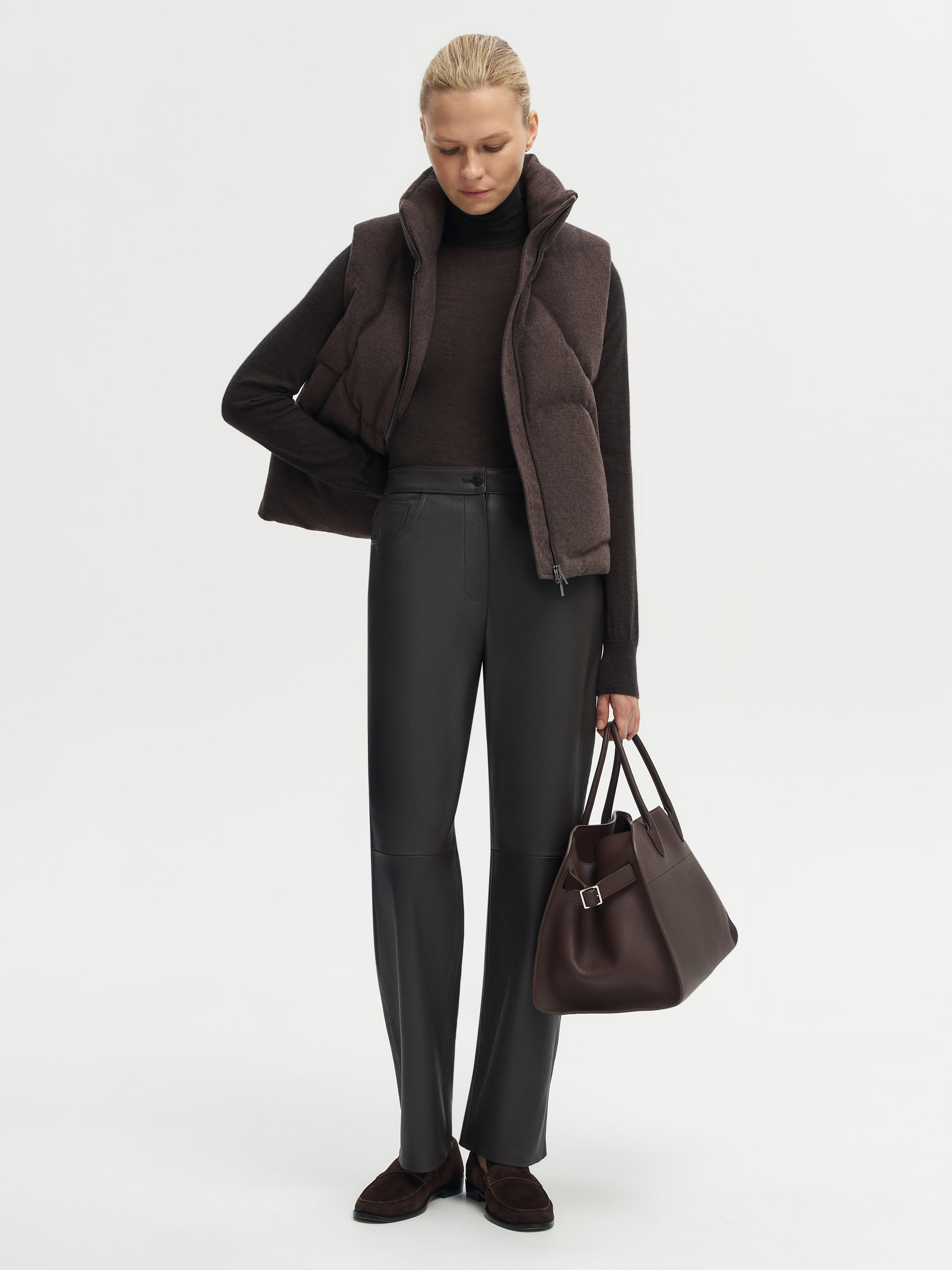 Жилет из ткани на основе шерсти и шелка сочетает в себе тепло, мягкость и изысканную фактуру. Благодаря технологии Storm System материал становится ветро- и водонепроницаемым, сохраняя при этом естественное ощущение натуральных волокон. Тонкая мембрана с микропорами защищает от непогоды и одновременно выводит влагу, обеспечивая комфорт в движении. В качестве наполнителя используется 90% пух и 10% перо с индексом Fill Power 750 — один из самых высоких показателей теплоизоляции. При этом жилет остается легким, пластичным и сохраняет форму. Продуманный крой с высоким воротником и удобной застежкой-молнией делает модель универсальной: ее можно носить поверх водолазок, джемперов или под пальто, выстраивая многослойные и функциональные образы для прохладного сезона.