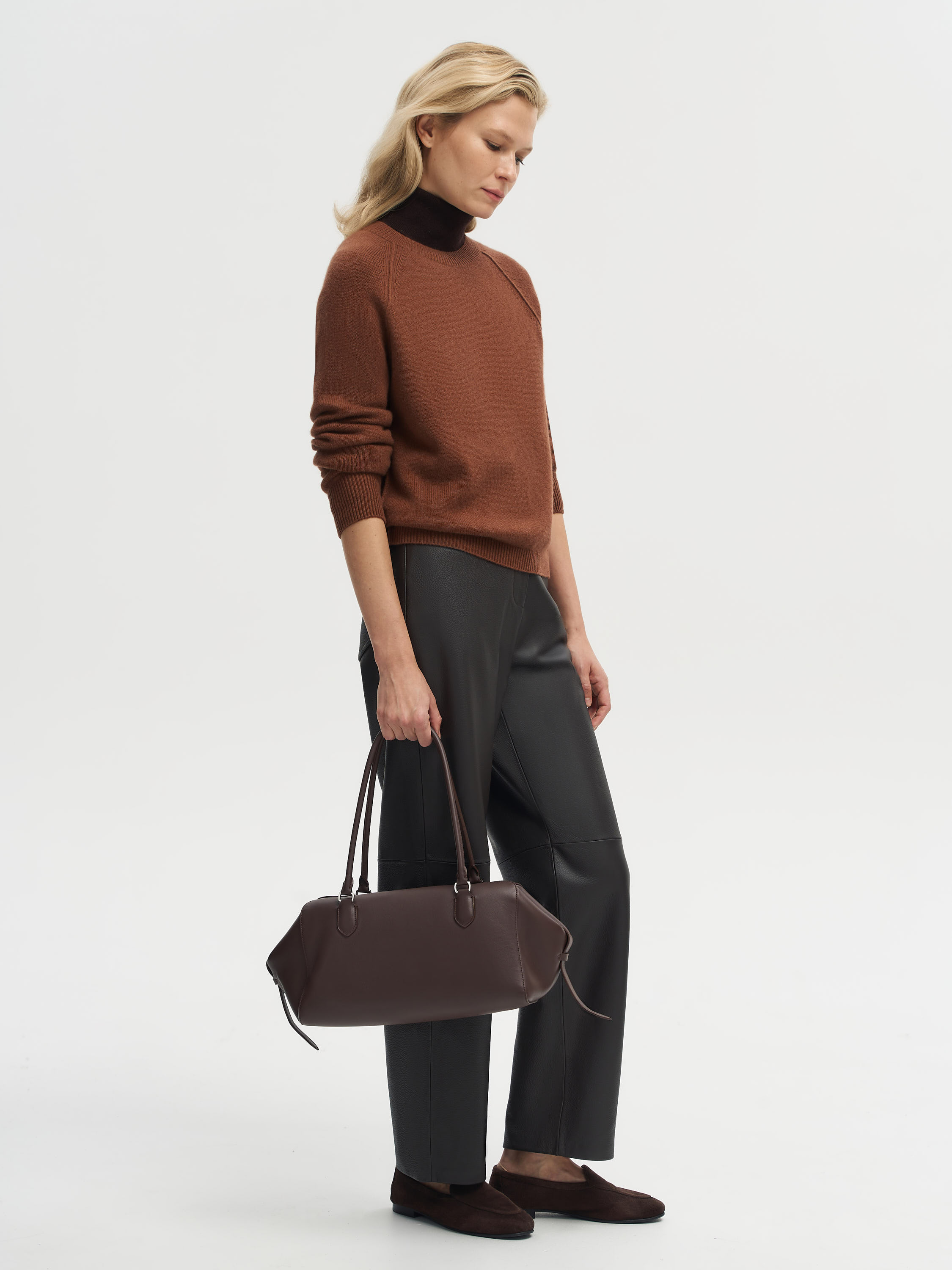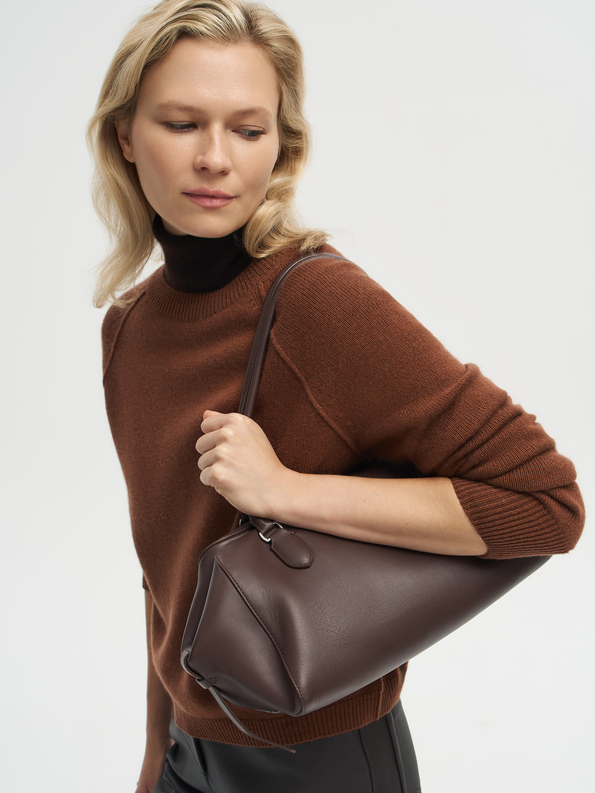 Сумка из натуральной кожи с выраженной зернистой фактурой. Мягкий, но формоустойчивый материал сохраняет аккуратный вид и приятен на ощупь. Минималистичный дизайн подчеркивают округлые линии и чистые пропорции корпуса. Удобные ручки позволяют носить сумку в руке или на предплечье, а надежная застежка-молния обеспечивает комфорт в повседневном использовании. Универсальный оттенок и лаконичный силуэт делают модель уместной как в деловом, так и в расслабленном образе.