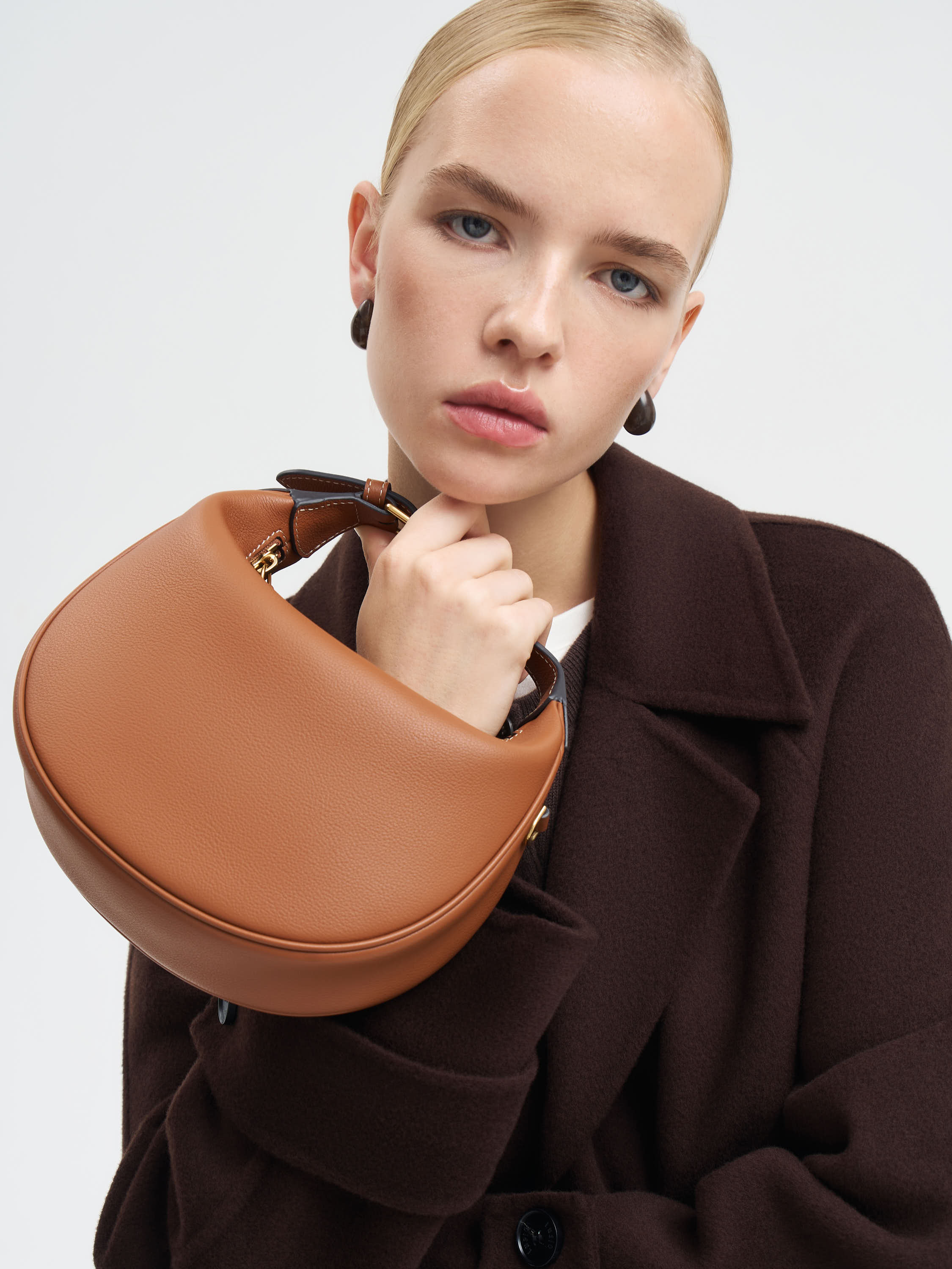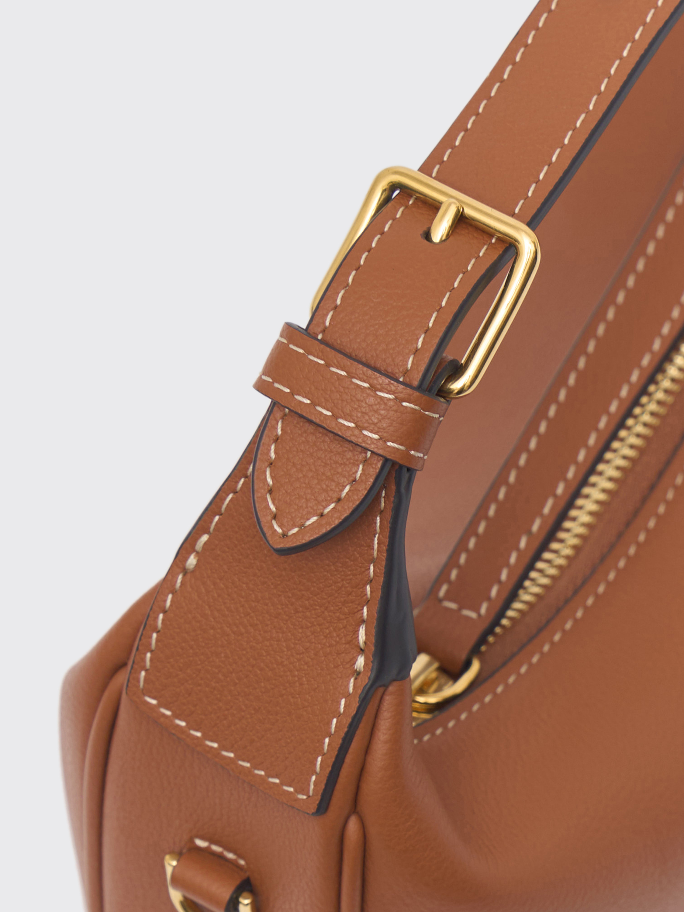 Сумка из гладкой кожи со структурированным силуэтом. Компактная форма дополнена коротким плечевым ремнем, который удобно садится на плечо и позволяет носить модель в разных вариациях. Минималистичное оформление подчеркивает чистую геометрию, а металлическая фурнитура добавляет сдержанный акцент. Внутри — достаточно пространства для необходимых вещей, что делает сумку практичным аксессуаром на каждый день. Модель органично сочетается как с верхней одеждой, так и с лаконичными комплектами.