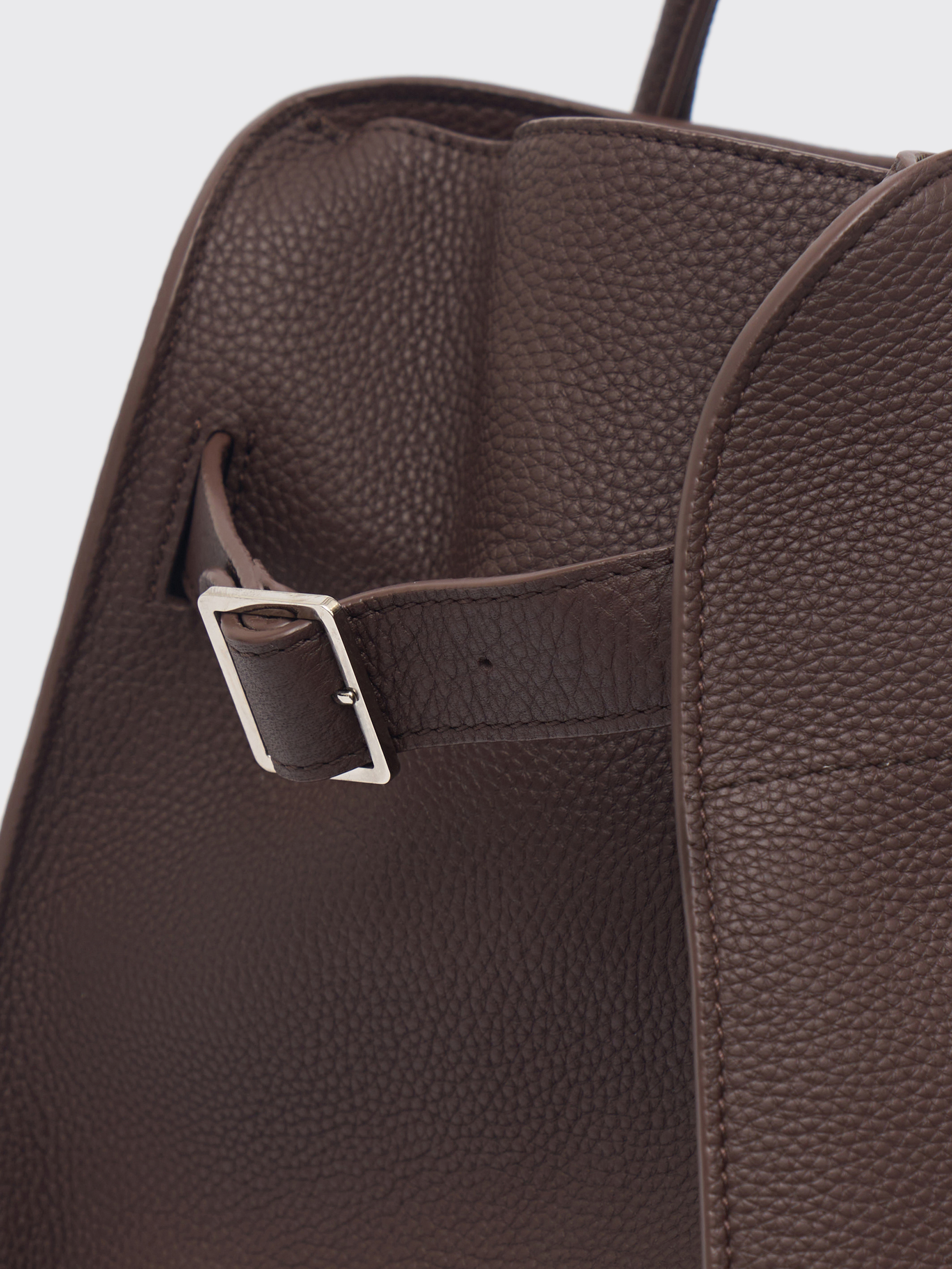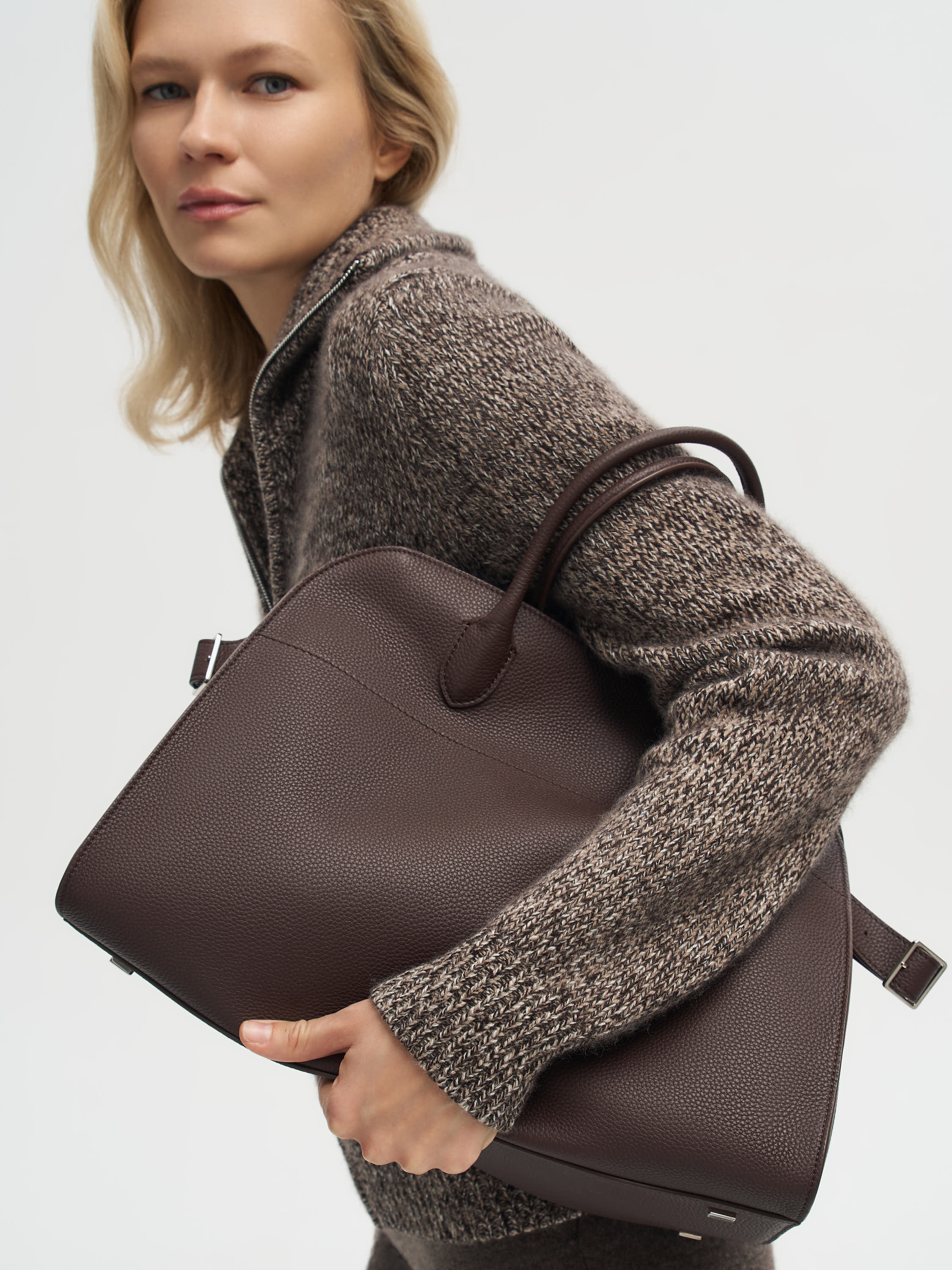 Сумка из натуральной кожи в лаконичном прямоугольном силуэте. Мягкая фактура материала подчеркивает глубину оттенка и добавляет образу элегантности. Вместительное отделение делает модель функциональной для города и путешествий, а короткие ручки позволяют носить её в руках или на сгибе локтя. Благодаря минималистичному дизайну сумка легко вписывается в повседневные и более собранные комплекты, становясь универсальным аксессуаром на сезон.
