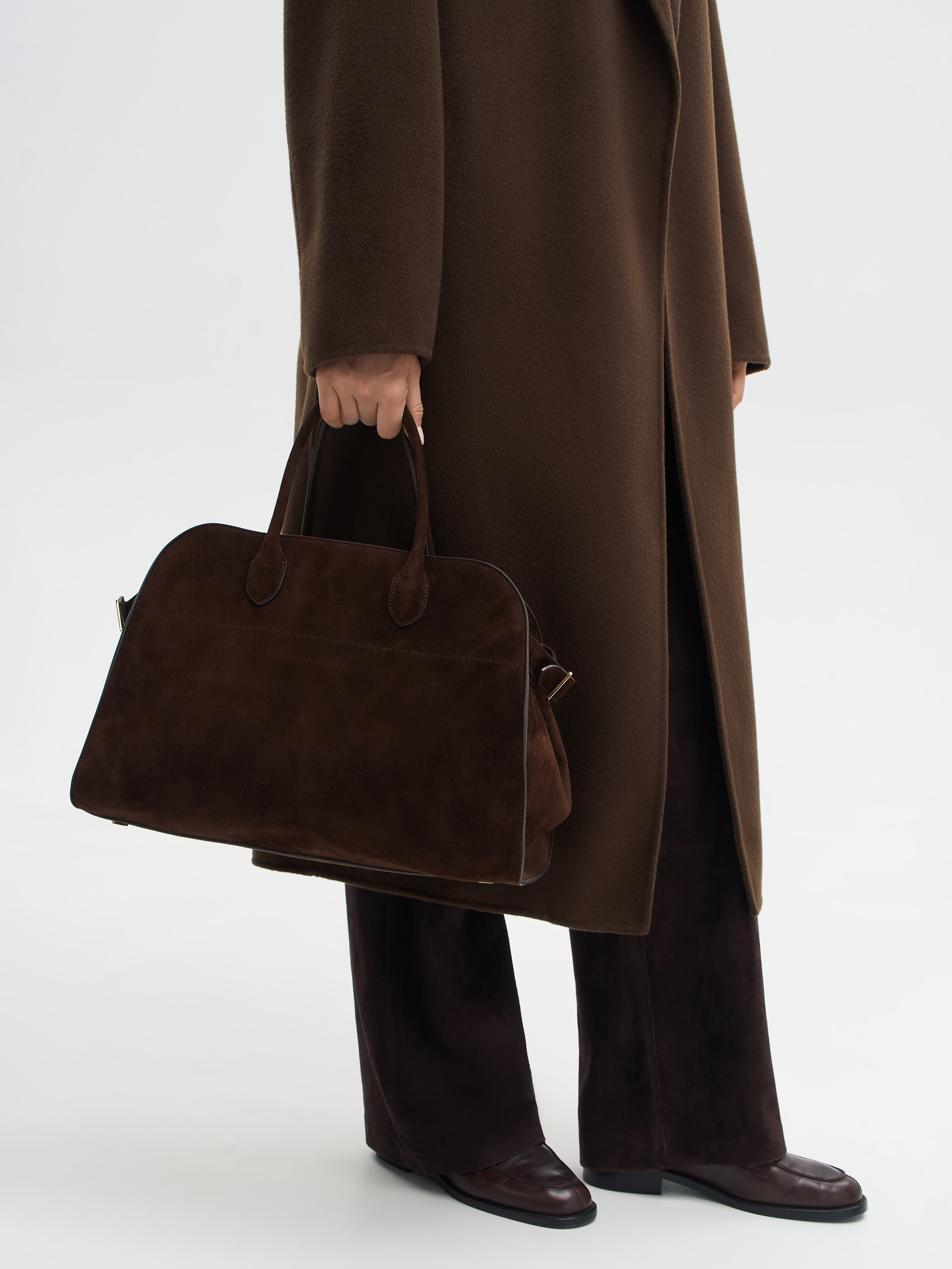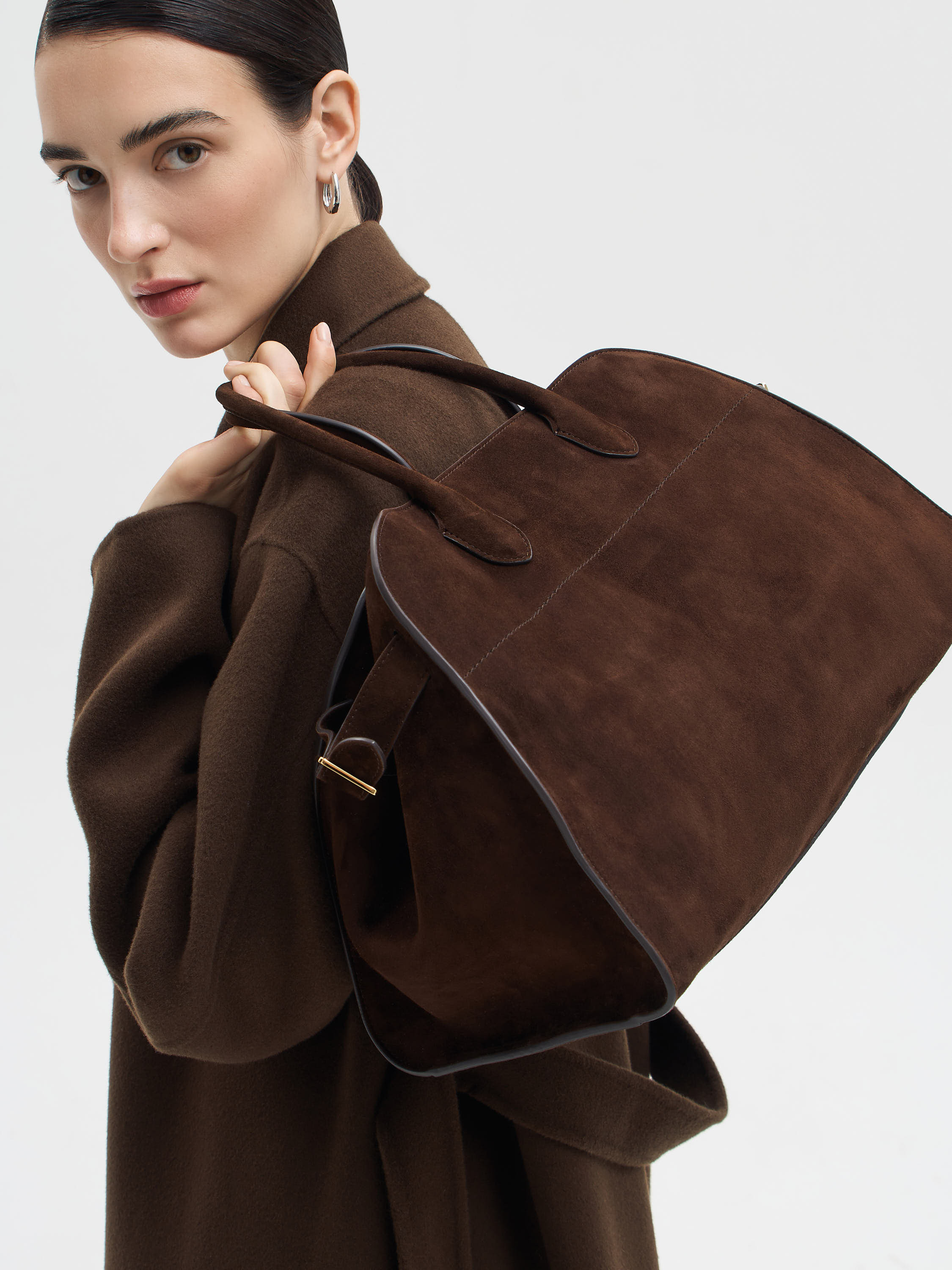 Сумка из натуральной кожи в лаконичном прямоугольном силуэте. Мягкая фактура материала подчеркивает глубину оттенка и добавляет образу элегантности. Вместительное отделение делает модель функциональной для города и путешествий, а короткие ручки позволяют носить её в руках или на сгибе локтя. Благодаря минималистичному дизайну сумка легко вписывается в повседневные и более собранные комплекты, становясь универсальным аксессуаром на сезон.