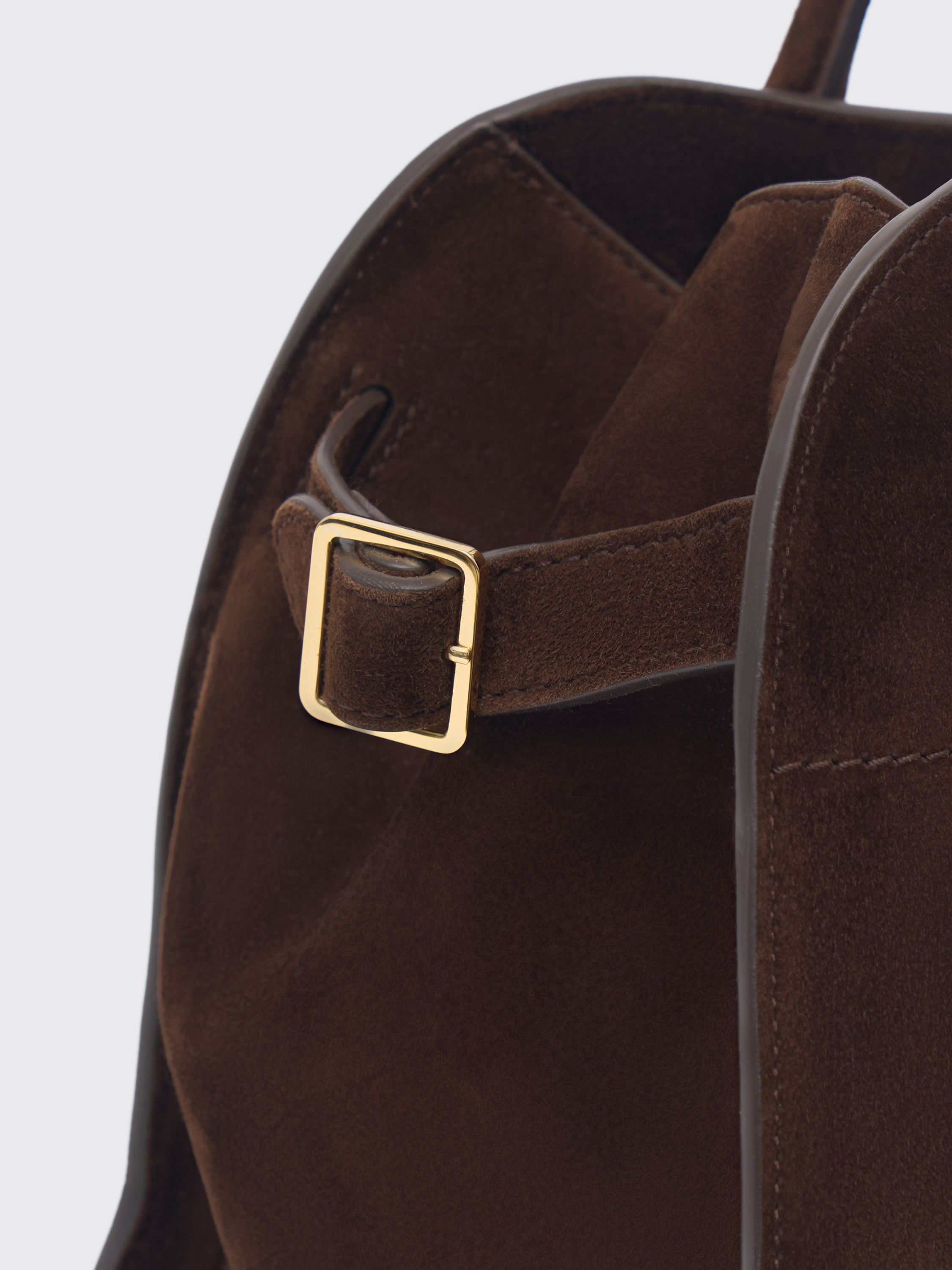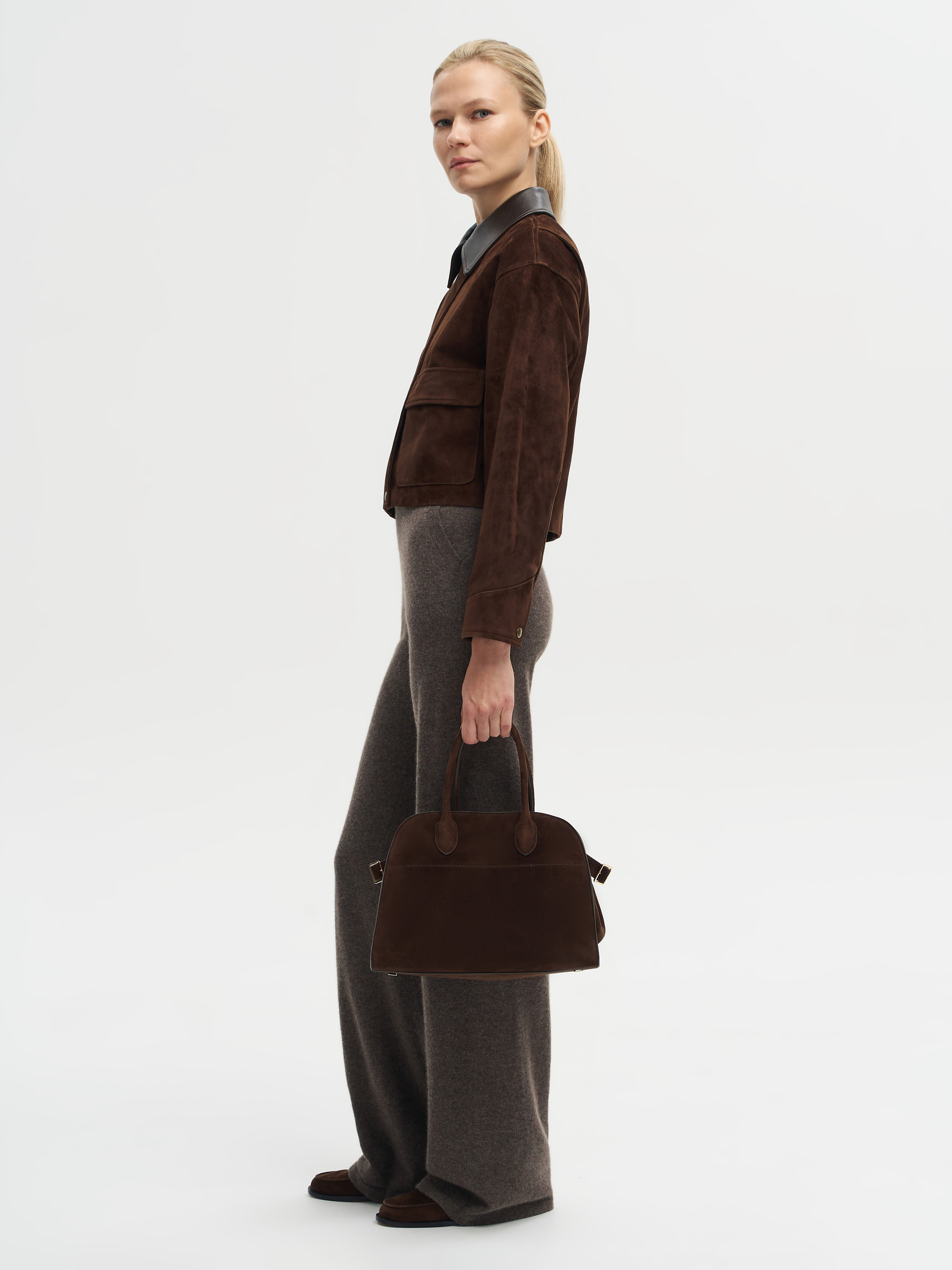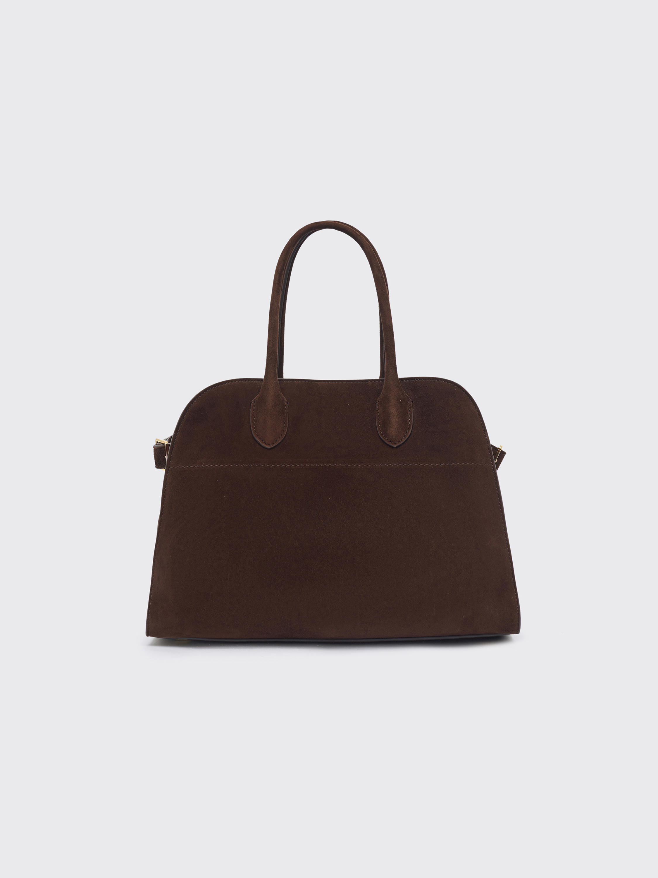 Сумка из мягкой замши глубокого шоколадного оттенка сочетает лаконичный силуэт и практичность. Бархатистая фактура подчеркивает насыщенность цвета и сохраняет форму, а длинные ручки позволяют носить модель в руке или на предплечье. Внутри сумка продумана так же тщательно, как и снаружи: светлая подкладка подчеркивает аккуратность отделки, а внутренние карманы позволяют удобно разместить необходимые мелочи. Вместительная форма делает сумку удобной для повседневного использования, а универсальный дизайн легко вписывается как в городские комплекты, так и в более собранные образы.