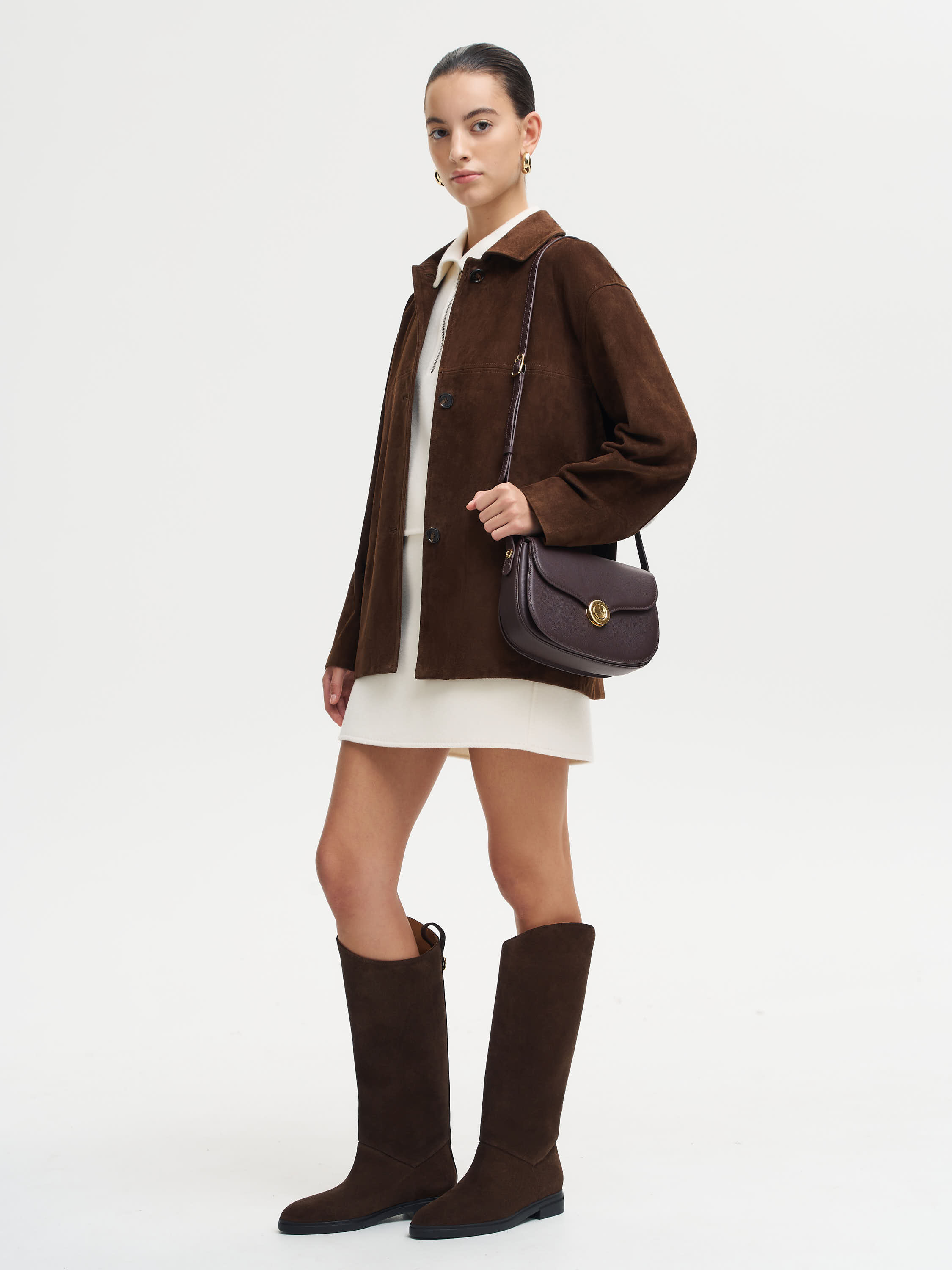 Сумка из натуральной кожи с мягкой зернистой фактурой. Компактная форма с плавными линиями и закругленным клапаном делает модель универсальной и лаконичной. Фурнитура в золотистом оттенке добавляет выразительности, а регулируемый ремень позволяет носить сумку на плече или через плечо. Внутри — отделение с подкладкой, карман на молнии и слот для мелочей. Практичная модель на каждый день, в которой сочетаются сдержанность и элегантность.
