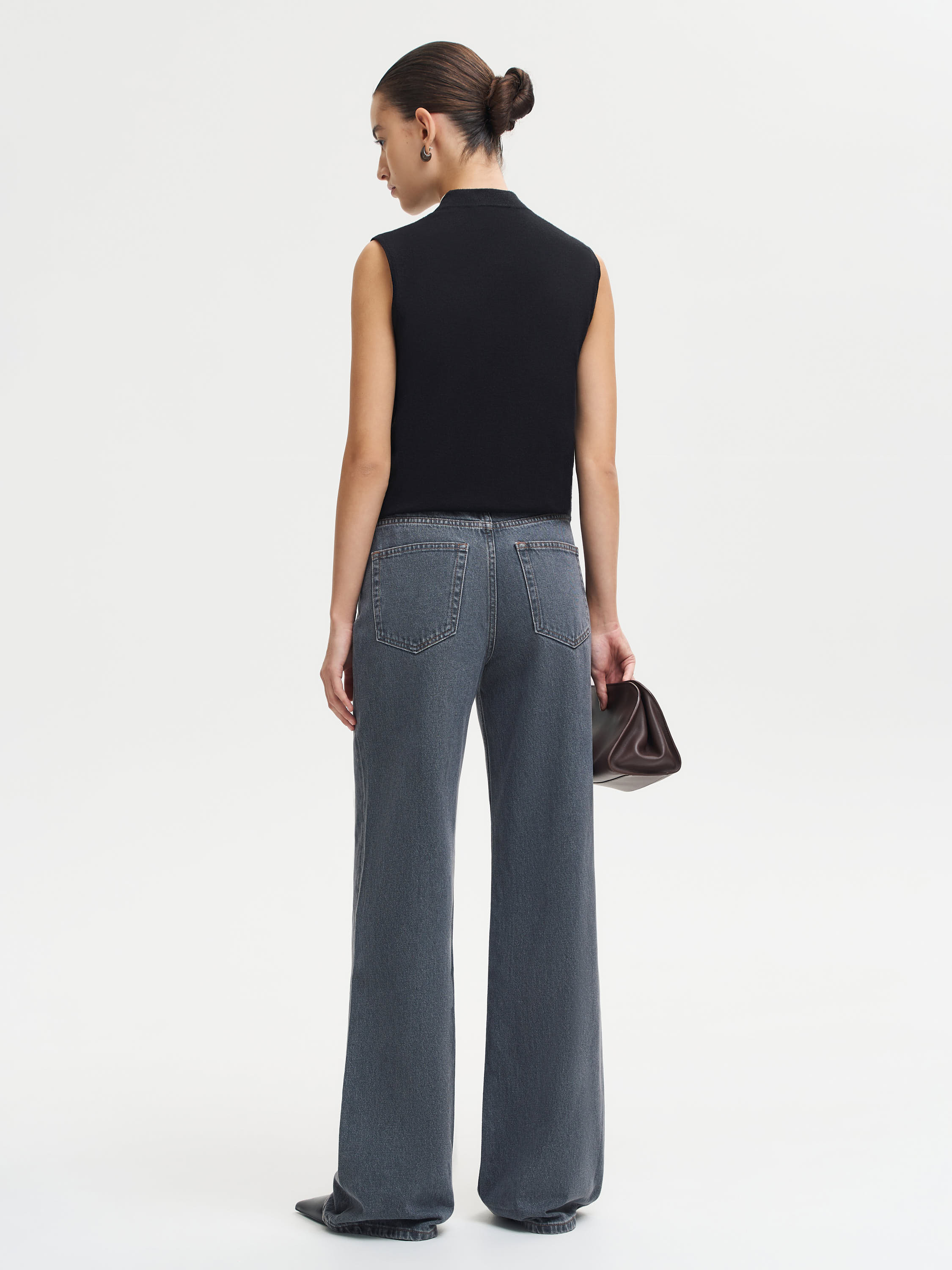 Джинсы из 100% хлопка с прямым удлиненным силуэтом и мягкой посадкой на талии. Плотный деним держит форму, при этом остается комфортным в движении. Натуральная ткань дышит, имеет деликатную фактуру и со временем становится только мягче. Характерные особенности материала — небольшая усадка и естественная миграция цвета после стирок, что придает изделию живой денимовый характер. Джинсы легко вписываются в базовый гардероб: они сочетаются с лаконичными футболками, рубашками, жакетами и трикотажем, создавая современный, сбалансированный силуэт.
