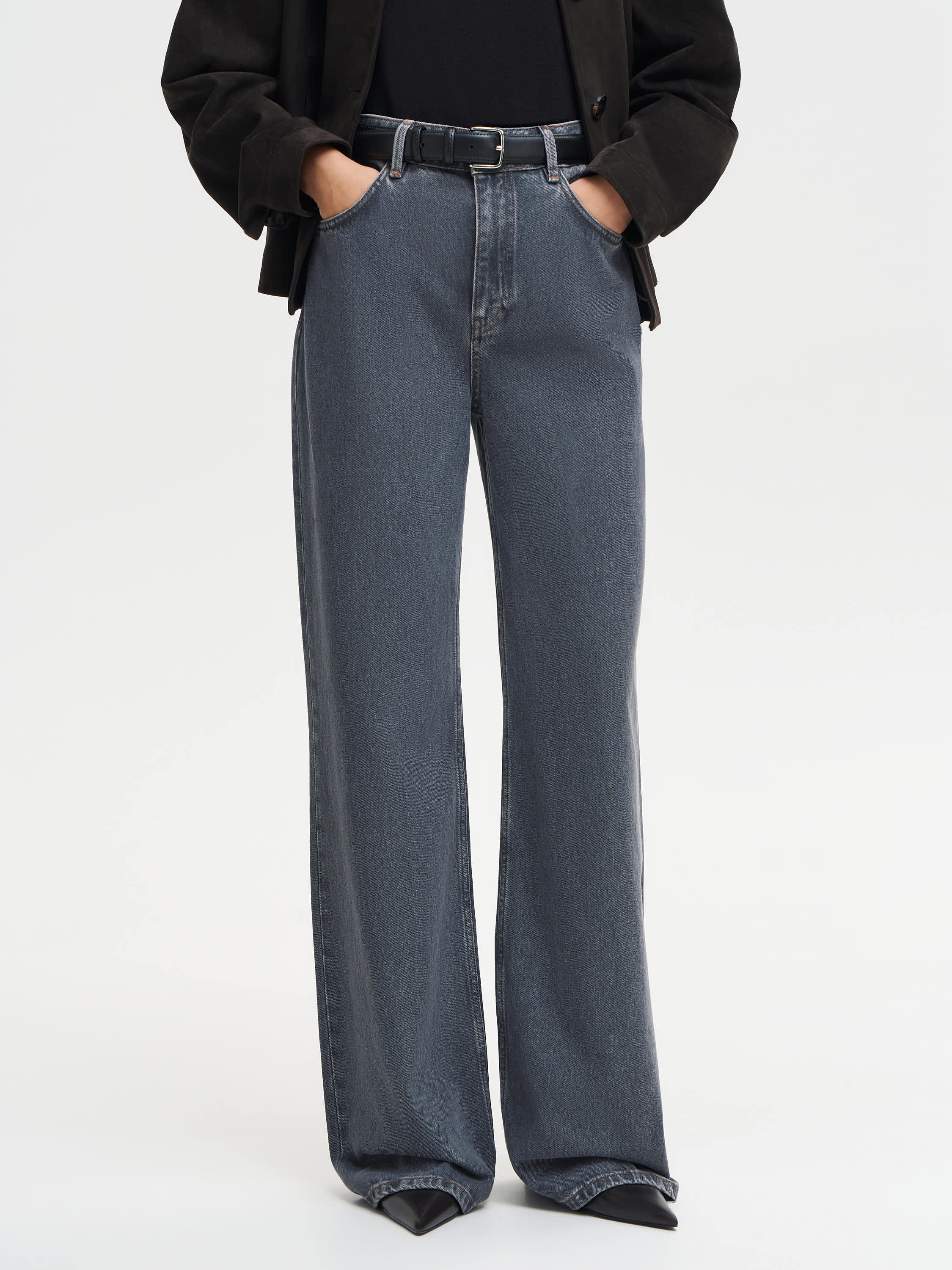 Джинсы из 100% хлопка с прямым удлиненным силуэтом и мягкой посадкой на талии. Плотный деним держит форму, при этом остается комфортным в движении. Натуральная ткань дышит, имеет деликатную фактуру и со временем становится только мягче. Характерные особенности материала — небольшая усадка и естественная миграция цвета после стирок, что придает изделию живой денимовый характер. Джинсы легко вписываются в базовый гардероб: они сочетаются с лаконичными футболками, рубашками, жакетами и трикотажем, создавая современный, сбалансированный силуэт.