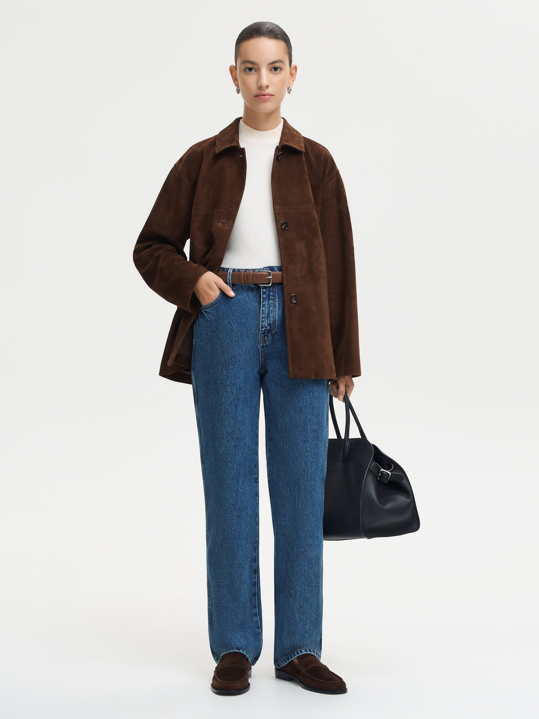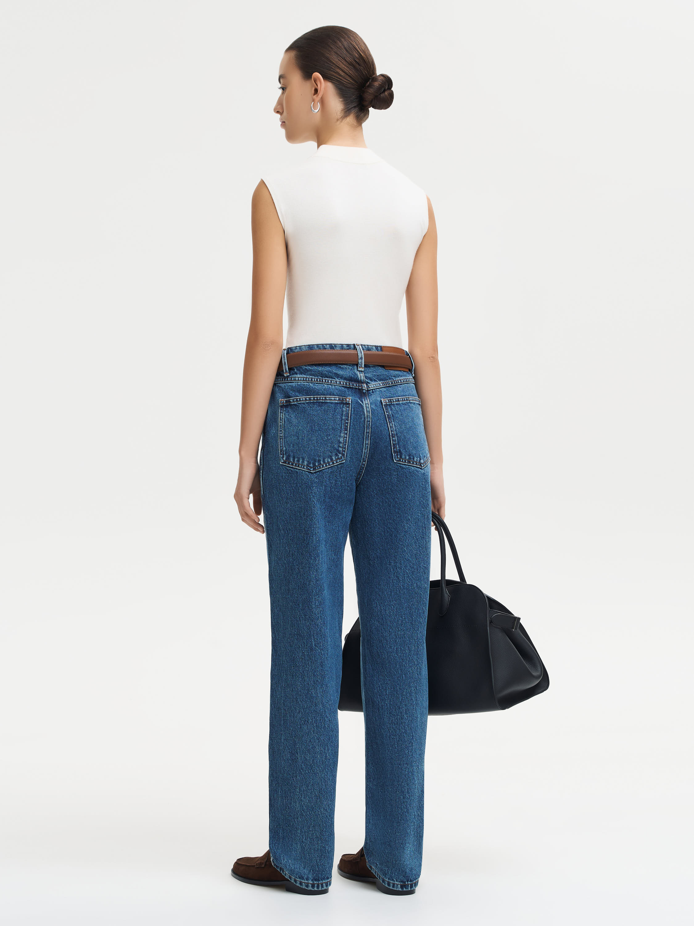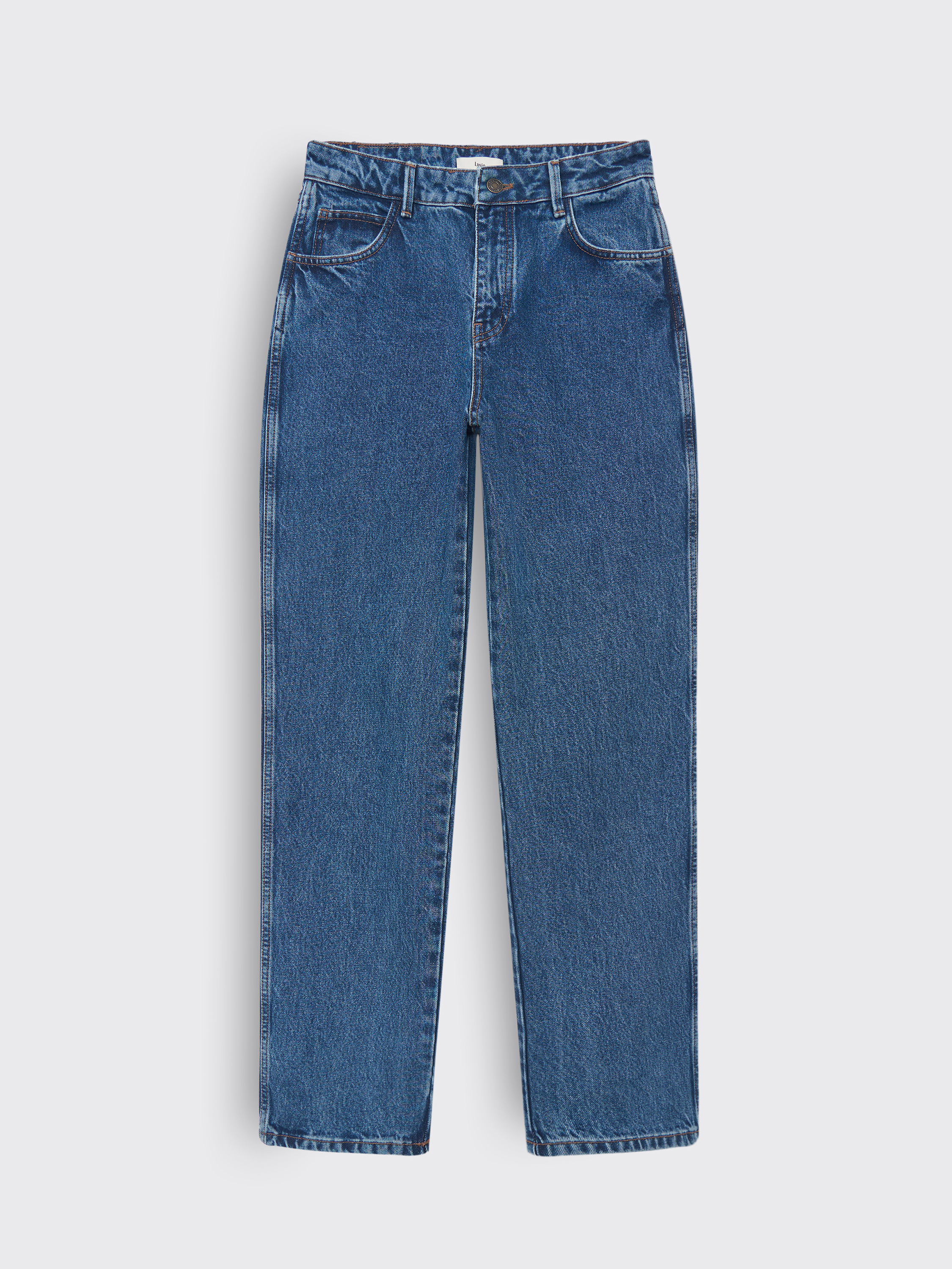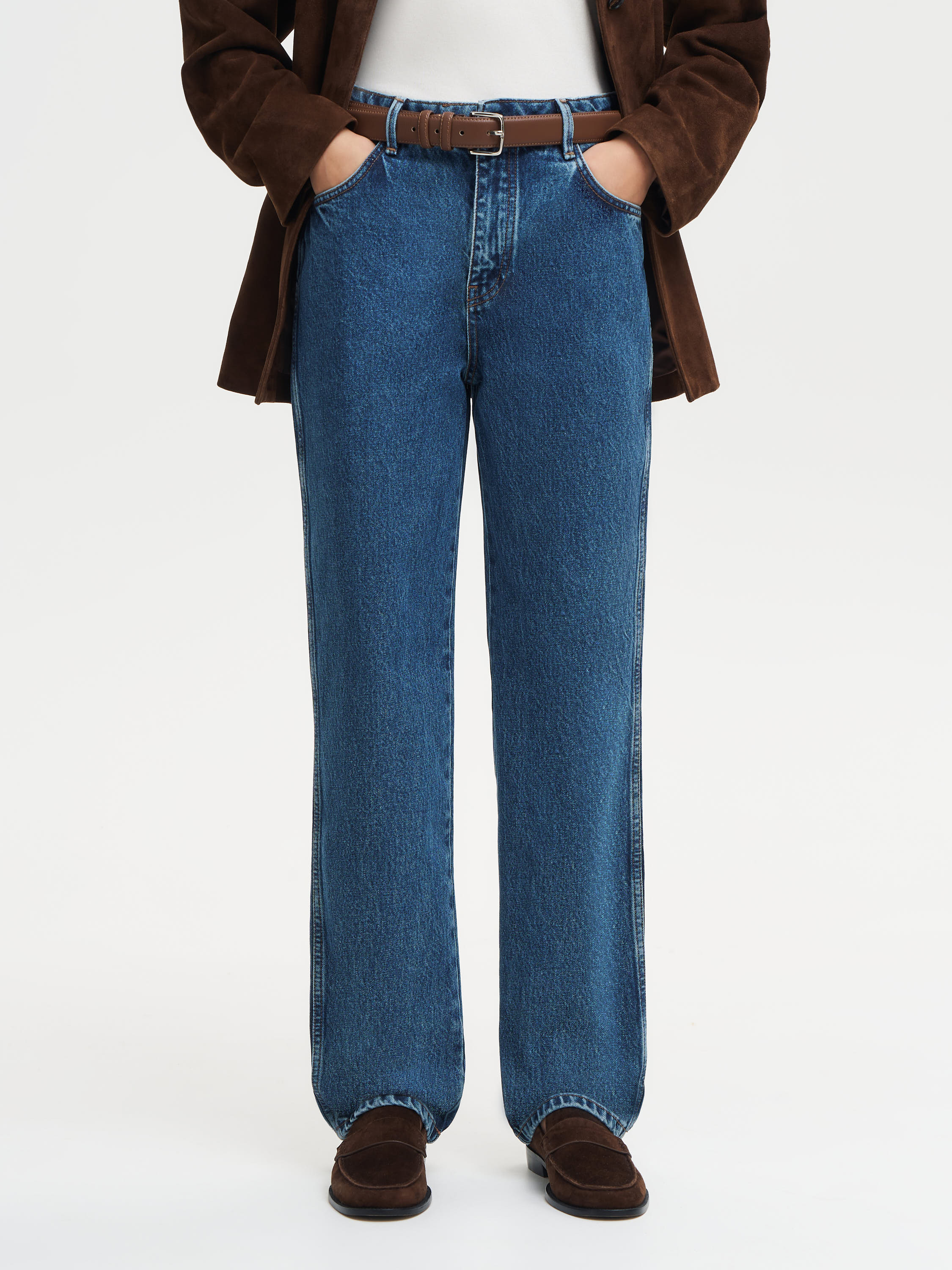 Джинсы из 100% хлопка выполнены из плотного денима с выраженной фактурой. Натуральное волокно обеспечивает комфорт, воздухопроницаемость и устойчивость к износу, при этом не вызывает раздражения и подходит для чувствительной кожи. Материал сохраняет форму и цвет, но требует деликатного ухода: хлопок может давать легкую усадку и склонен к миграции цвета. Прямой крой и чистые линии силуэта делают модель универсальной — такие джинсы легко вписываются в повседневные образы, сочетаясь с рубашками, жакетами или объемным трикотажем.