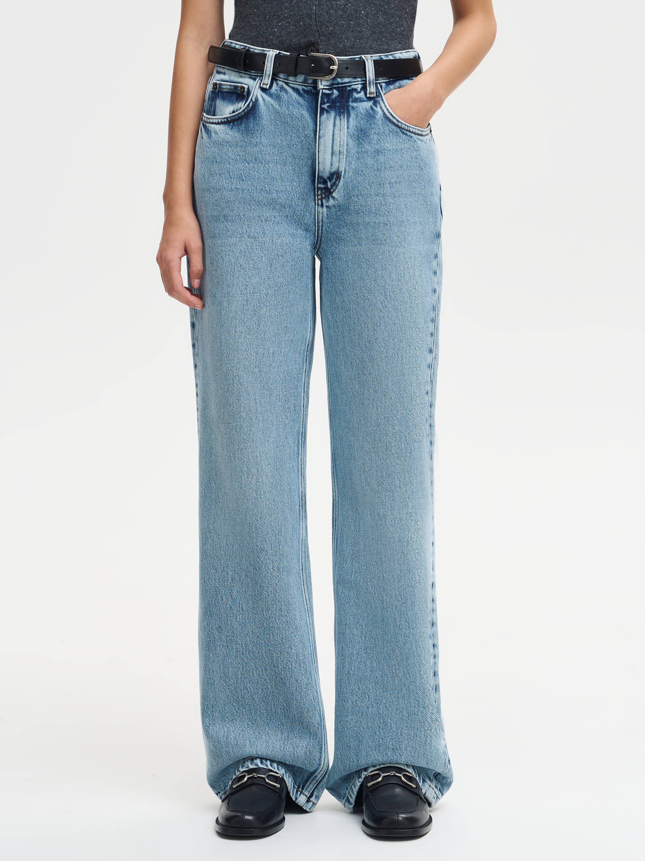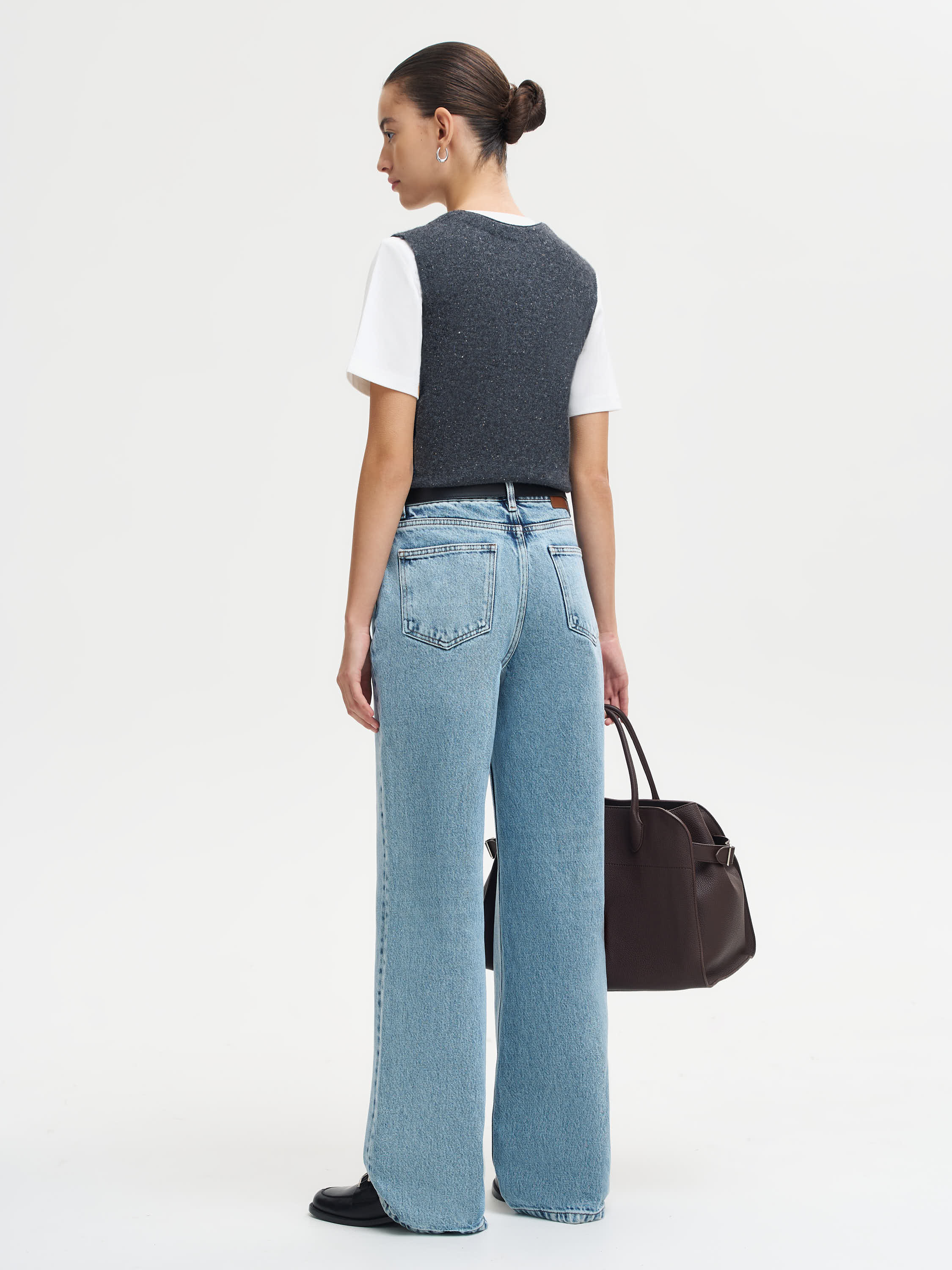 Джинсы из 100% хлопка сочетают комфорт, прочность и естественную пластичность материала. Плотный деним приятен к телу, обеспечивает воздухопроницаемость и устойчивость формы в течение дня. Благодаря структуре волокон ткань сохраняет тепло, оставаясь легкой и дышащей. Прямой крой с высокой посадкой визуально вытягивает силуэт и подчеркивает талию. Это базовая модель, которая вписывается в повседневный ритм и сочетается с рубашками, жилетами, футболками и жакетами, создавая чистые, сбалансированные образы.