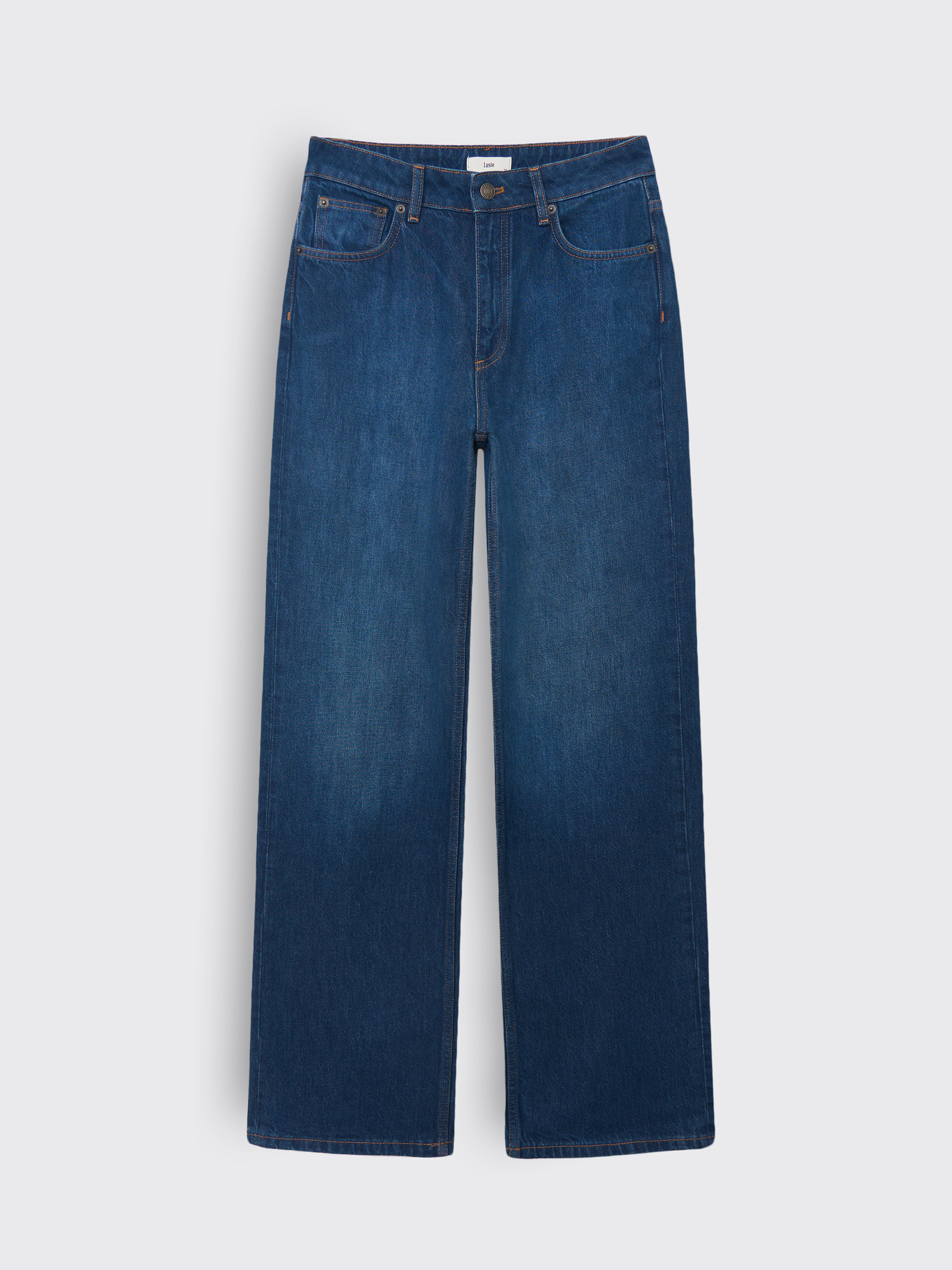 Джинсы выполнены из плотного денима Candiani плотностью 13 Oz — материала, созданного на итальянской фабрике в Милане, известной своим вниманием к качеству и экологичному производству. Хлопок соответствует международному стандарту OCS (Organic Content Standard), который подтверждает его органическое происхождение и бережное выращивание без использования пестицидов. Прямой крой и классическая посадка обеспечивают удобство и универсальность, а лаконичный дизайн делает модель базовой основой гардероба. Джинсы легко сочетаются как с объемными свитерами и пальто, так и с лаконичными рубашками или жакетами.