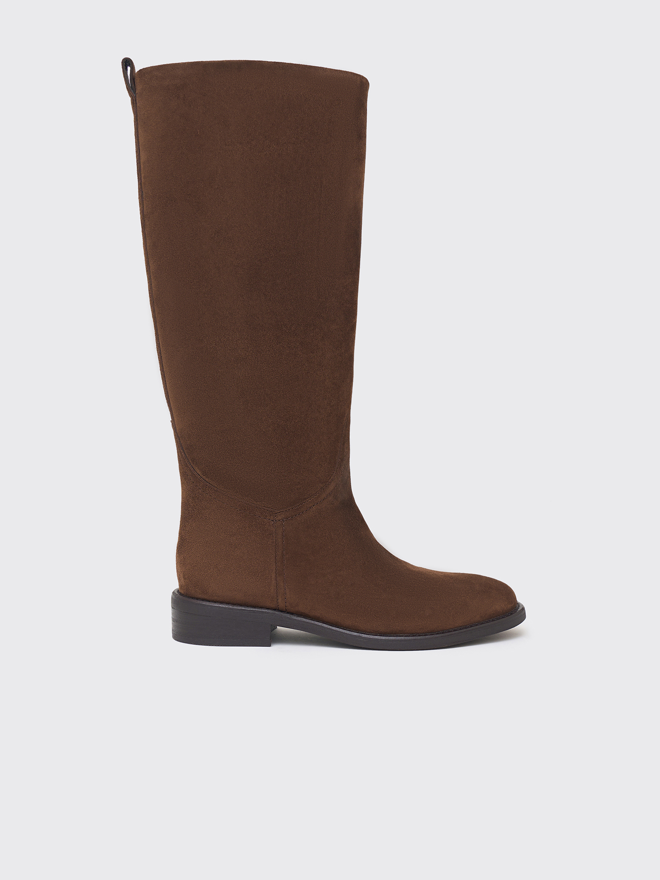 Сапоги из мягкой натуральной замши с бархатистой фактурой. Чистый лаконичный силуэт, слегка закругленный мыс и плотная подошва подчеркивают сдержанную элегантность модели. Внутренняя отделка выполнена из натуральной кожи, обеспечивая комфорт в носке и сохранение формы. Универсальная пара, которая одинаково гармонично смотрится с платьями, юбками и укороченными брюками.