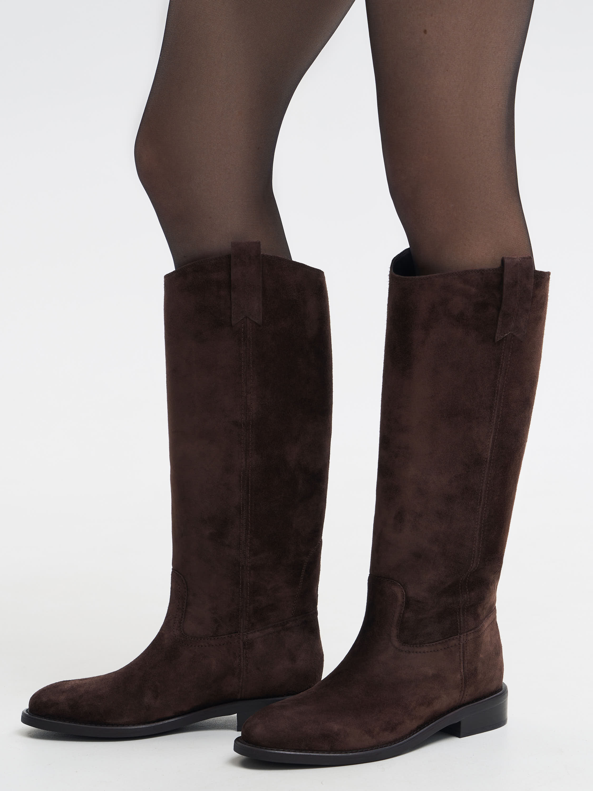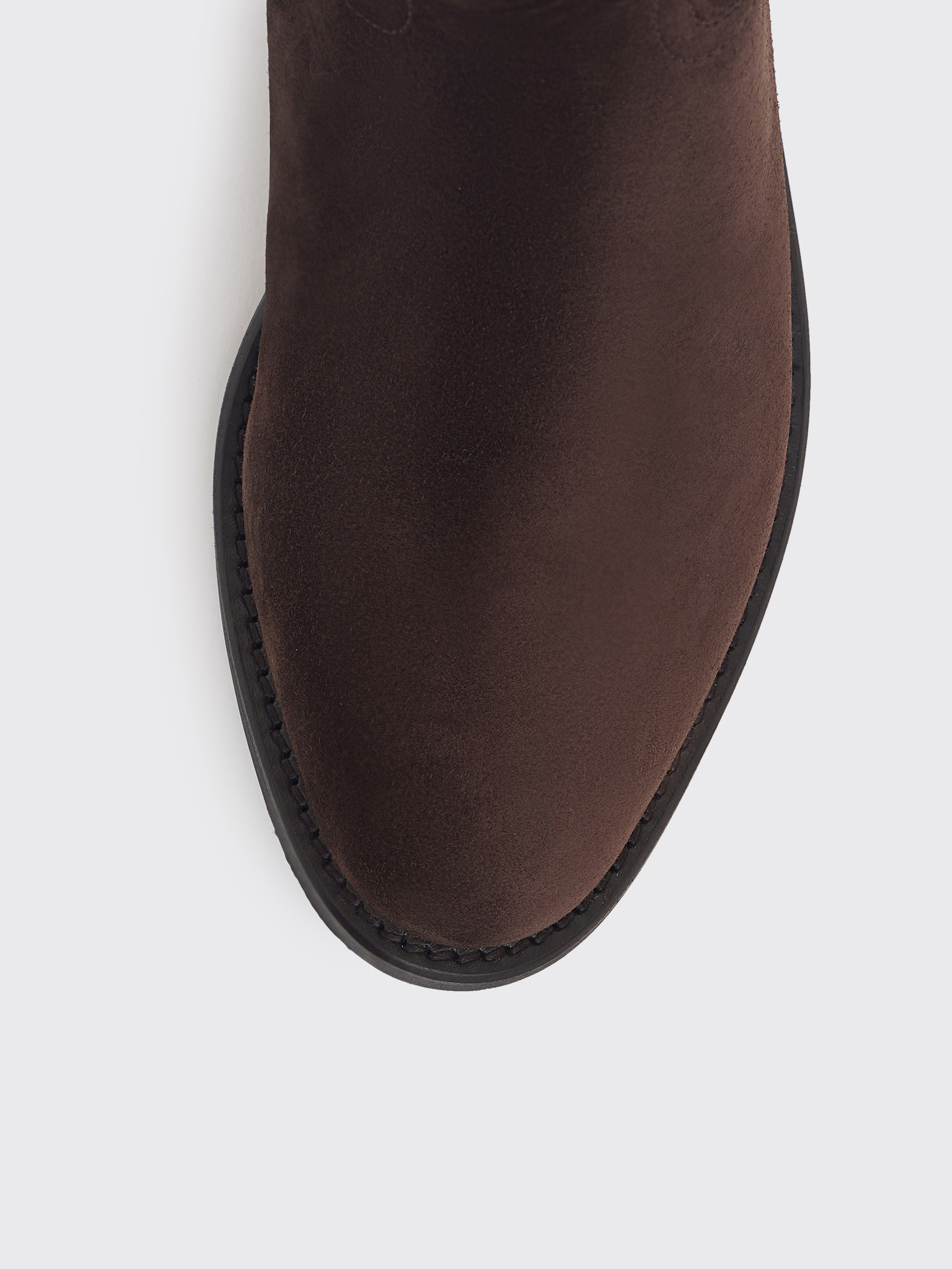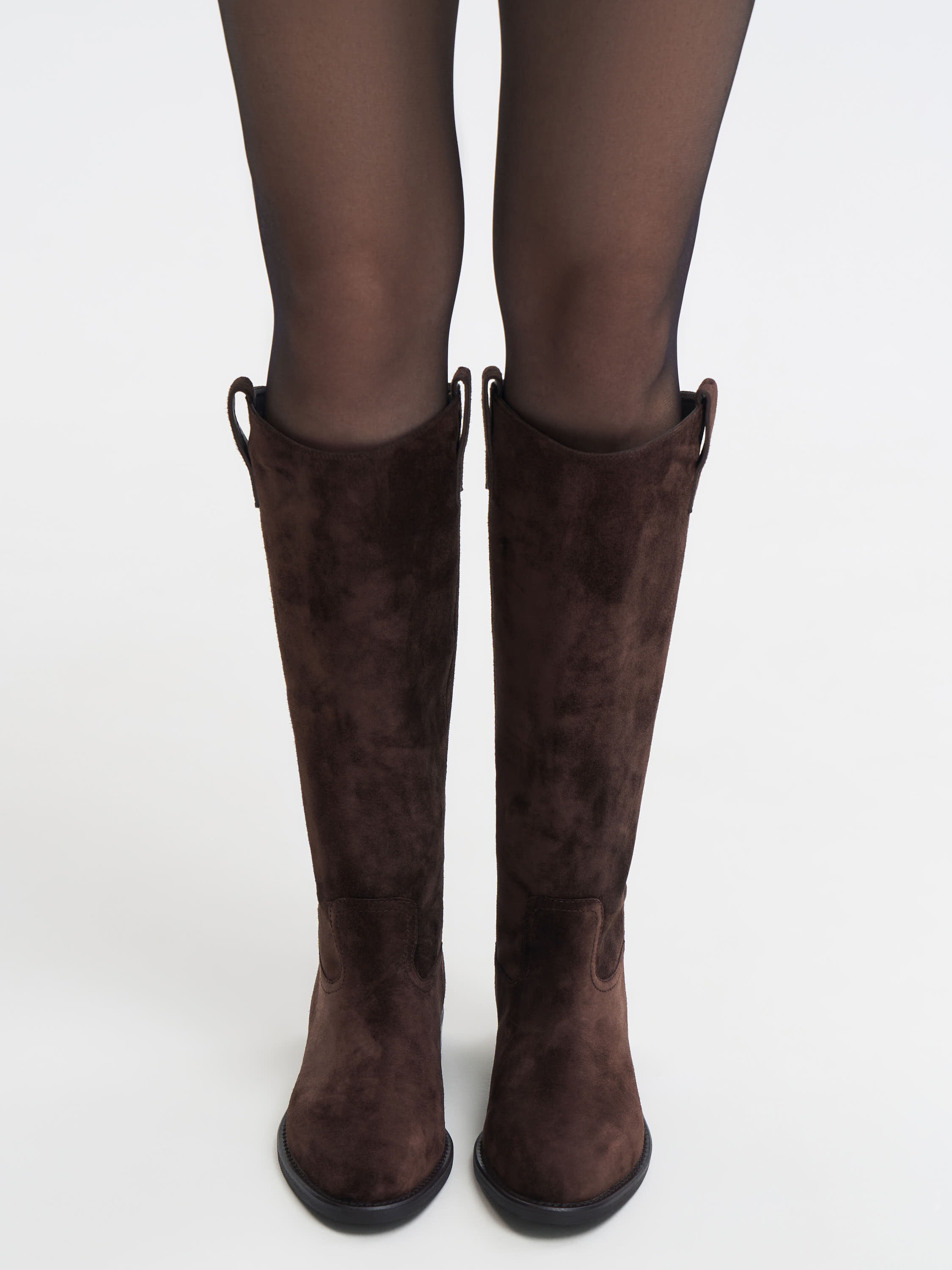 Сапоги из мягкой натуральной замши с бархатистой поверхностью и благородным оттенком. Модель выполнена в лаконичном силуэте с округлым носом и плотной подошвой. Внутренняя отделка из натуральной кожи обеспечивает комфорт и долговечность пары. Универсальный дизайн подходит как к платьям и юбкам, так и к брюкам, создавая сдержанные и элегантные образы на каждый день.
