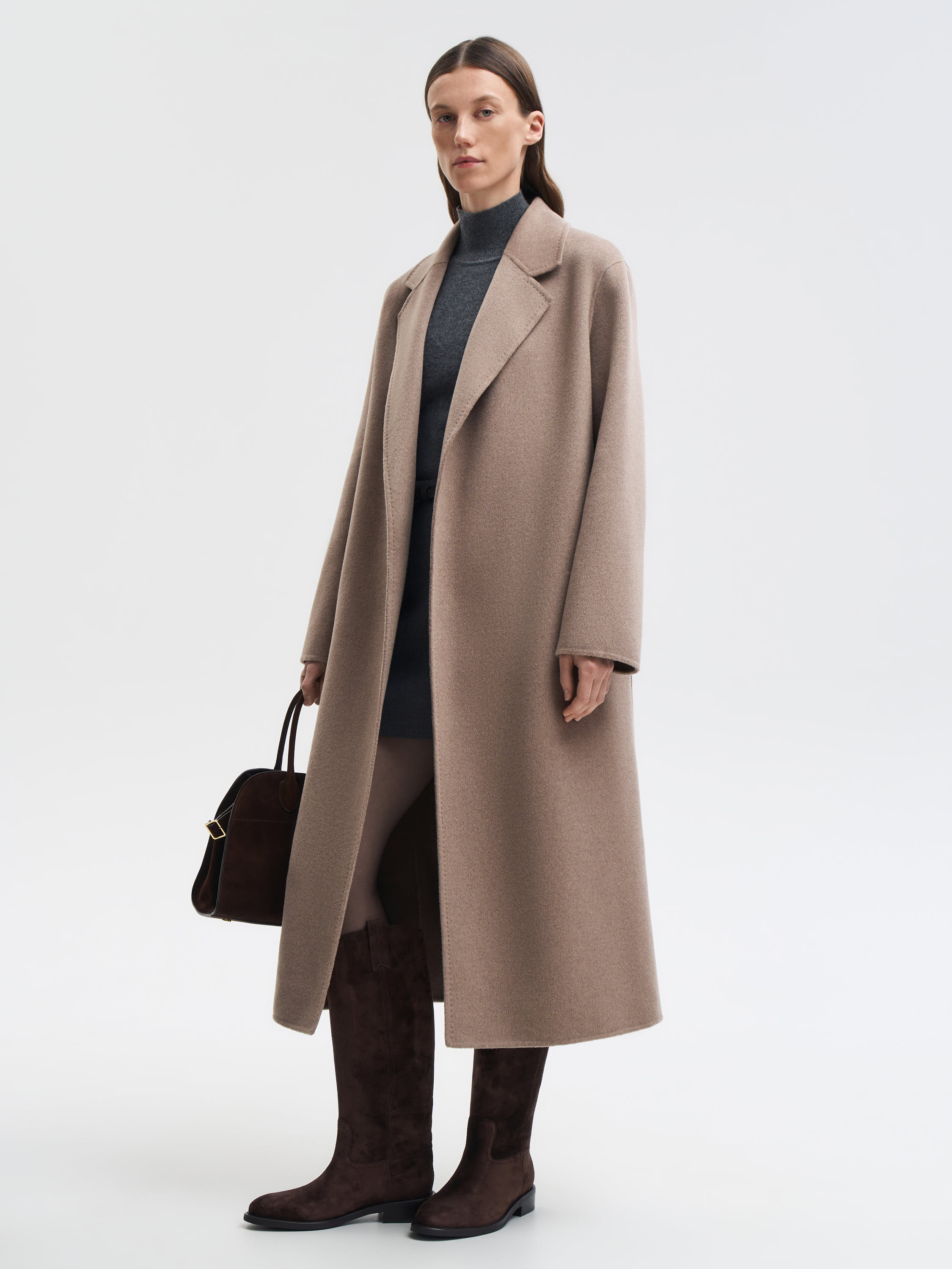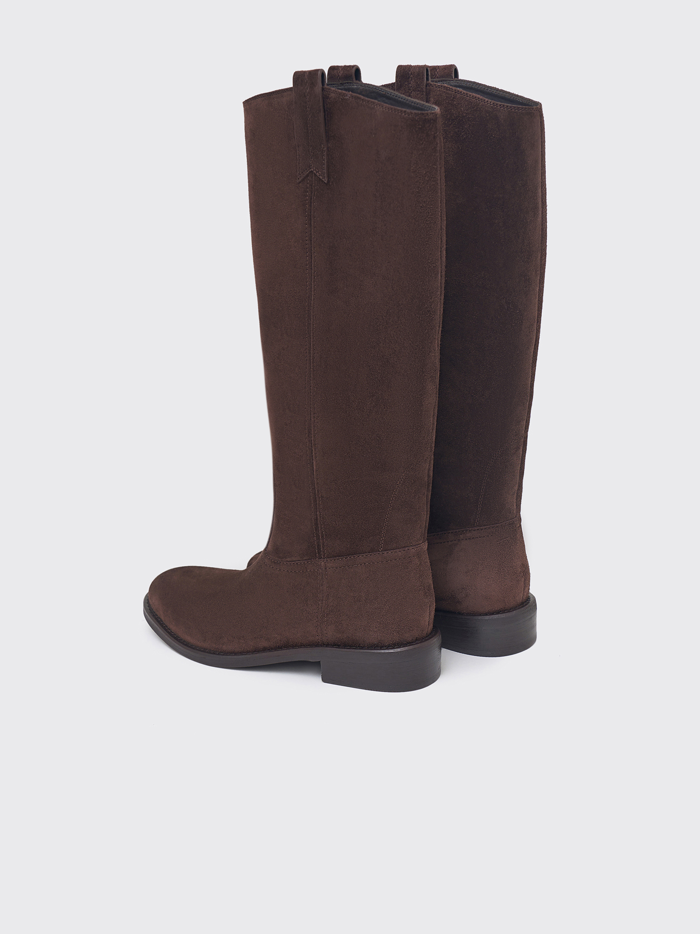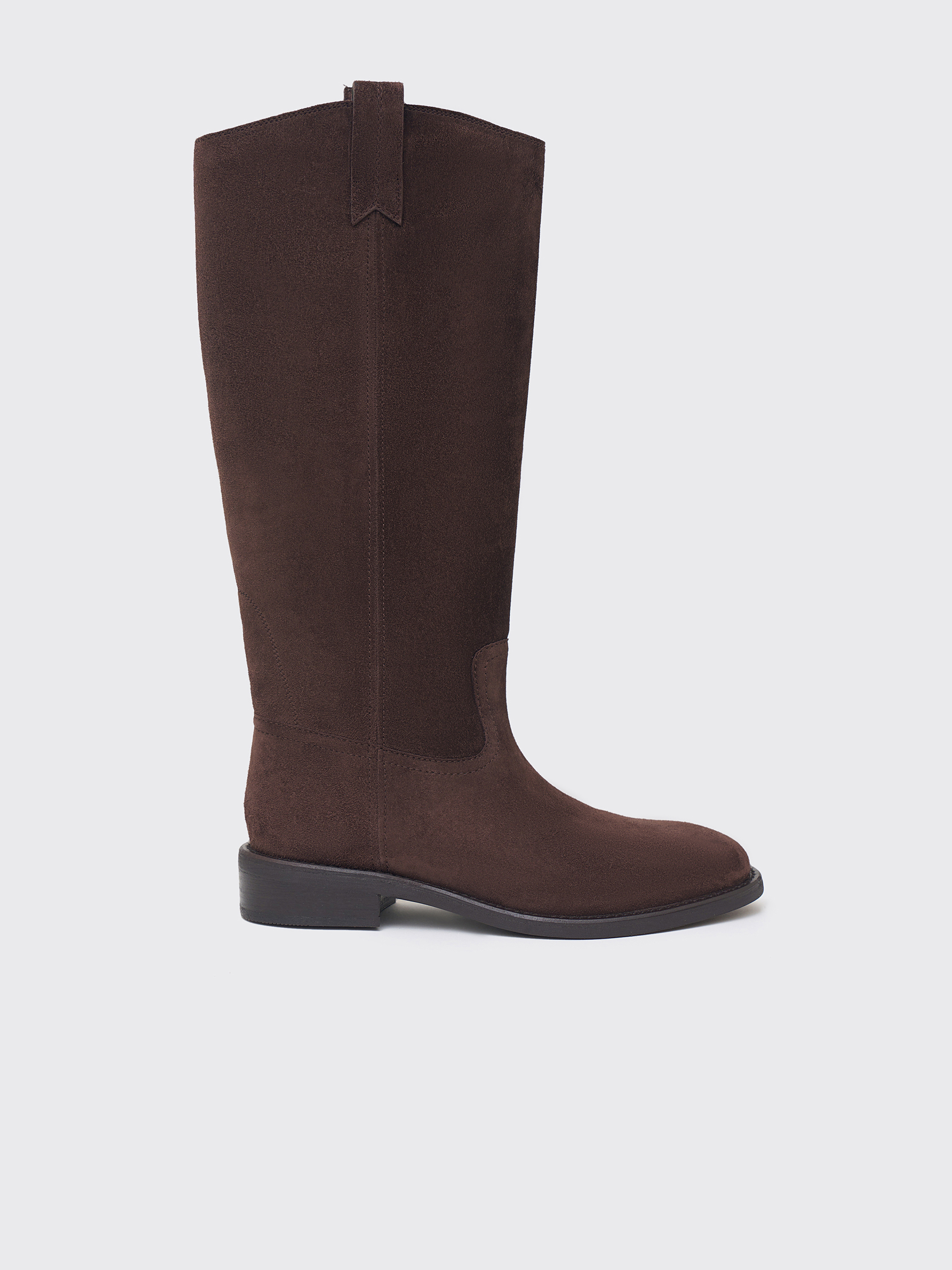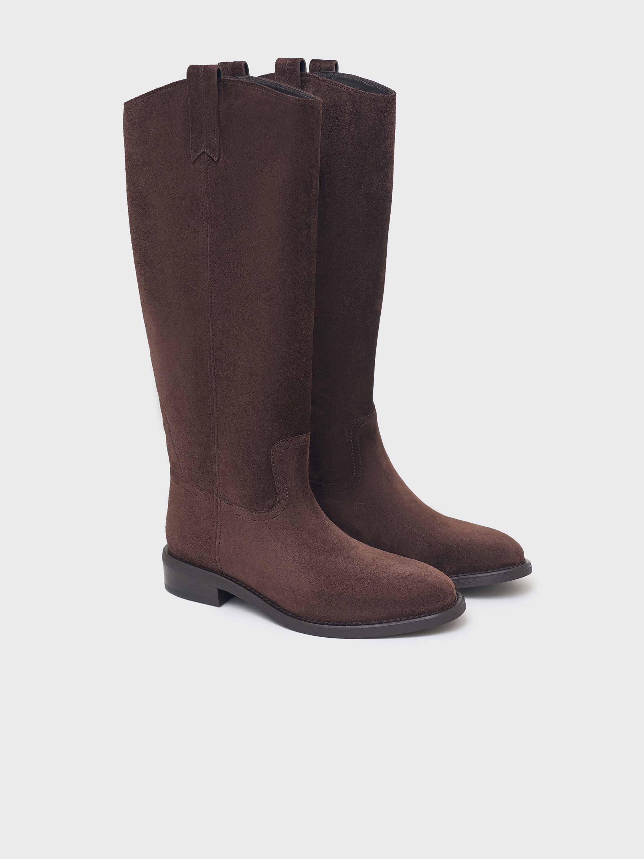 Сапоги из мягкой натуральной замши с бархатистой поверхностью и благородным оттенком. Модель выполнена в лаконичном силуэте с округлым носом и плотной подошвой. Внутренняя отделка из натуральной кожи обеспечивает комфорт и долговечность пары. Универсальный дизайн подходит как к платьям и юбкам, так и к брюкам, создавая сдержанные и элегантные образы на каждый день.