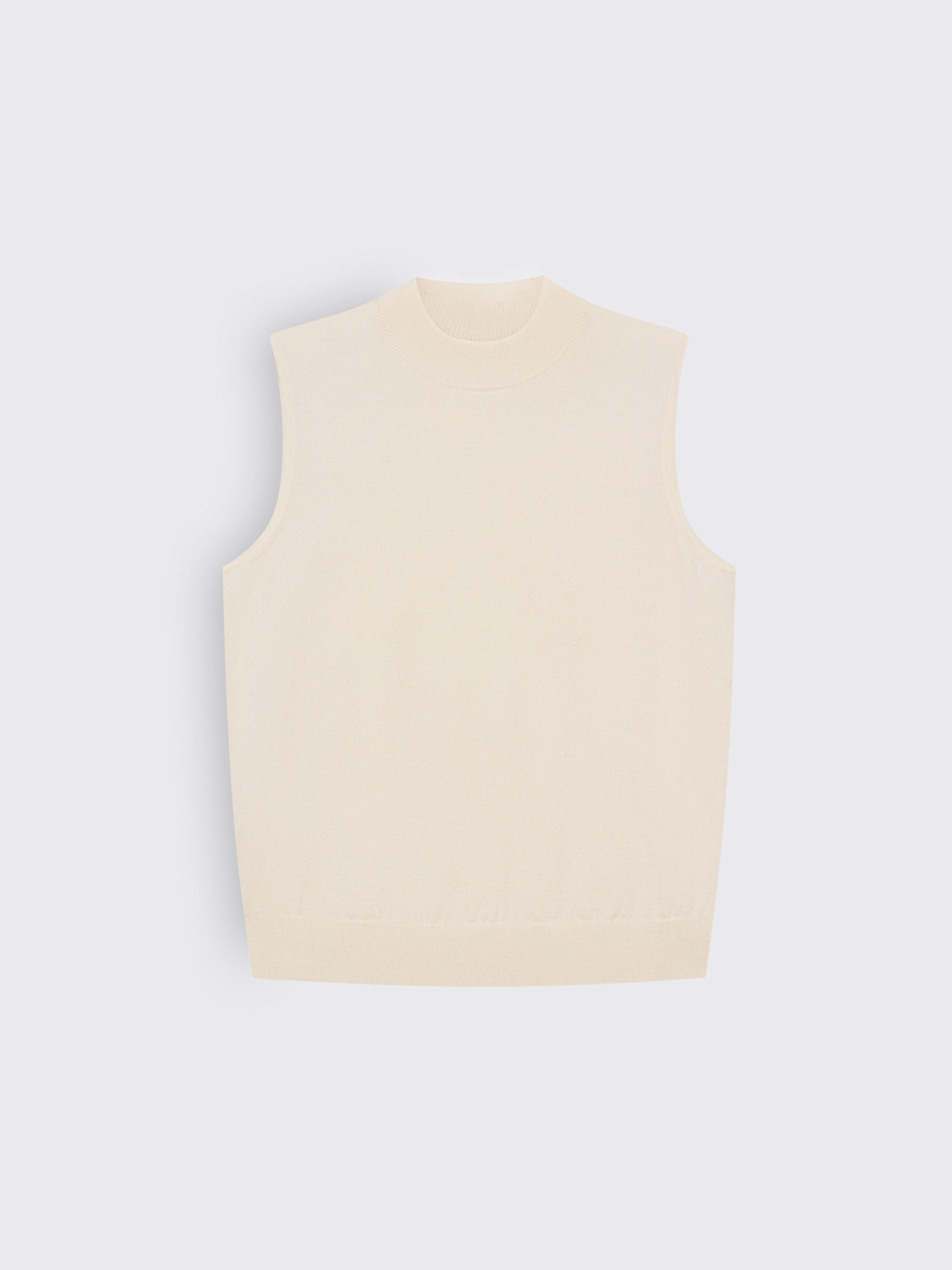 Лаконичная водолазка без рукавов из тонкого трикотажа на основе мериносовой шерсти и шелка. Материал мягкий, пластичный, с деликатным матовым блеском и приятной прохладой шелка, комфортно прилегает к телу, сохраняя форму в течение дня. Минимальный крой с аккуратным высоким воротом подчеркивает линию шеи, а универсальный силуэт уместен и в деловых, и в повседневных комплектах. Подходит для теплого сезона и как базовый слой в многослойных комбинациях.