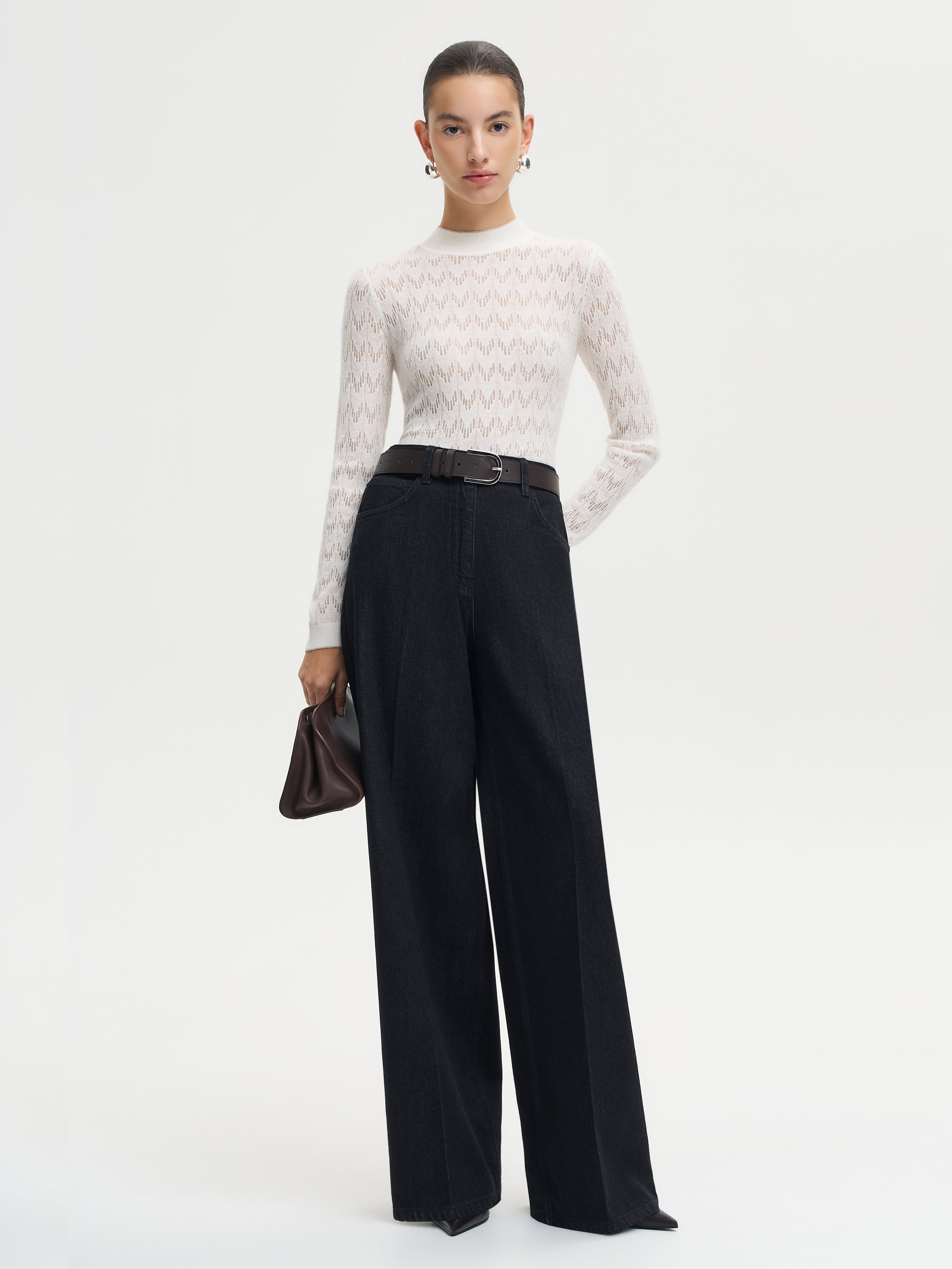 Водолазка из смесовой пряжи с добавлением шерсти и альпаки сочетает мягкость, легкость и комфорт. Материал приятен к телу, сохраняет тепло и не утяжеляет силуэт. Ажурная вязка формирует выразительную фактуру, которая добавляет вещи тактильности и делает ее визуально объемнее. Лаконичный крой с высоким воротом и аккуратной линией плеч подчеркивает универсальность модели. Такая водолазка станет базой для многослойных сочетаний — ее можно носить под жакеты, жилеты или кардиганы, создавая продуманные, пластичные образы на каждый день.