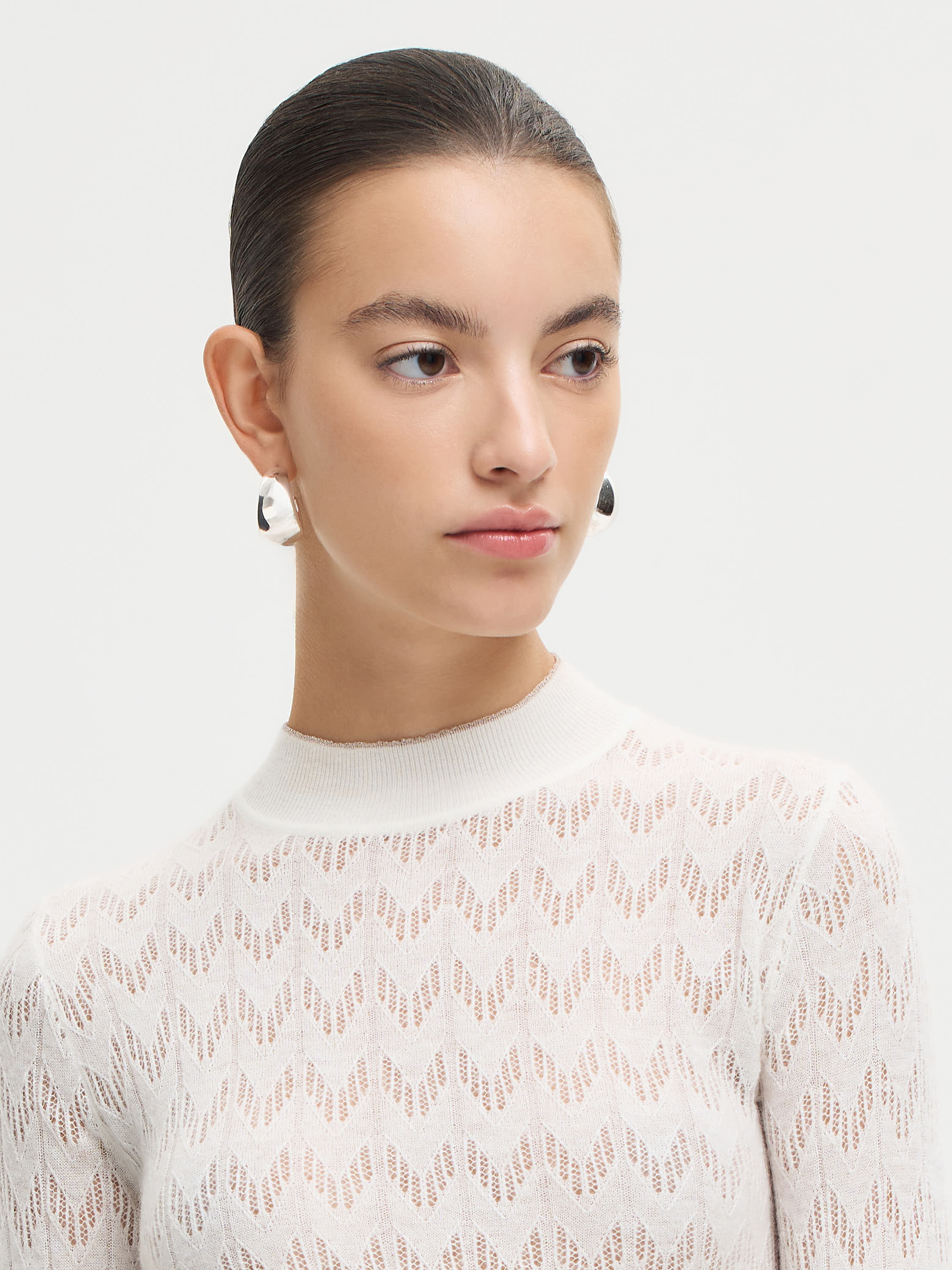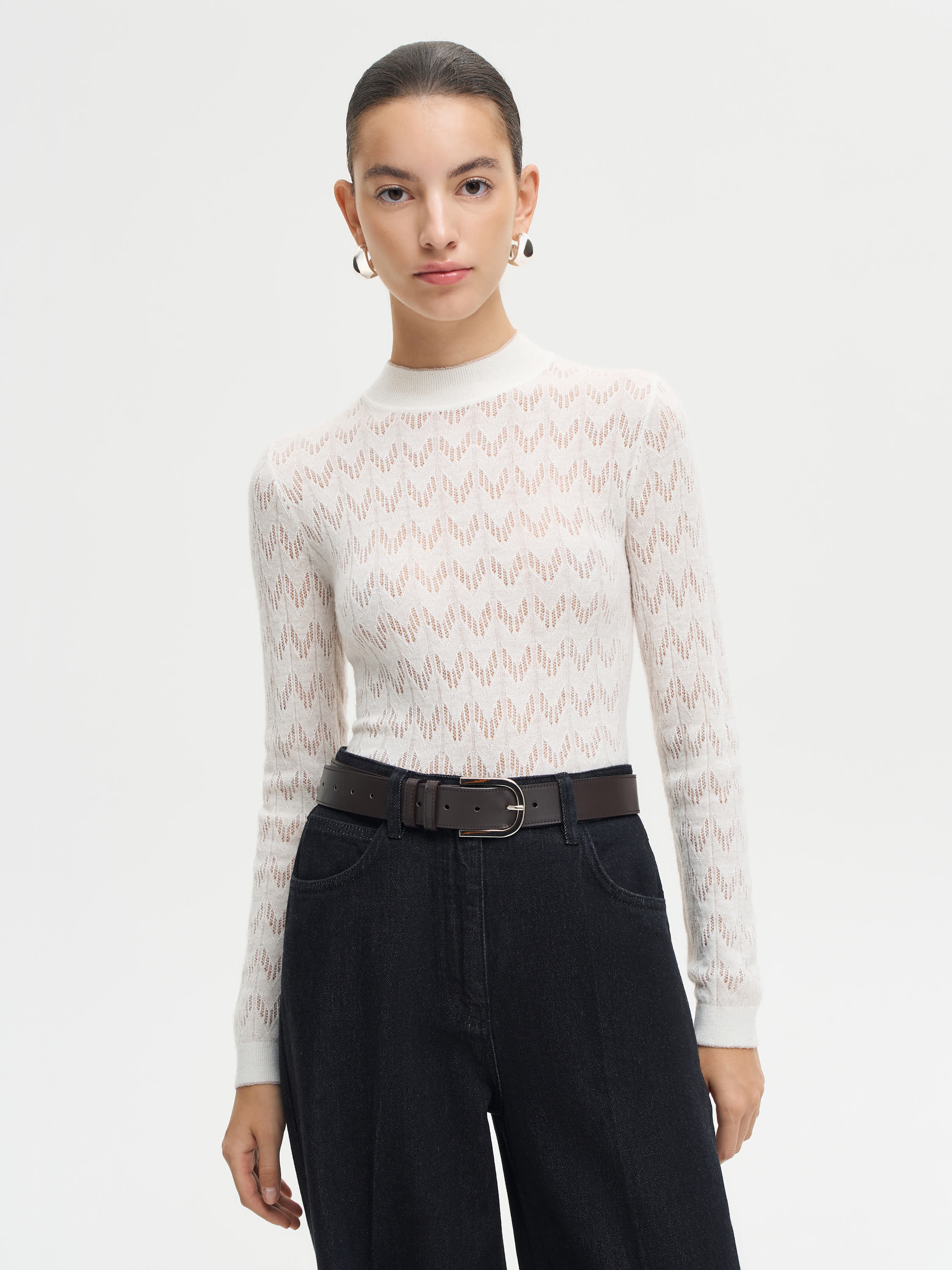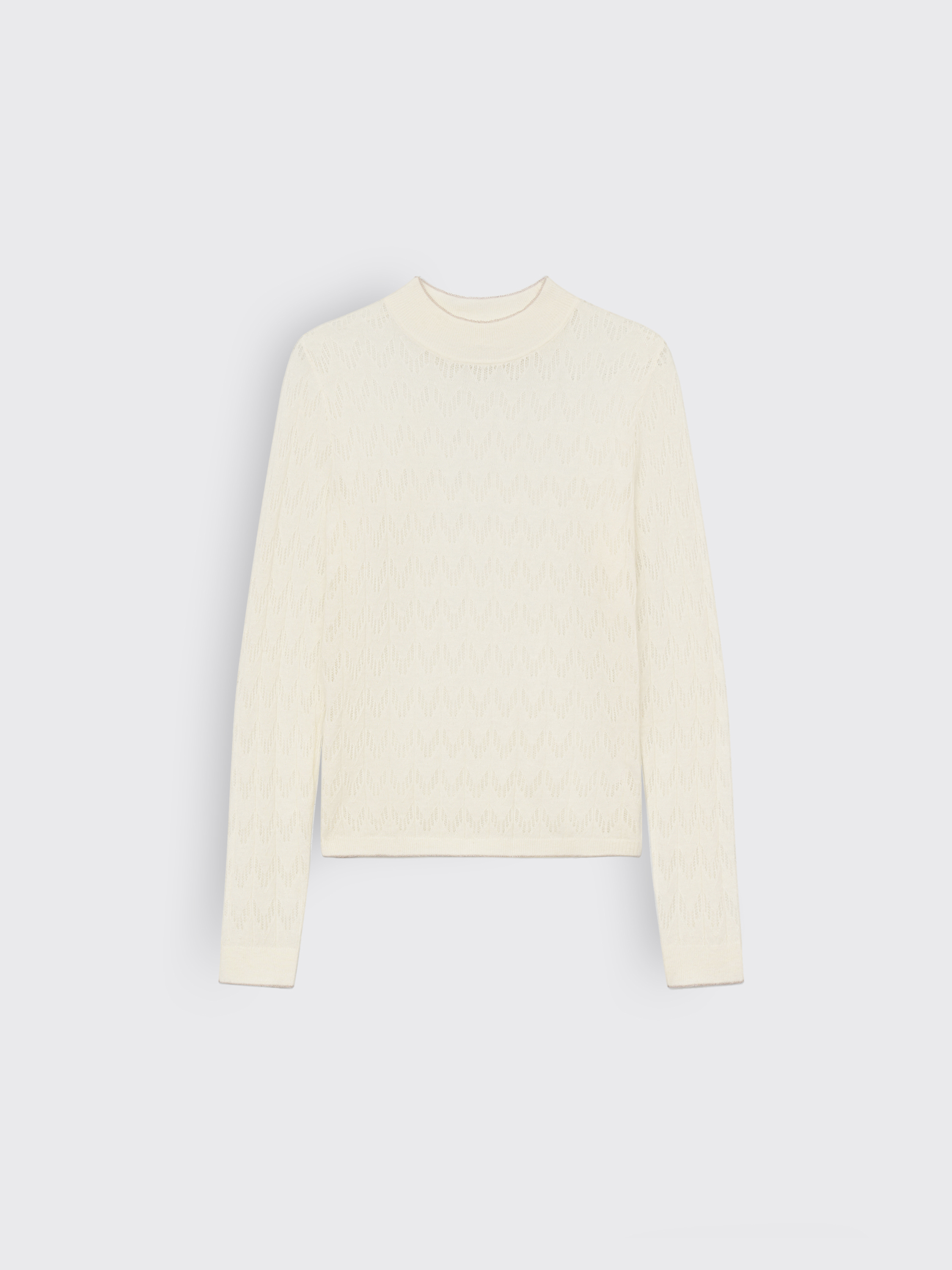 Водолазка из смесовой пряжи с добавлением шерсти и альпаки сочетает мягкость, легкость и комфорт. Материал приятен к телу, сохраняет тепло и не утяжеляет силуэт. Ажурная вязка формирует выразительную фактуру, которая добавляет вещи тактильности и делает ее визуально объемнее. Лаконичный крой с высоким воротом и аккуратной линией плеч подчеркивает универсальность модели. Такая водолазка станет базой для многослойных сочетаний — ее можно носить под жакеты, жилеты или кардиганы, создавая продуманные, пластичные образы на каждый день.