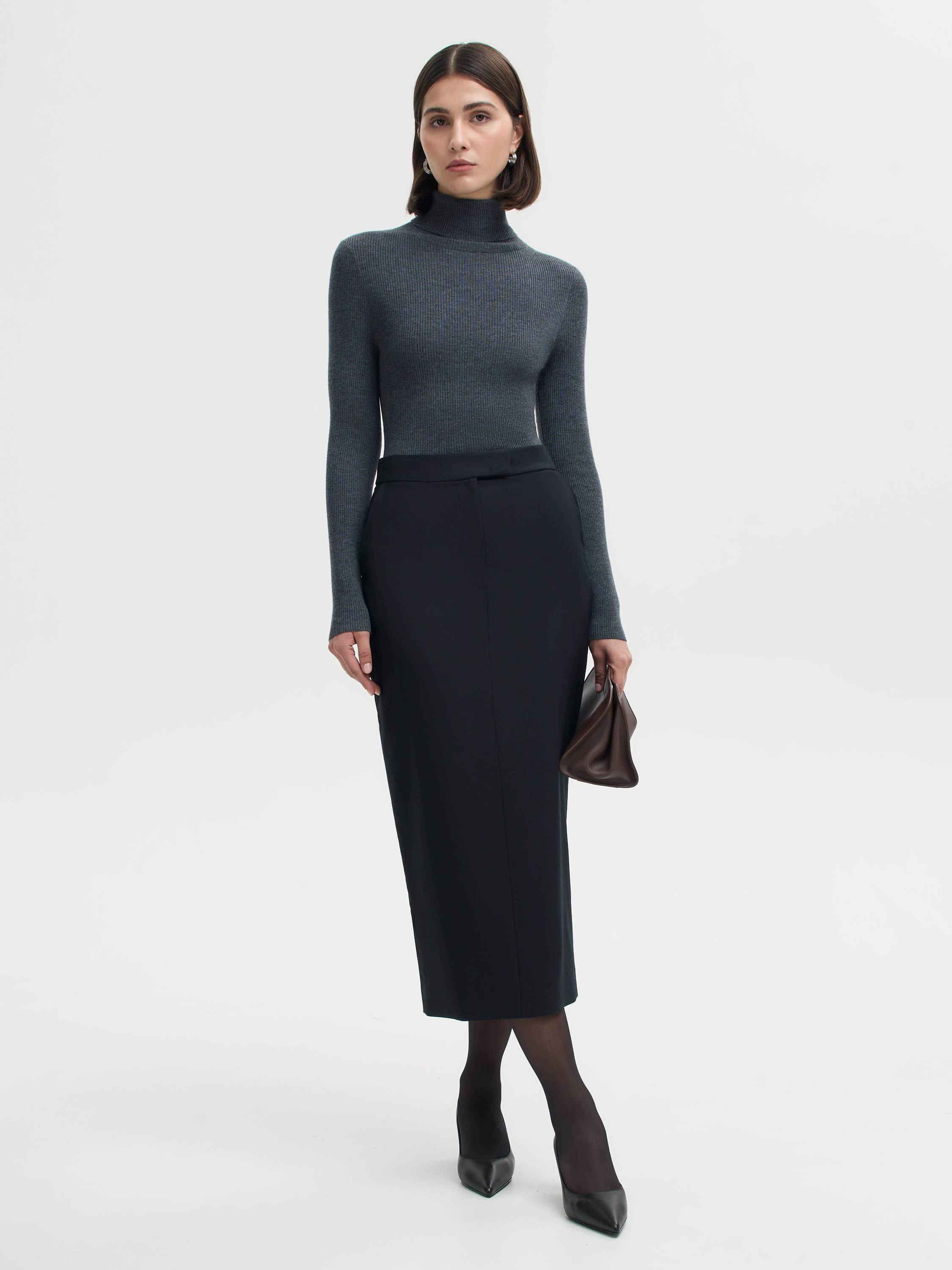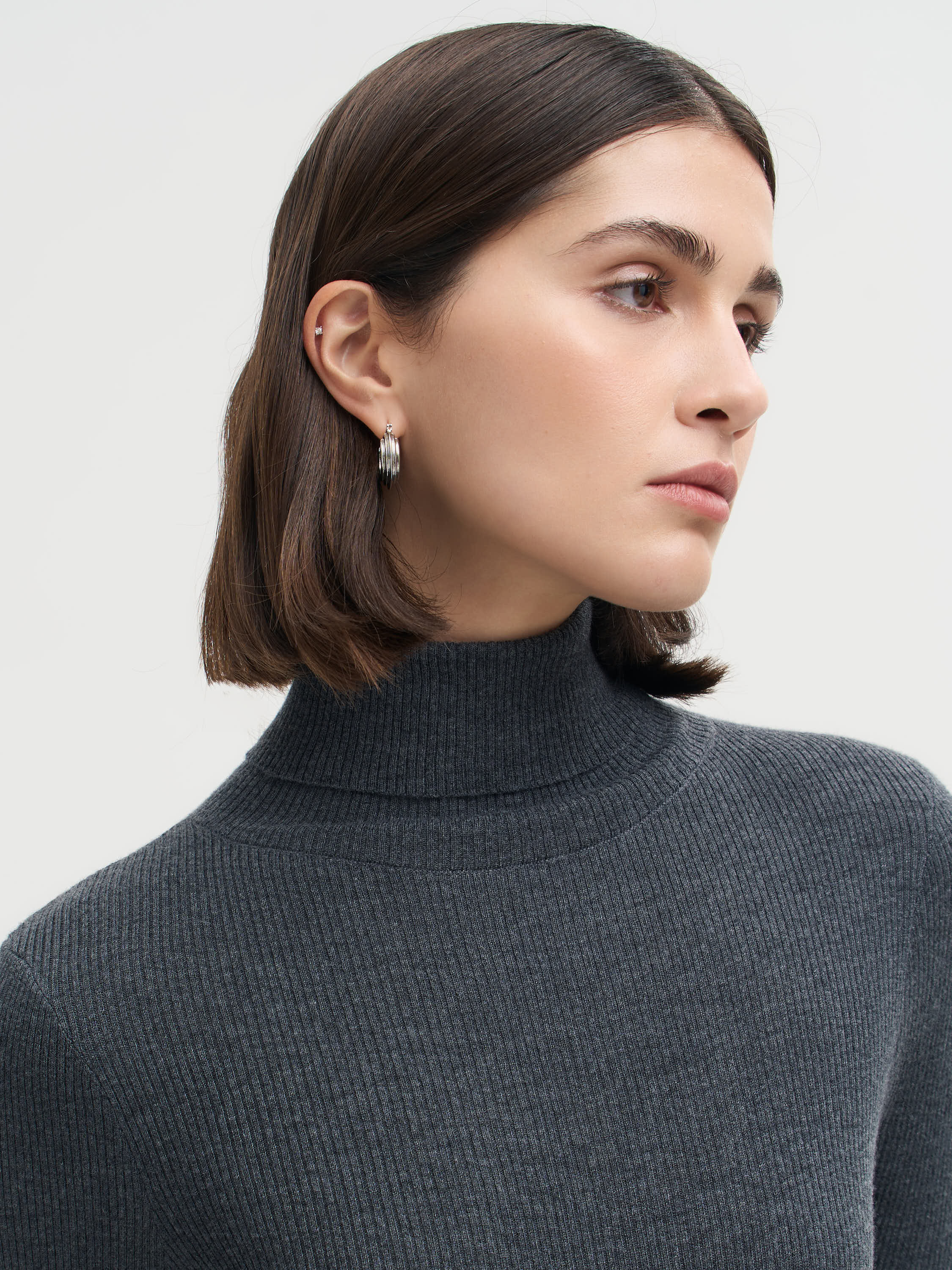 Водолазка выполнена из шерсти мериноса — мягкого, дышащего и комфортного материала, который сохраняет тепло и при этом не перегружает. Тонкий трикотаж пластично ложится по фигуре, подчеркивая силуэт и оставаясь приятным к телу в течение всего дня. Модель с прямым кроем, длинными рукавами и высоким воротником-гольфом, который держит форму и добавляет образу собранности. Рельефная вязка придает ткани фактурность и визуальную глубину. Лаконичный дизайн делает водолазку универсальной: ее можно носить как базовый слой под жакеты и пальто или как самостоятельный элемент в минималистичных комбинациях.
