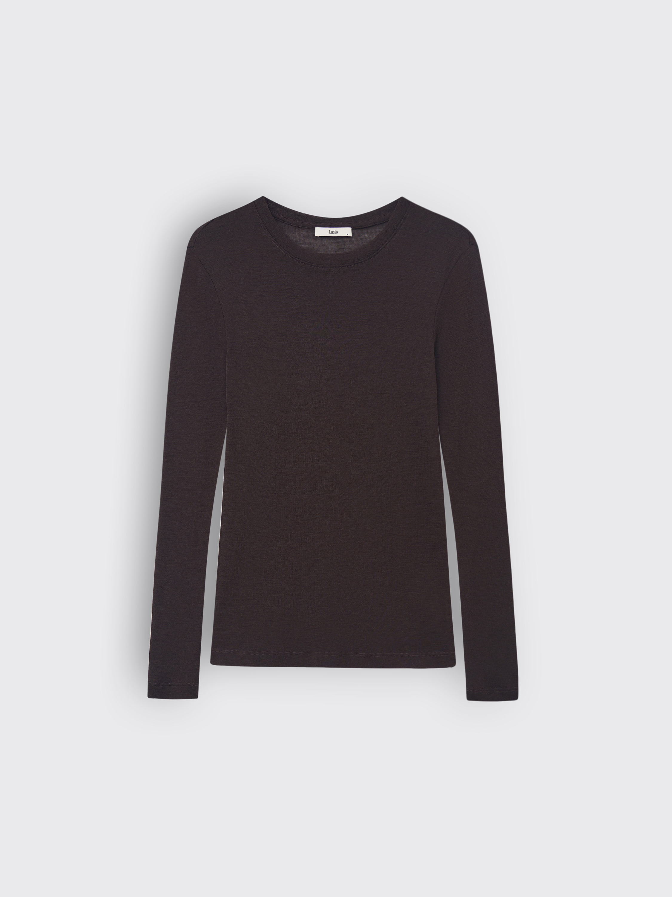 Лонгслив из тонкой шерсти с шелковистой текстурой и мягким прилеганием к телу. Тонкое эластичное полотно приятно на ощупь, хорошо дышит и сохраняет комфортное тепло. Приталенный силуэт подчеркивает фигуру, а лаконичный круглый вырез и длинные рукава придают модели универсальность. Благодаря пластичности ткани лонгслив можно носить как самостоятельный элемент, так и в многослойных сочетаниях — под жакет, жилет или платье-комбинацию. Идеален для создания выверенных, минималистичных образов на каждый день.