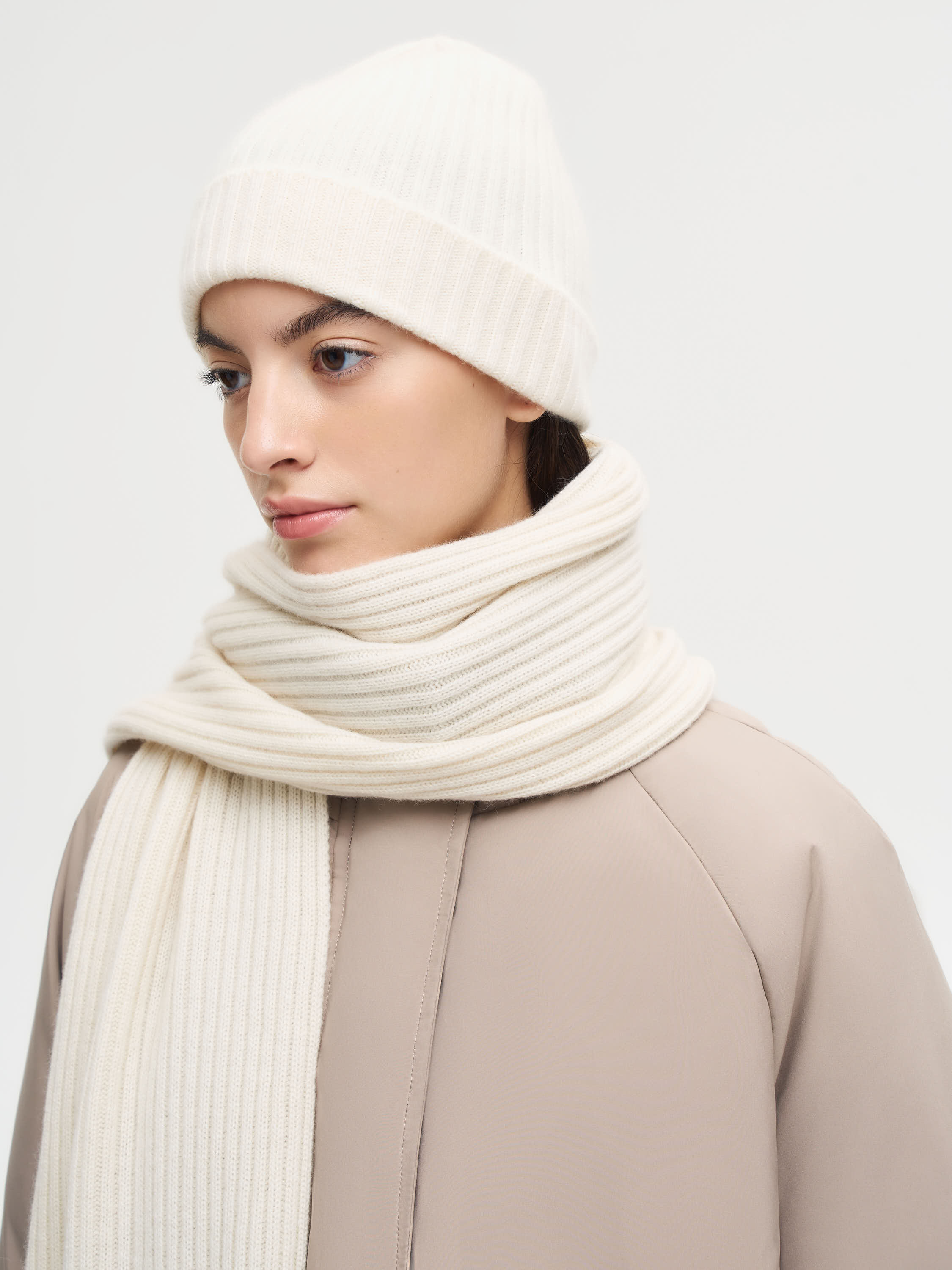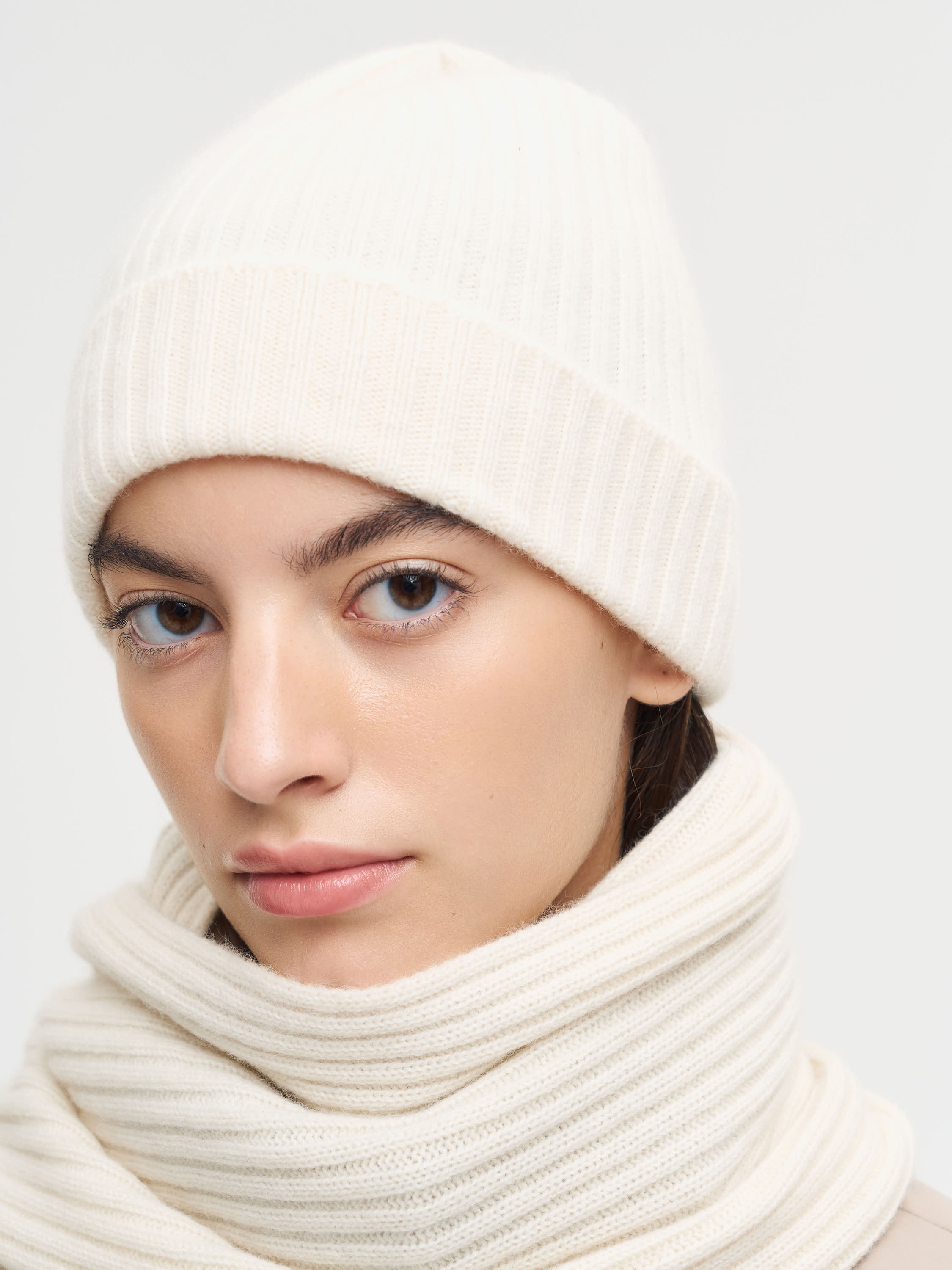 Шапка из кашемира с мягкой фактурой и деликатным теплом. Плотная резинка обеспечивает эластичность и комфортную посадку, а отворот добавляет объема и акцентирует форму. Материал дышащий и легкий, при этом хорошо сохраняет тепло в прохладный сезон. Лаконичный дизайн делает модель универсальной: она легко вписывается как в повседневные комплекты, так и в более собранные образы с пальто и трикотажем.