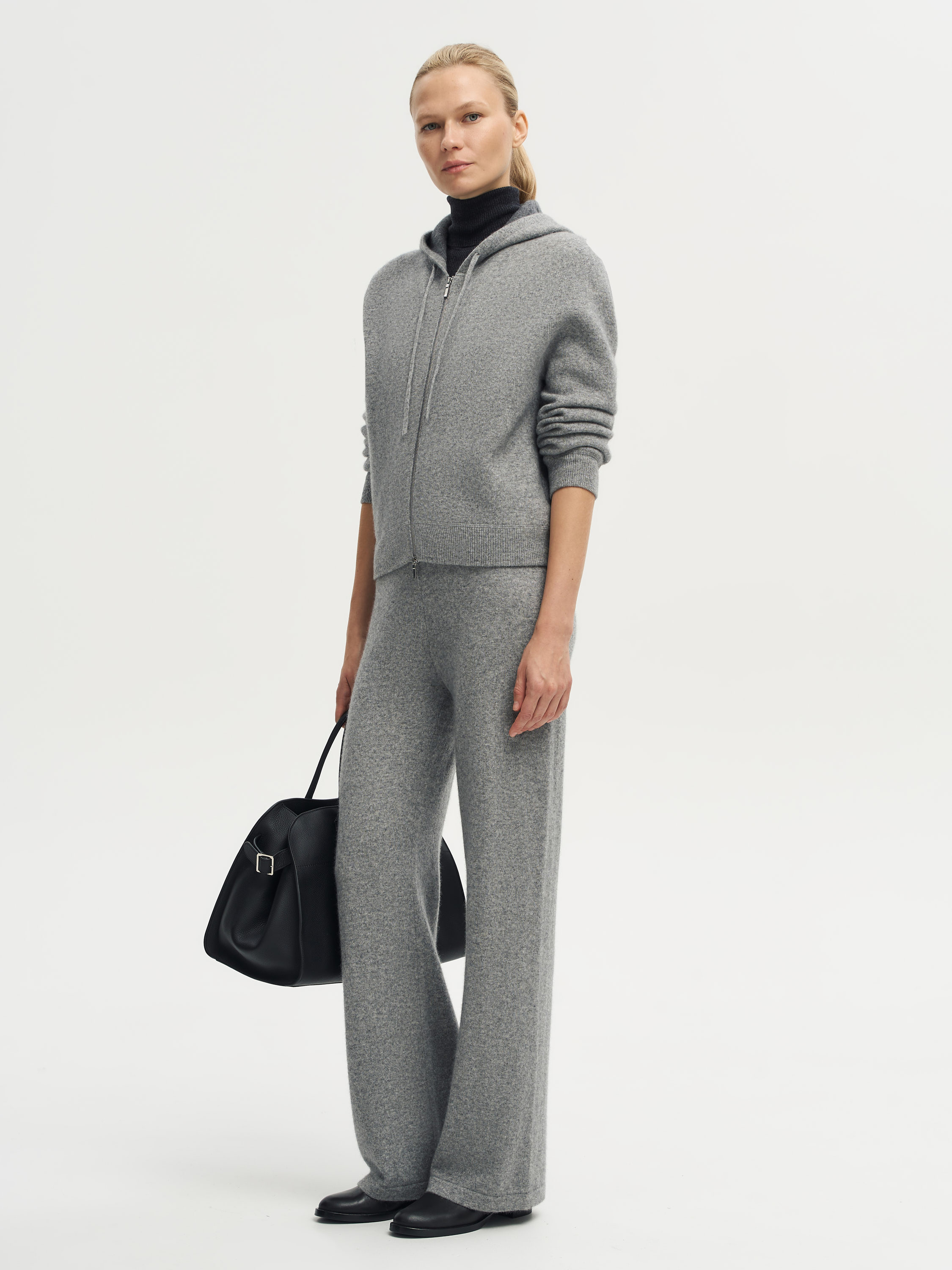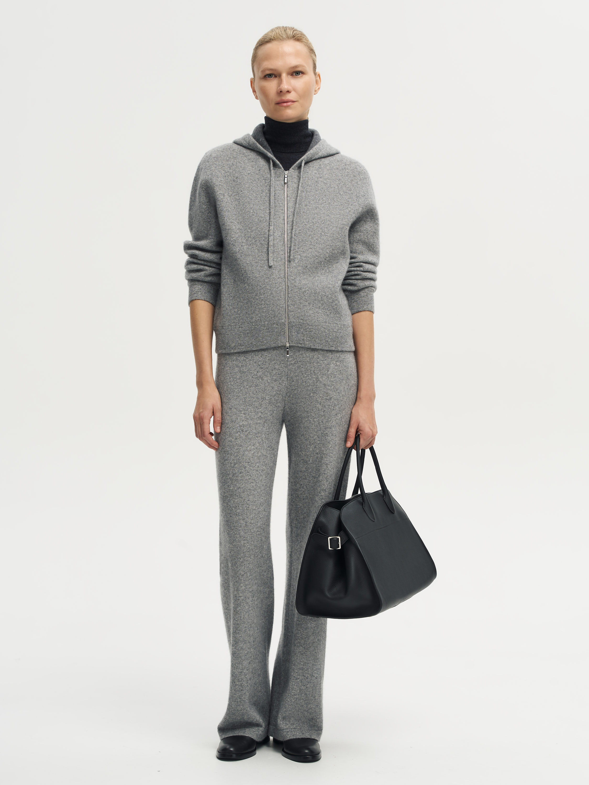 Брюки из шерсти мериноса с добавлением кашемира отличаются мягкостью, пластичностью и комфортом при носке. Тонкое трикотажное полотно приятно к телу, хорошо держит форму и сохраняет тепло. Прямой крой со слегка расширенным низом визуально вытягивает силуэт, а эластичный пояс обеспечивает идеальную посадку без лишнего давления. Лаконичный дизайн делает модель уместной как в расслабленных, так и в более собранных образах.