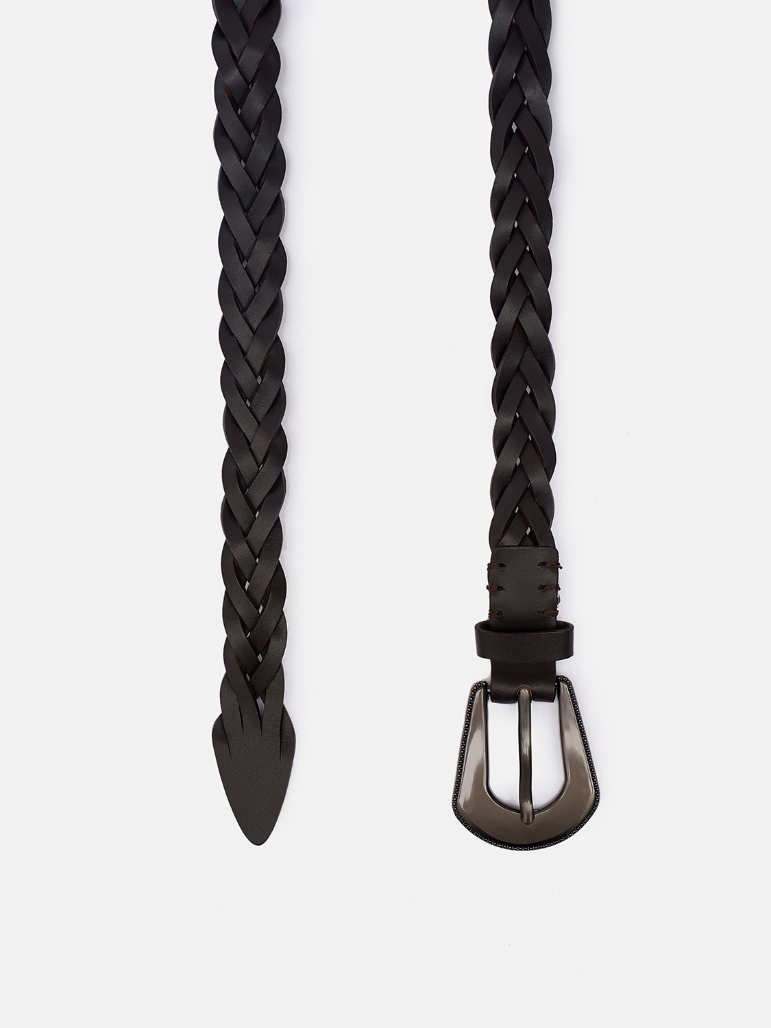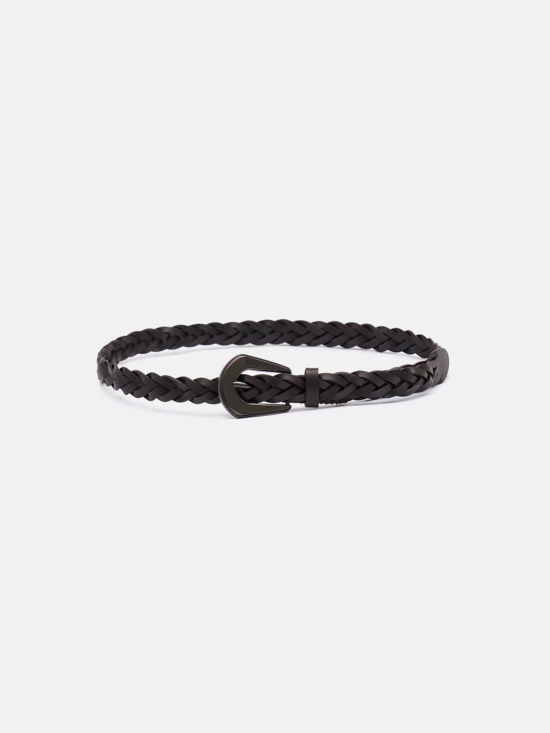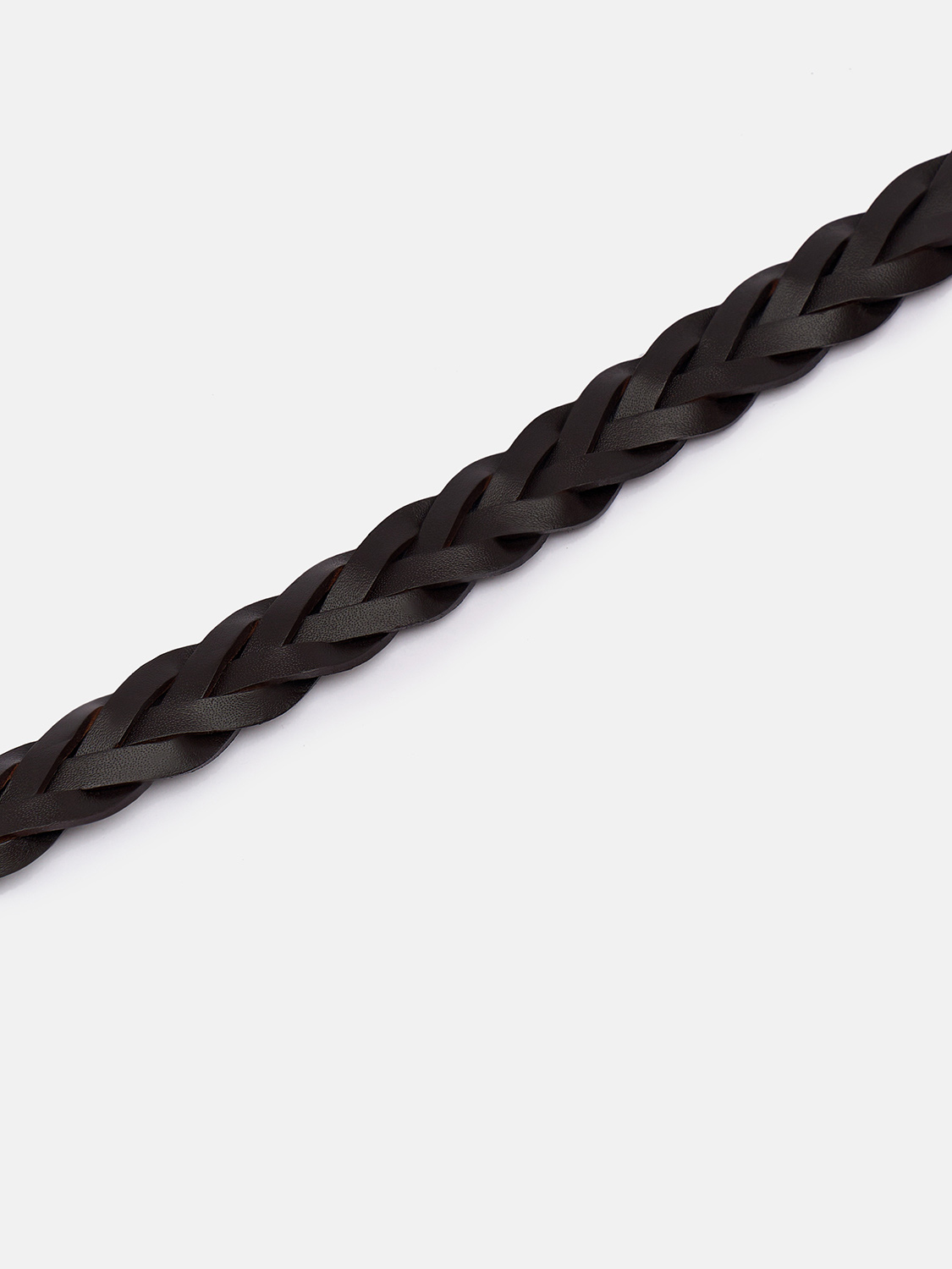 Плетеный кожаный ремень станет изящным акцентом образа. Универсальная средняя ширина. Выполнен из натуральной мягкой кожи, поэтому вы можете надевать его с разной одеждой, и даже поверх верхней, и самостоятельно моделировать нужный вам силуэт. Особого шика добавляет лаконичная пряжка в тон основы. Аксессуар дополнит как расслабленные casual образы для загородных прогулок, так и деловые комплекты для переговоров.