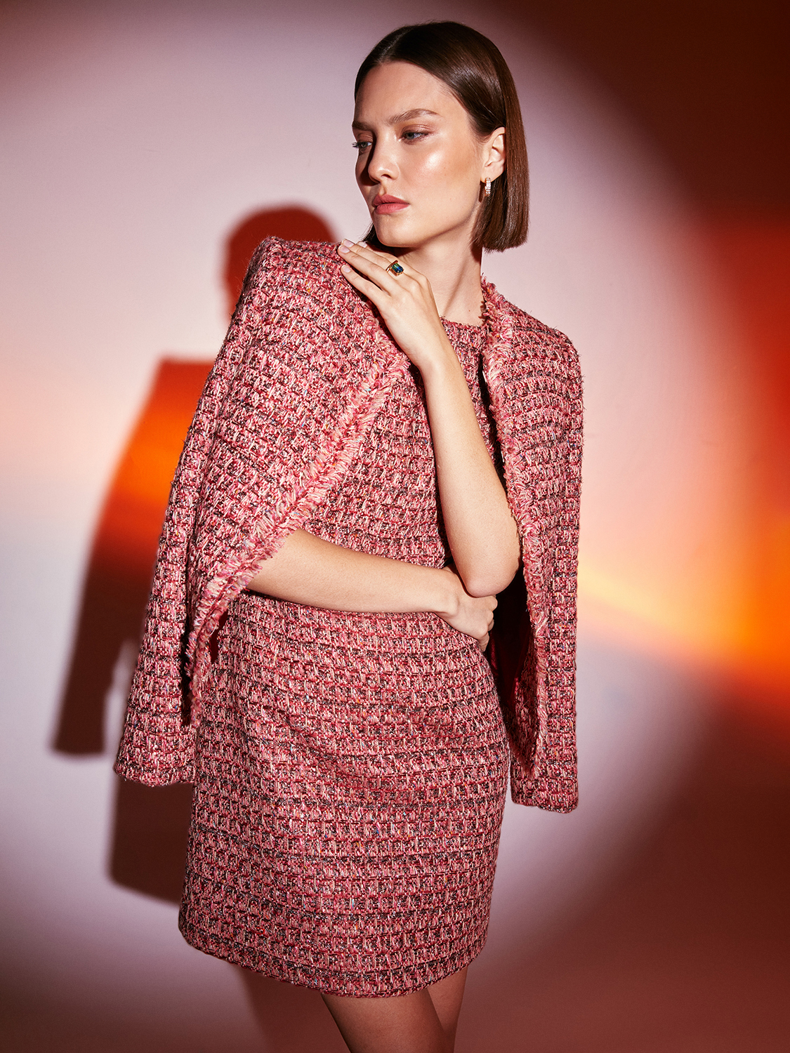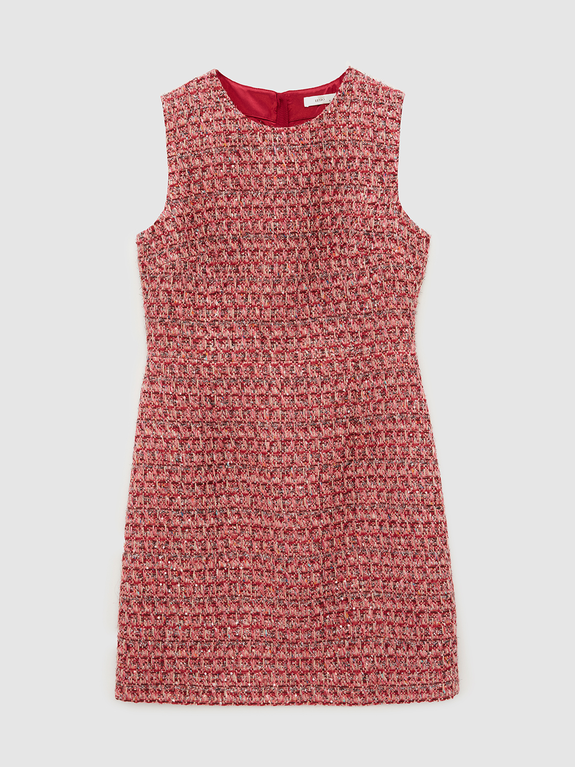 Твидовое платье-футляр в изящной длине мини. Классический крой, плотная дышащая ткань букле, застежка на молнию по спинке. Платье подойдет под вечерние и праздничные образы, которые можно дополнить твидовым жакетом в цвет, туфлями-лодочками или босоножками.