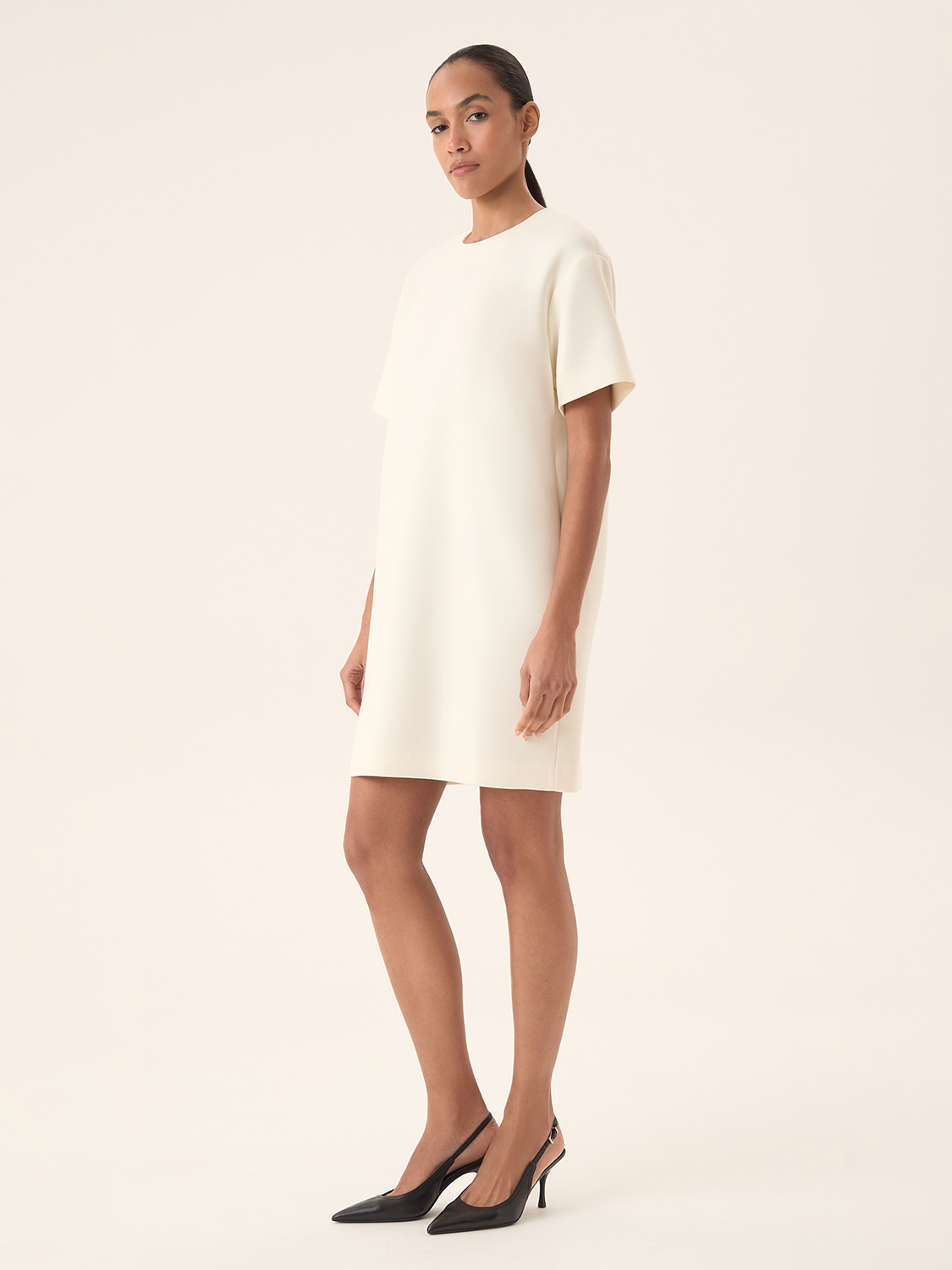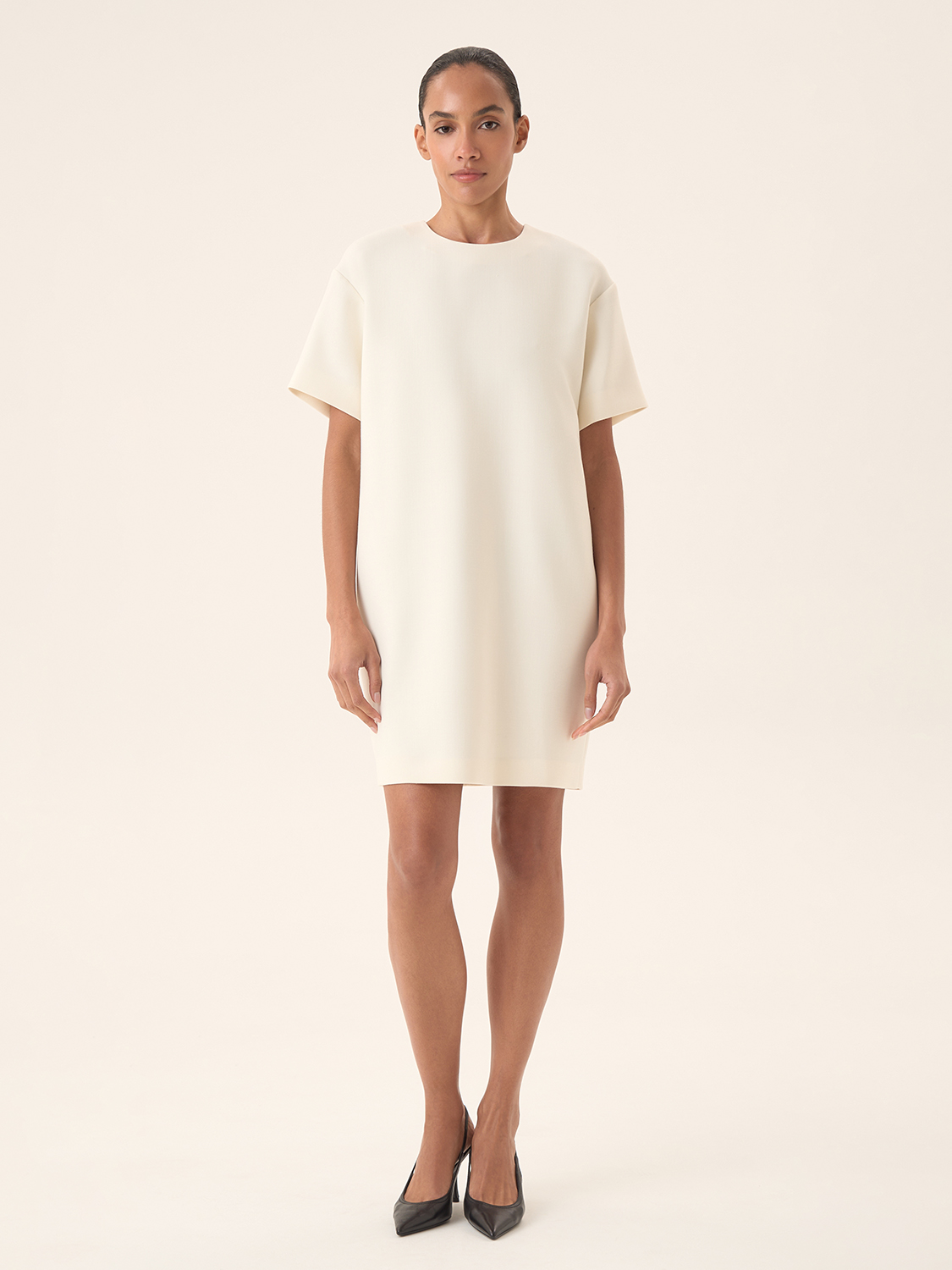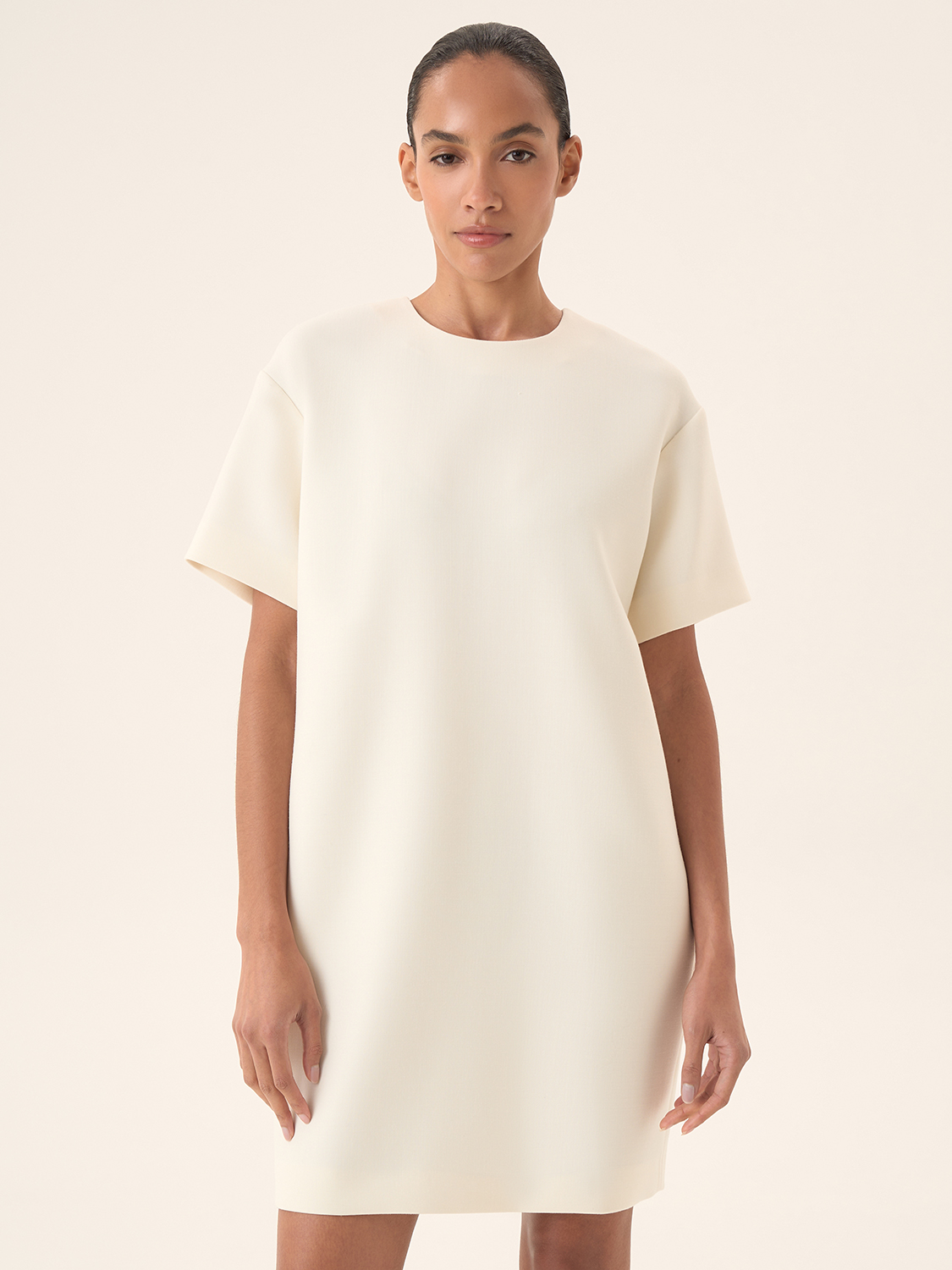 Платье свободного силуэта — идеальный пример того, как минимализм может быть выразительным. Лаконичный крой гармонично сочетается со светлым оттенком, придающим образу свежесть и утонченность. Мягкая ткань создает комфортное ощущение на протяжении всего дня, а продуманная посадка акцентирует природную элегантность. Минималистичный дизайн позволяет платью стать идеальной основой для создания как повседневных, так и более официальных комплектов. Сочетайте его с жакетами, тренчами или аксессуарами, чтобы подчеркнуть свой стиль.