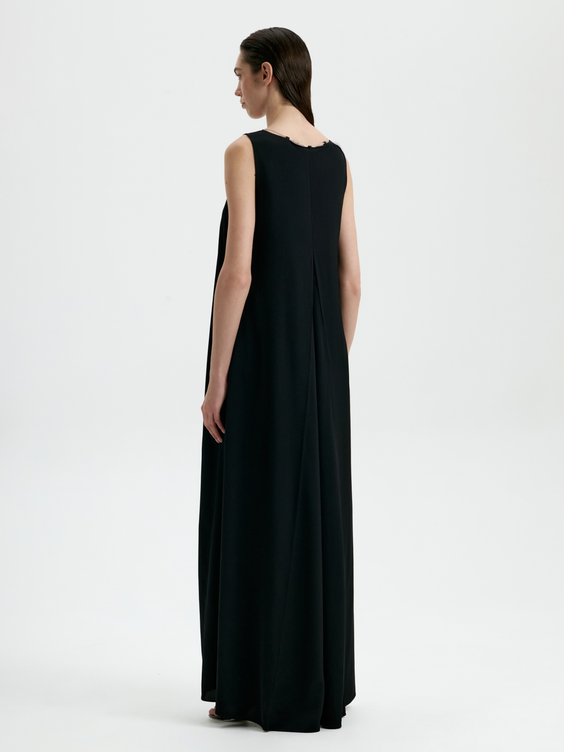 Элегантное платье макси для особых случаев. Украшенное кристаллами Swarovski, оно притягивает взгляды, подчеркивая утонченность и изысканный вкус своей обладательницы. Лаконичный крой создает изящный силуэт, который подойдет для вечерних мероприятий или торжественных выходов. Мягкая ткань красиво драпируется, добавляя движениям легкости и динамичности. Это платье станет эффектной изюминкой вашего гардероба, идеально сочетаясь с минималистичными аксессуарами и классической обувью.