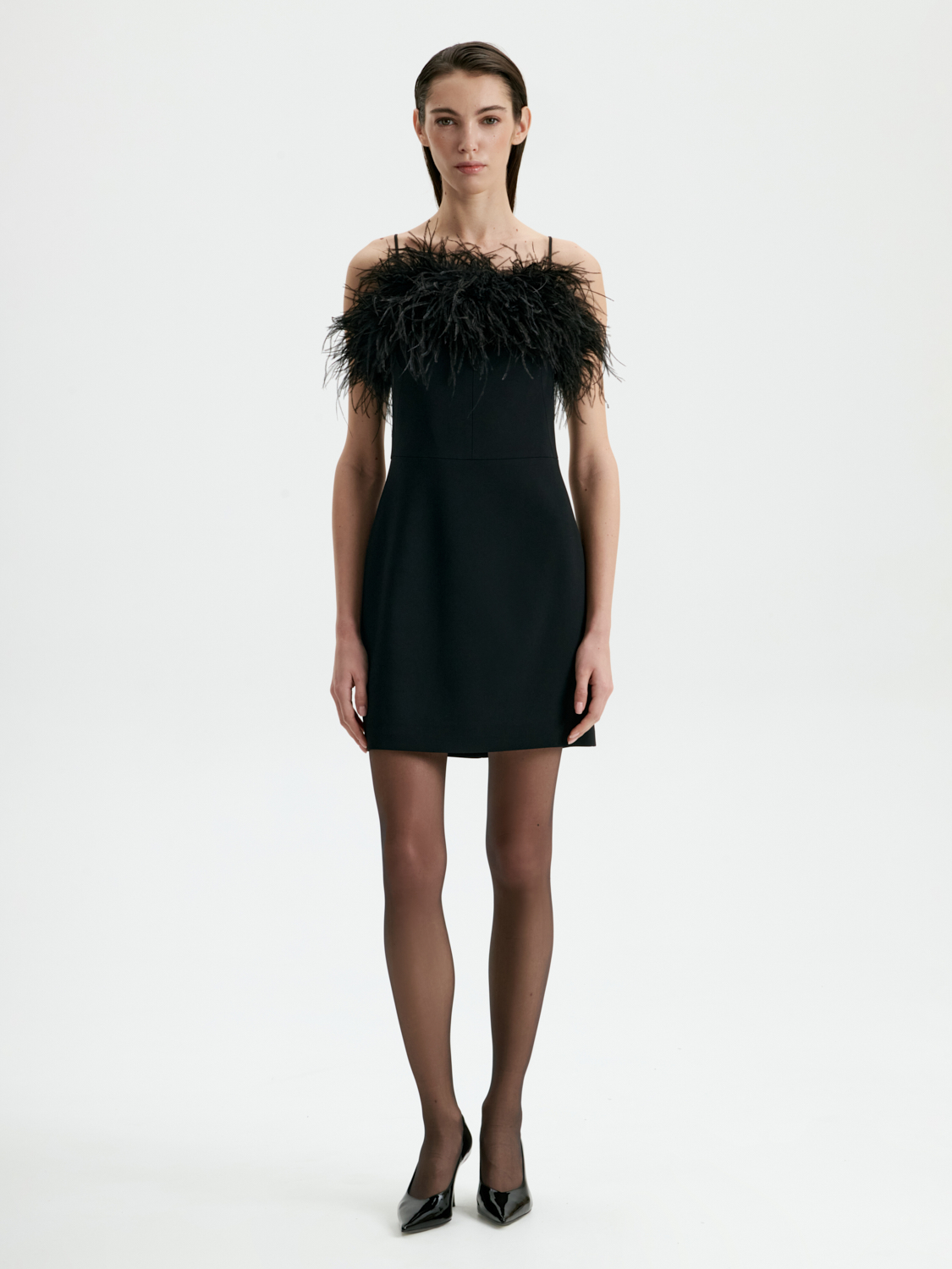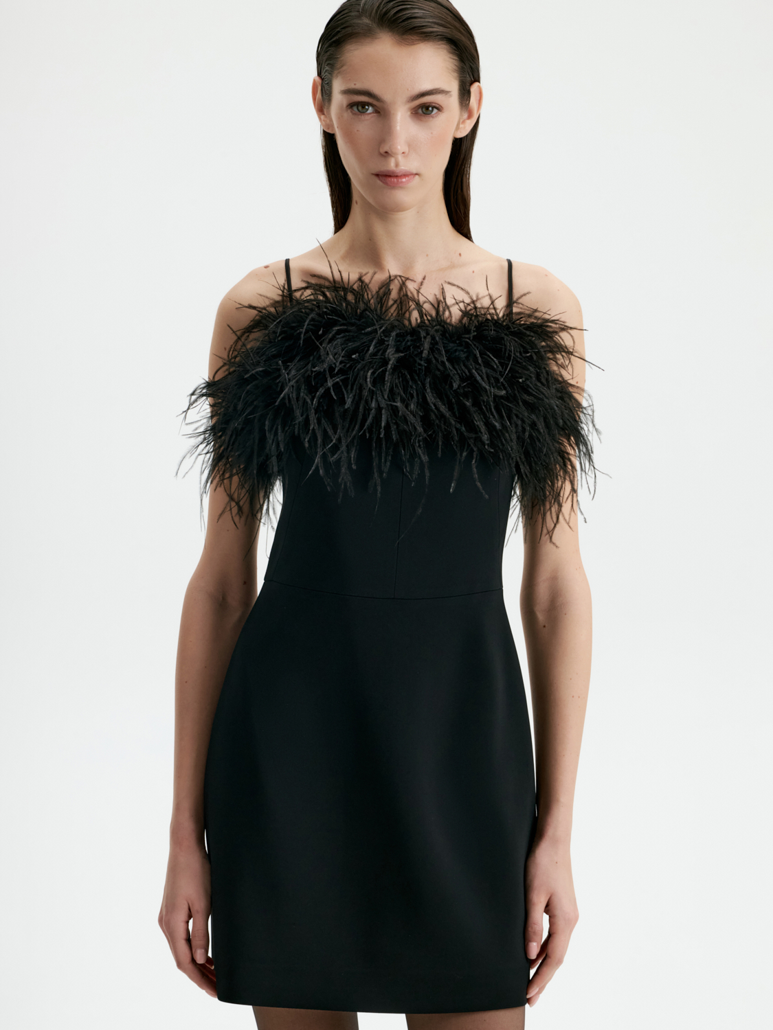 Платье мини с перьями — воплощение утонченного гламура и выразительности. Лаконичный крой подчеркивает силуэт, а эффектная отделка перьями добавляет образу динамичности и игривой легкости. Глубокий черный цвет делает платье универсальным выбором для вечерних мероприятий, а текстурированные акценты создают настроение праздника. Это платье станет ключевым элементом гардероба для тех, кто любит привлекать внимание и ценит оригинальный стиль. На модели размер S. Параметры модели: рост 177, 80-60-90.