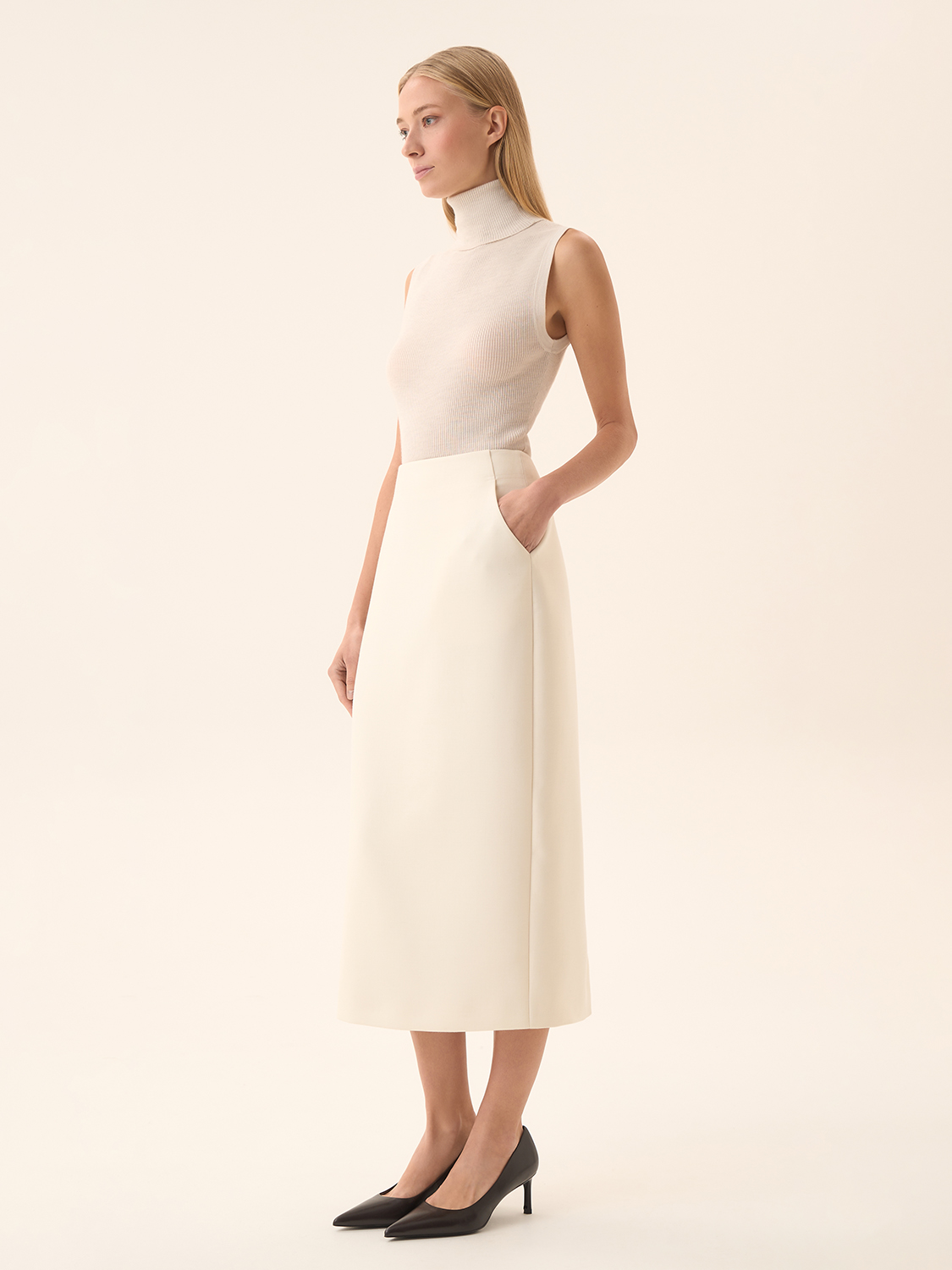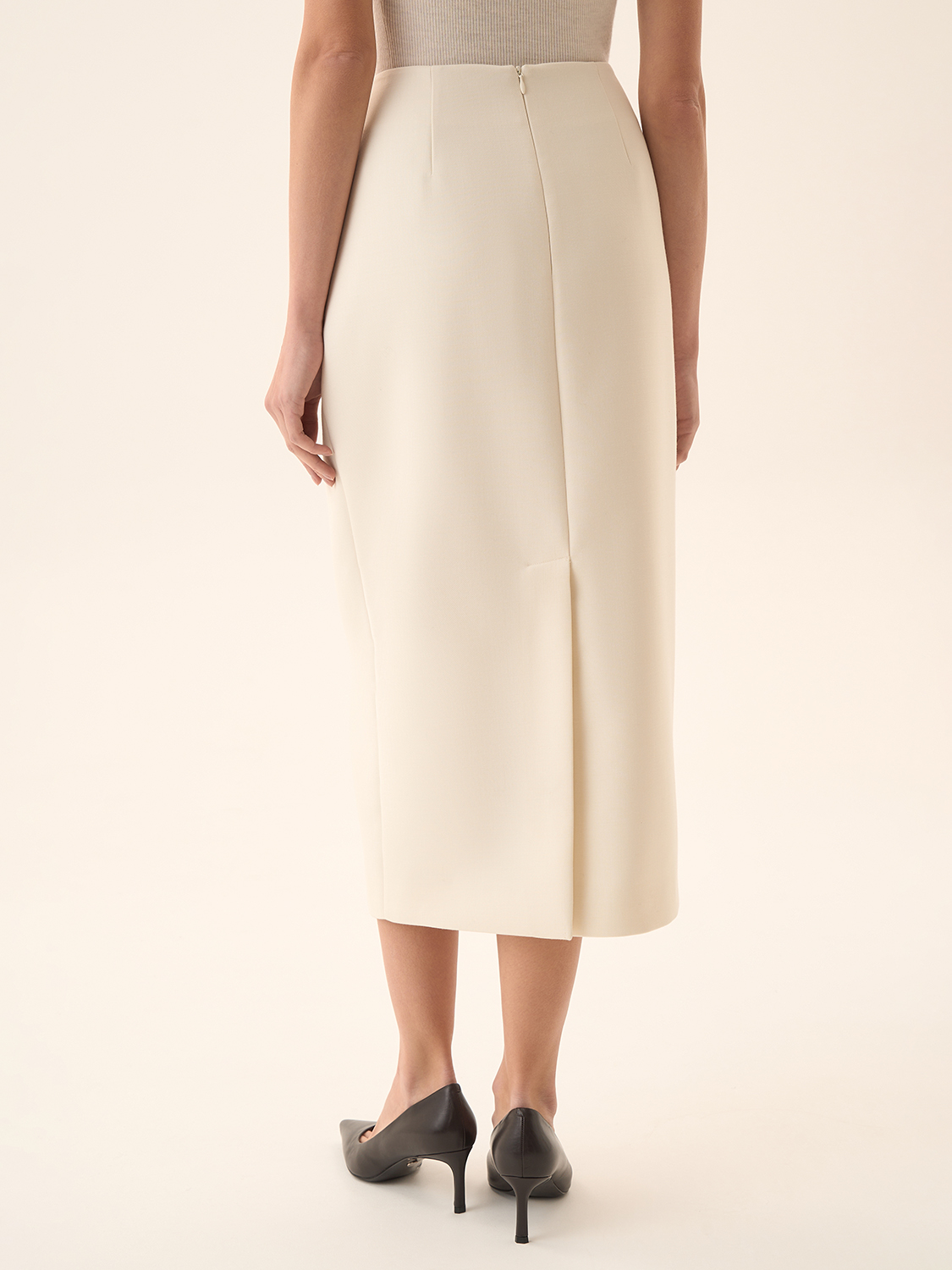 Юбка прямого силуэта — классика, которая всегда актуальна. Чистые линии и минималистичный дизайн подчеркивают элегантность модели, а светлый оттенок добавляет образу утонченности. Ткань с добавлением шерсти обеспечивает комфорт и мягкость, создавая идеальный выбор для прохладного времени года. Высокая посадка акцентирует талию и визуально удлиняет силуэт, делая юбку универсальной для различных сочетаний. Носите ее с рубашками, водолазками или объемными свитерами, чтобы подчеркнуть индивидуальность и стиль.