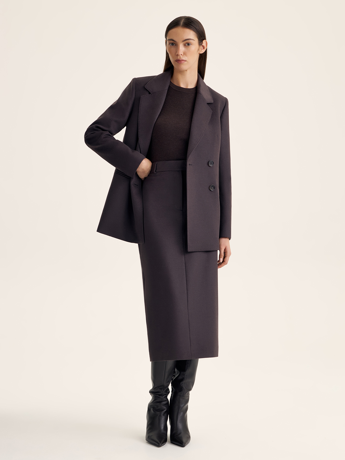 Юбка миди с шерстью — элегантная модель, которая сочетает в себе тепло и стиль. Изготовленная из высококачественного материала с добавлением шерсти, она дарит комфорт в прохладные дни, а ее классический крой с легким расширением к низу подчеркивает силуэт. Глубокий оттенок и универсальный дизайн делают эту юбку идеальной для создания как строгих офисных, так и повседневных образов. Сочетайте с уютным свитером или классической блузой для завершенного, гармоничного лука.