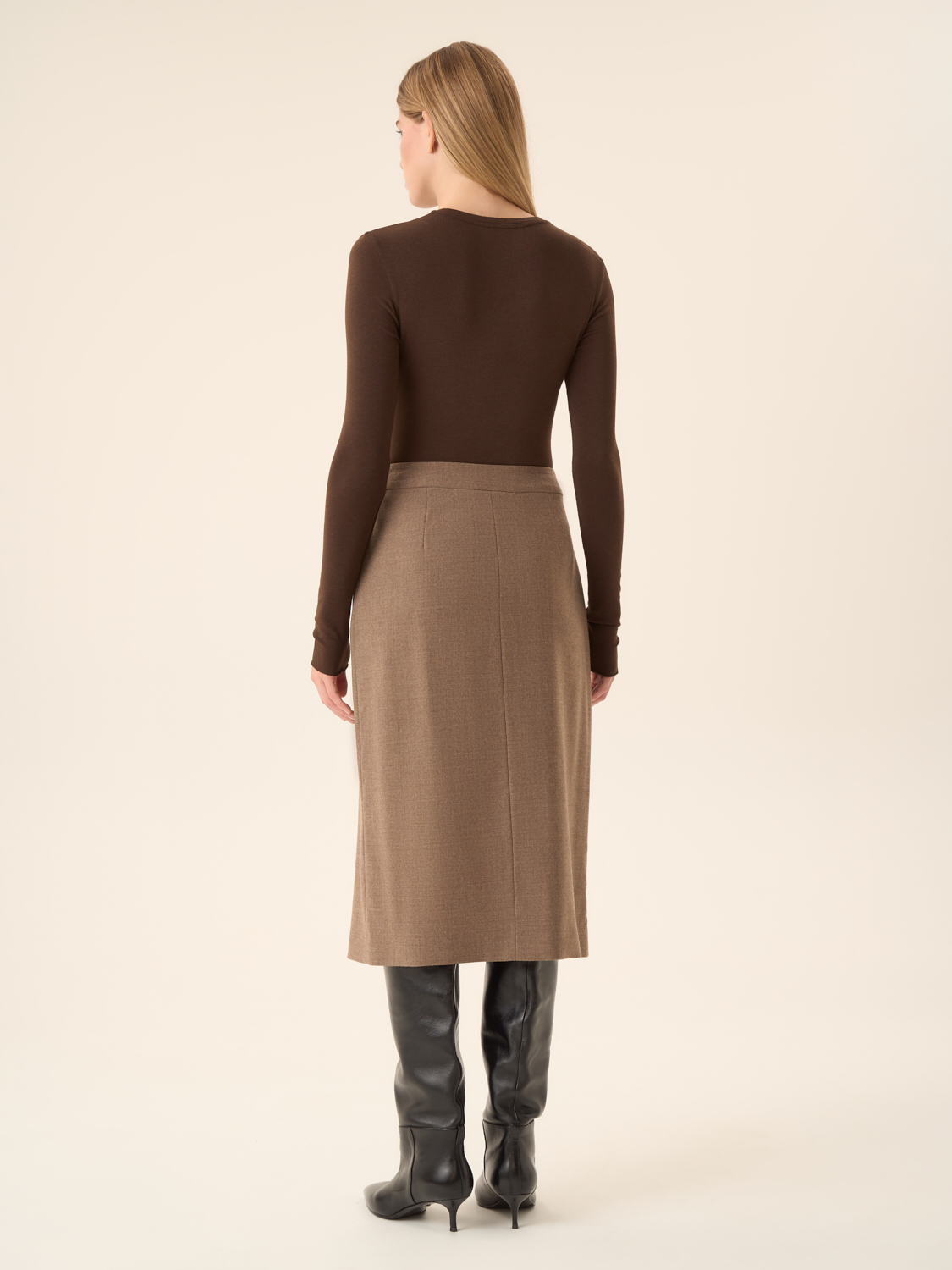 Эта юбка — воплощение утонченного стиля и комфорта. Выполненная из качественного материала, она подчеркивает силуэт, сохраняя при этом свободу движений. Лаконичный крой позволяет легко сочетать юбку с различными топами и блузами, создавая элегантные образы для офиса или повседневных встреч. Стильный разрез добавляет динамичности и делает ее идеальным выбором для любого времени года. Незаменимый элемент гардероба, который придаст вашему образу уверенность и изысканность.