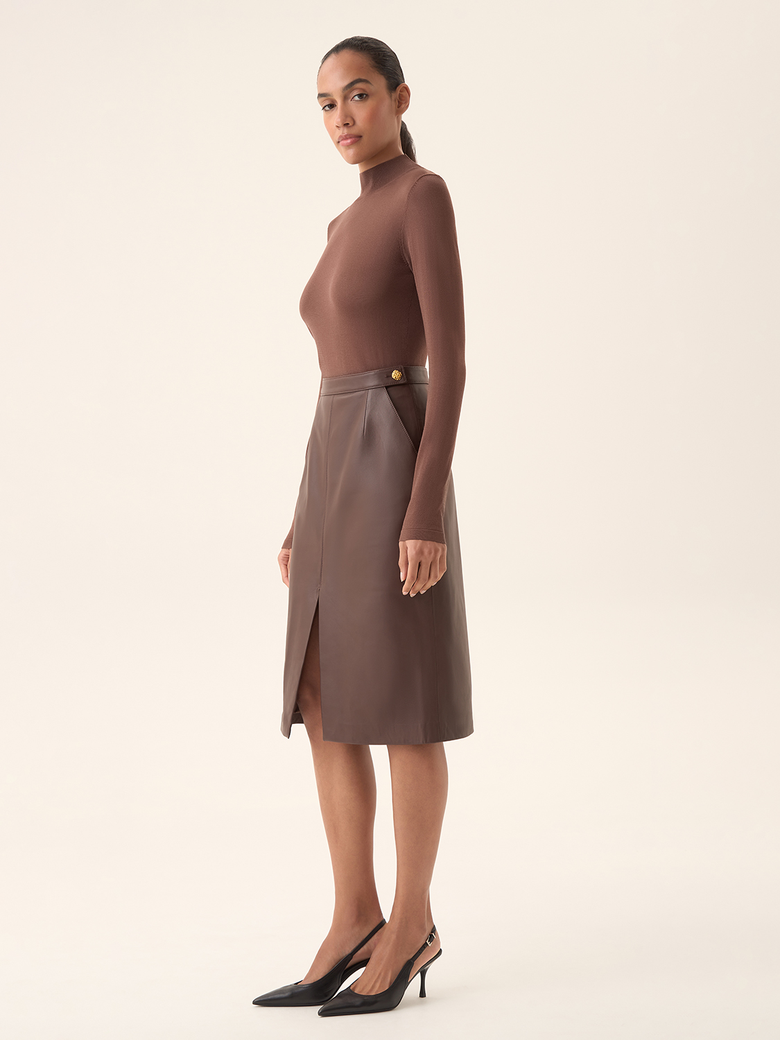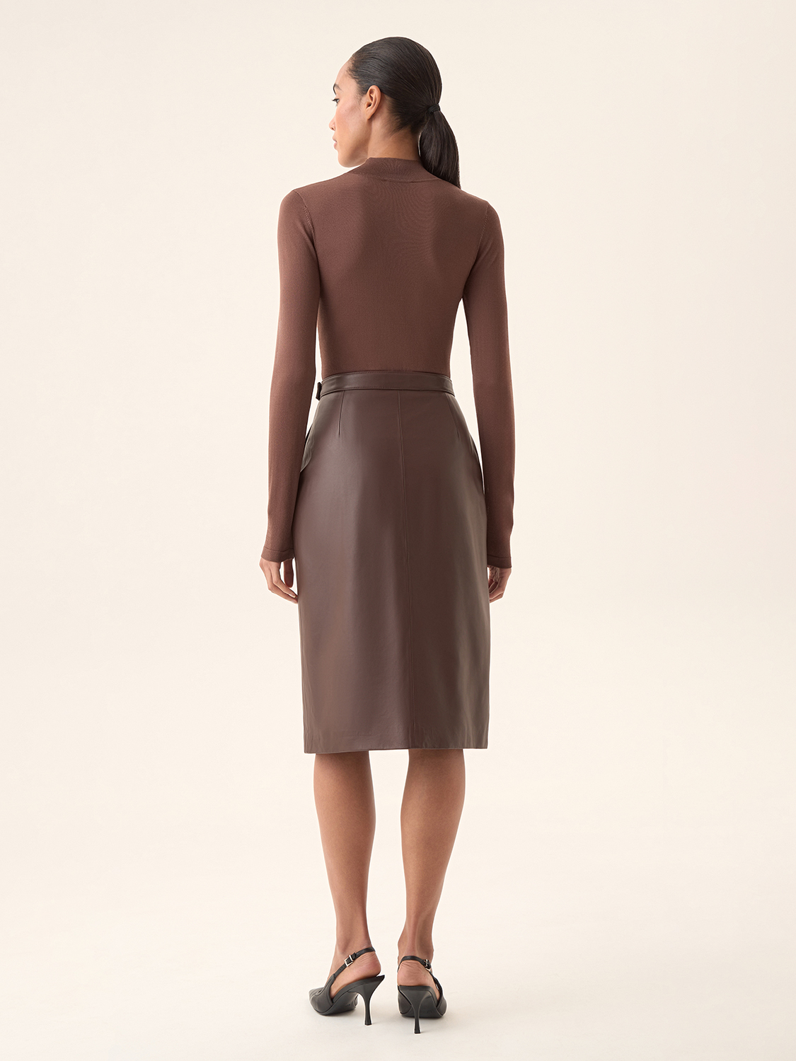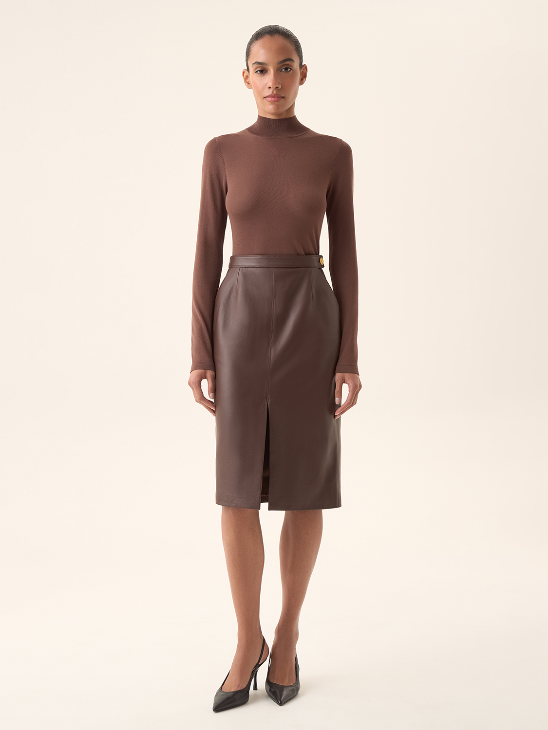 Юбка из натуральной кожи — элегантный и стильный элемент гардероба, который станет роскошным акцентом в вашем образе. Модель с четкими линиями и лаконичным дизайном подчеркивает фигуру, а натуральная кожа добавляет фактурность и обеспечивает модели долговечность. Универсальная юбка идеально сочетается с различными верхними элементами гардероба, от рубашек до свитеров, и легко адаптируется как к офисным, так и к более кэжуальным лукам. Это не просто одежда, а стильный штрих, который подчеркнет вашу уверенность и элегантность.