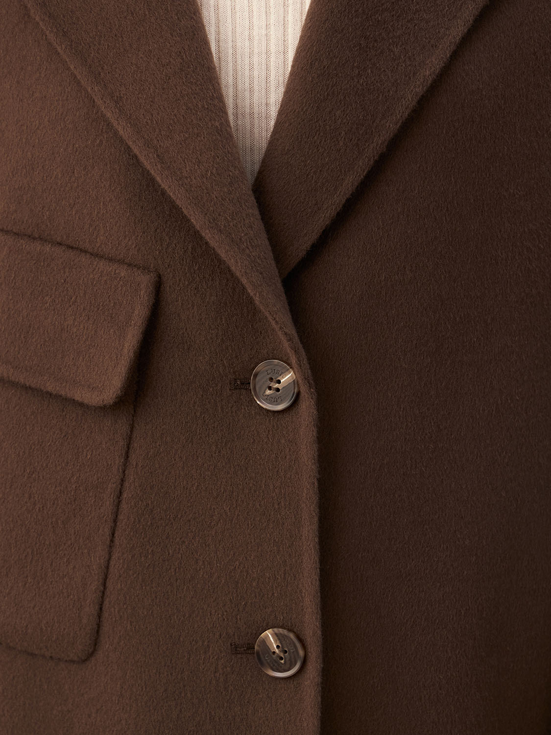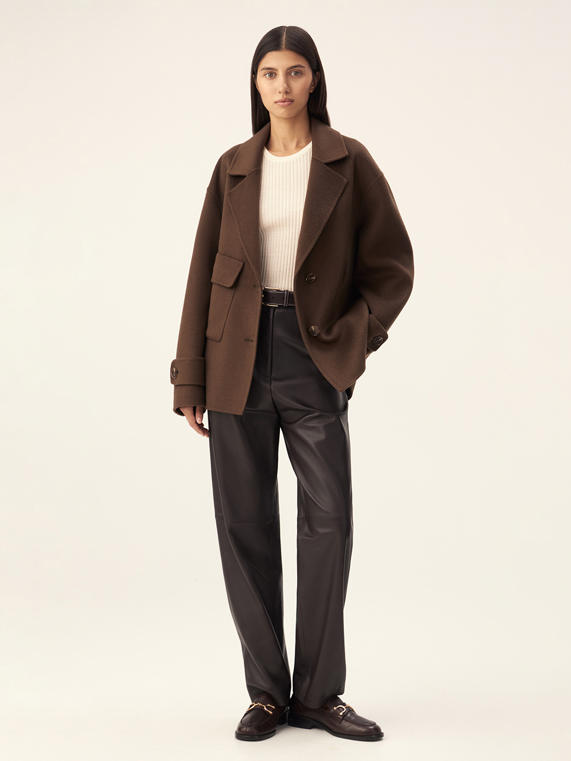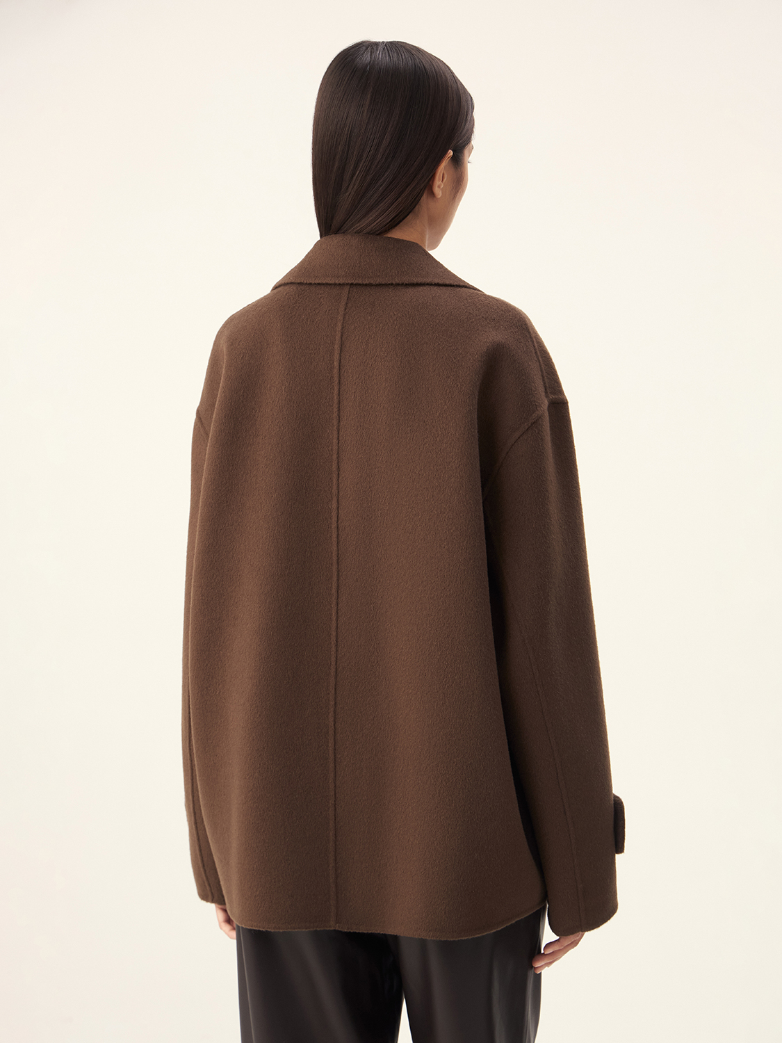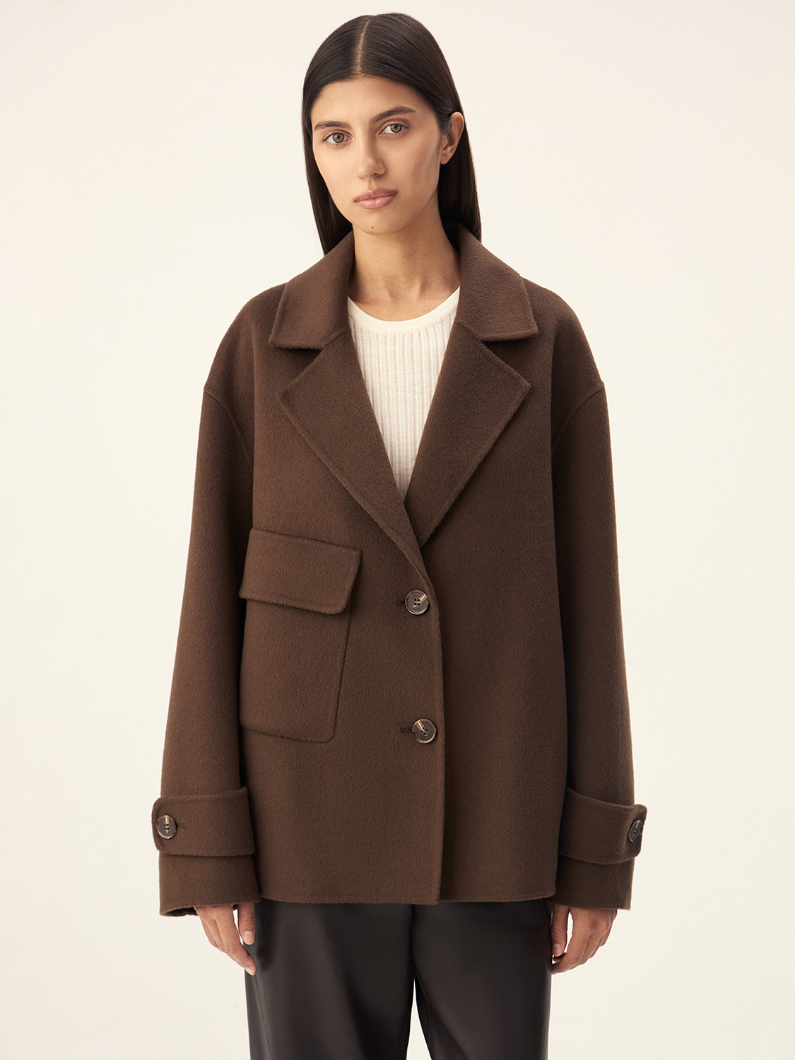 Укороченное пальто из шерсти мериноса сочетает в себе лаконичный крой и высокое качество материала. Шерсть мериноса, известная своей мягкостью и терморегулирующими свойствами, обеспечивает комфорт даже в прохладную погоду. Просторные накладные карманы и акцентные пуговицы придают модели легкий намек на утилитарный стиль, а свободный силуэт позволяет создавать многослойные образы. Это пальто — идеальный выбор для повседневной носки в межсезонье, предлагая баланс между классикой и современностью. Параметры модели: рост 174 см, размер S.