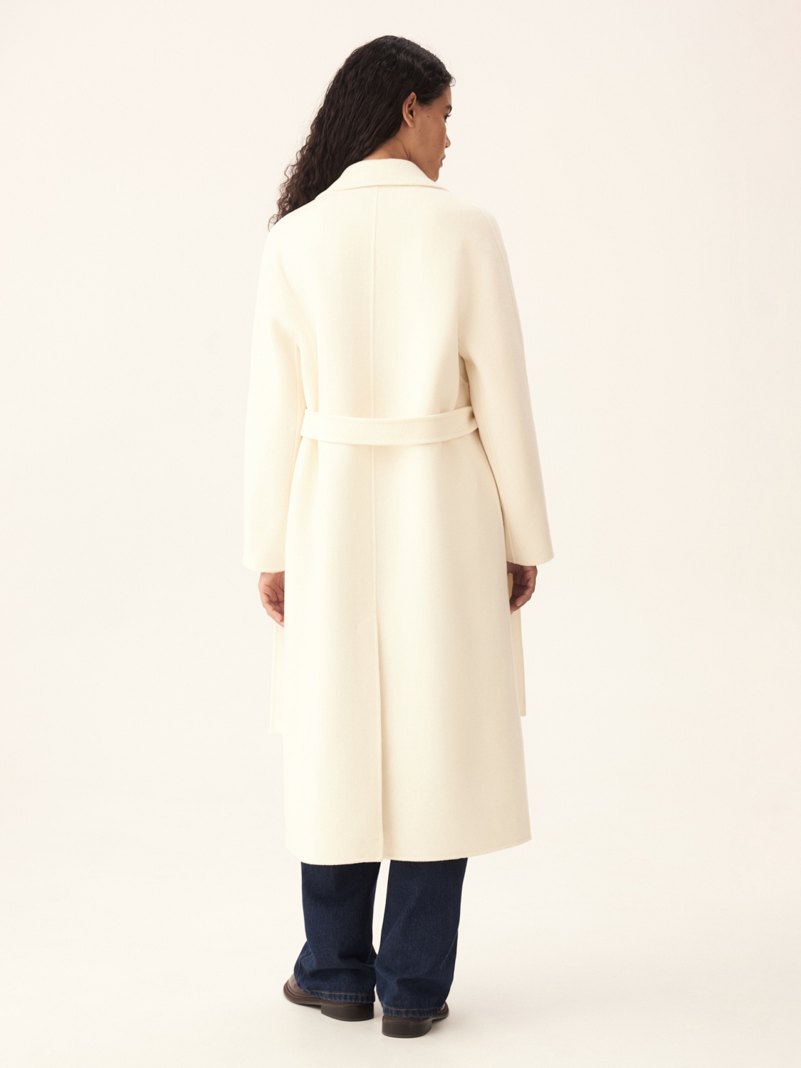 Элегантное двубортное пальто из шерсти мериноса и кашемира — это воплощение лаконичного стиля и комфорта. Длинный пояс подчеркивает талию, а классический крой с акцентом на плечи создает изящный силуэт. Благодаря сочетанию шерсти мериноса и кашемира, пальто обладает отличными терморегулирующими свойствами, обеспечивая тепло в холодную погоду, но не перегревая. Идеальный выбор для тех, кто ценит сочетание элегантности и функциональности в осенне-зимнем гардеробе. Параметры модели: рост 178 см, размер S.
