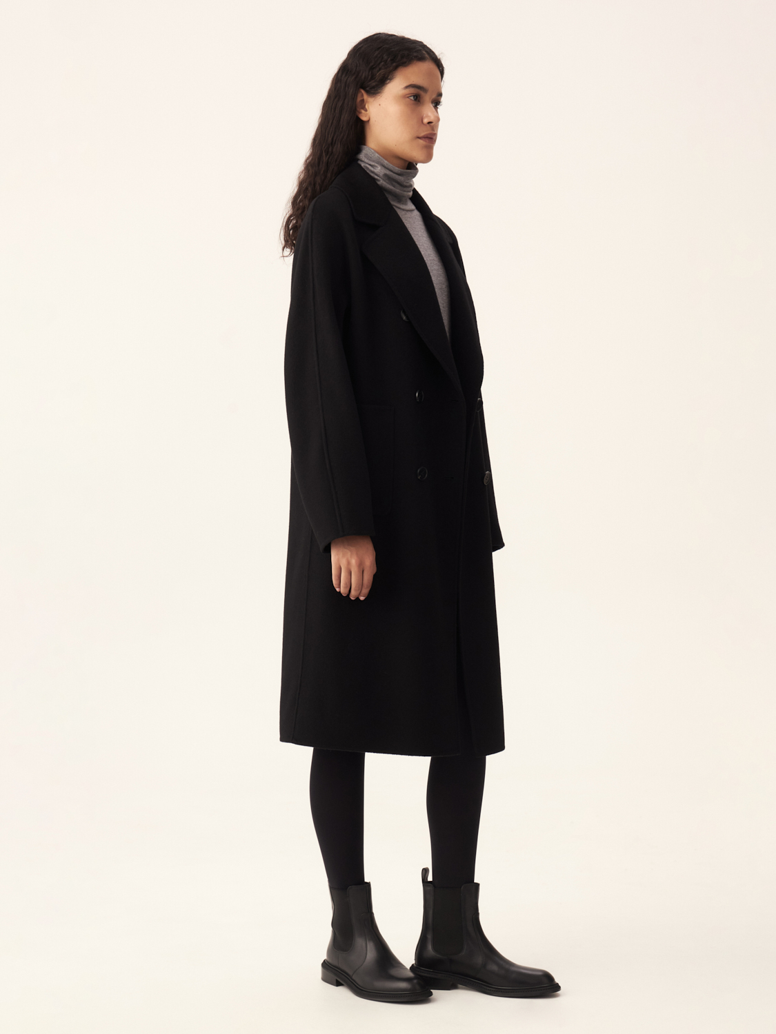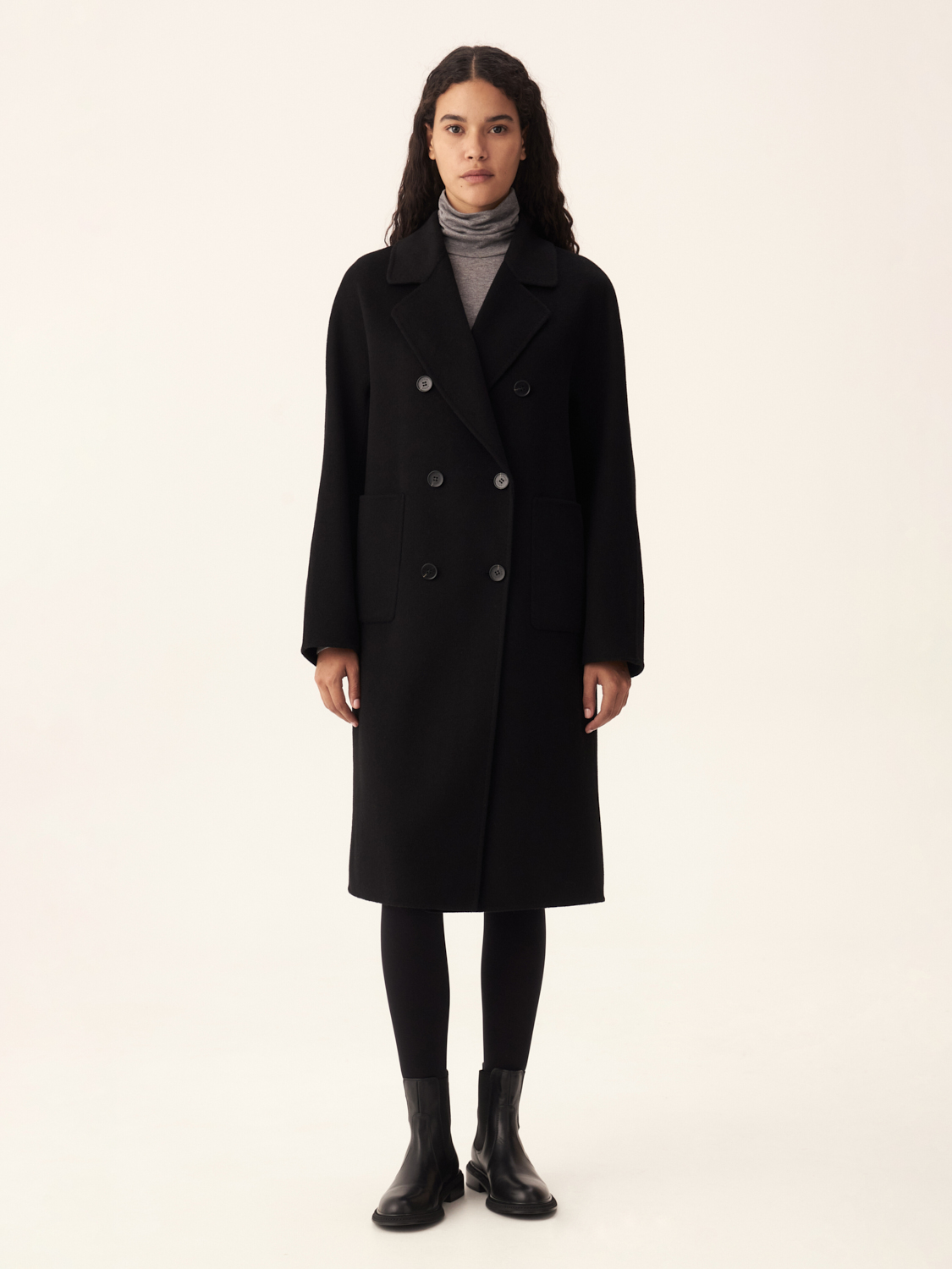 Классическое двубортное пальто из шерсти отличается элегантным кроем и высокой функциональностью. Модель выполнена с акцентом на лаконичность и простоту, что делает пальто универсальным и подходящим для любого случая. Прямой силуэт и двубортная застежка создают структурированный образ, придавая фигуре строгость и утонченность. Пальто оснащено широкими лацканами и двумя накладными карманами, которые не только добавляют образу стиля, но и обеспечивают практичность. Шерсть обеспечивает тепло и комфорт в холодное время года, делая это пальто идеальным выбором для осенне-зимнего сезона. На модели размер S.